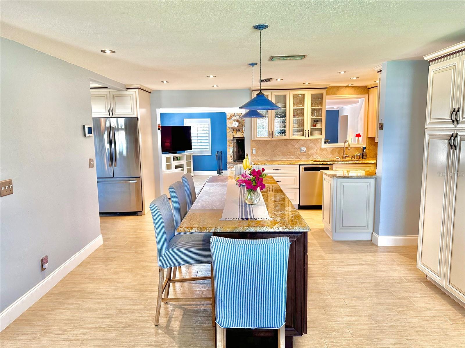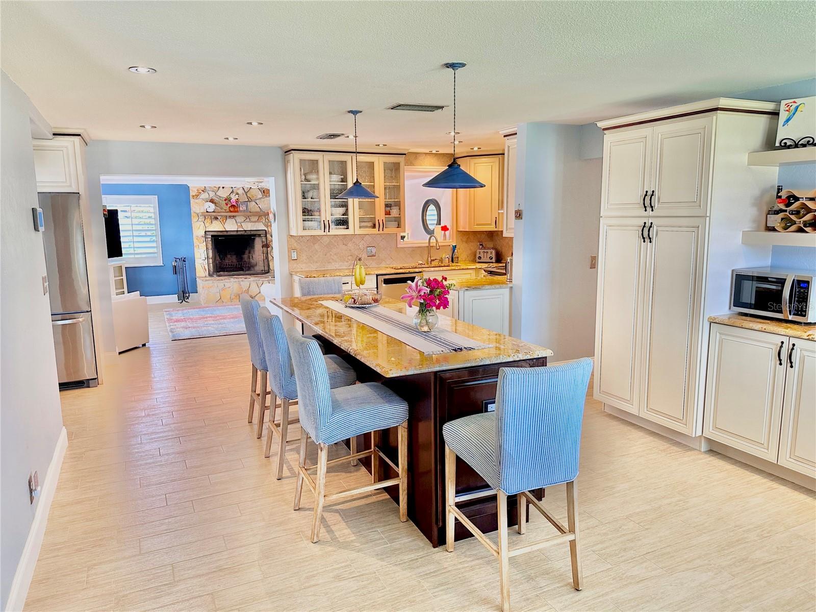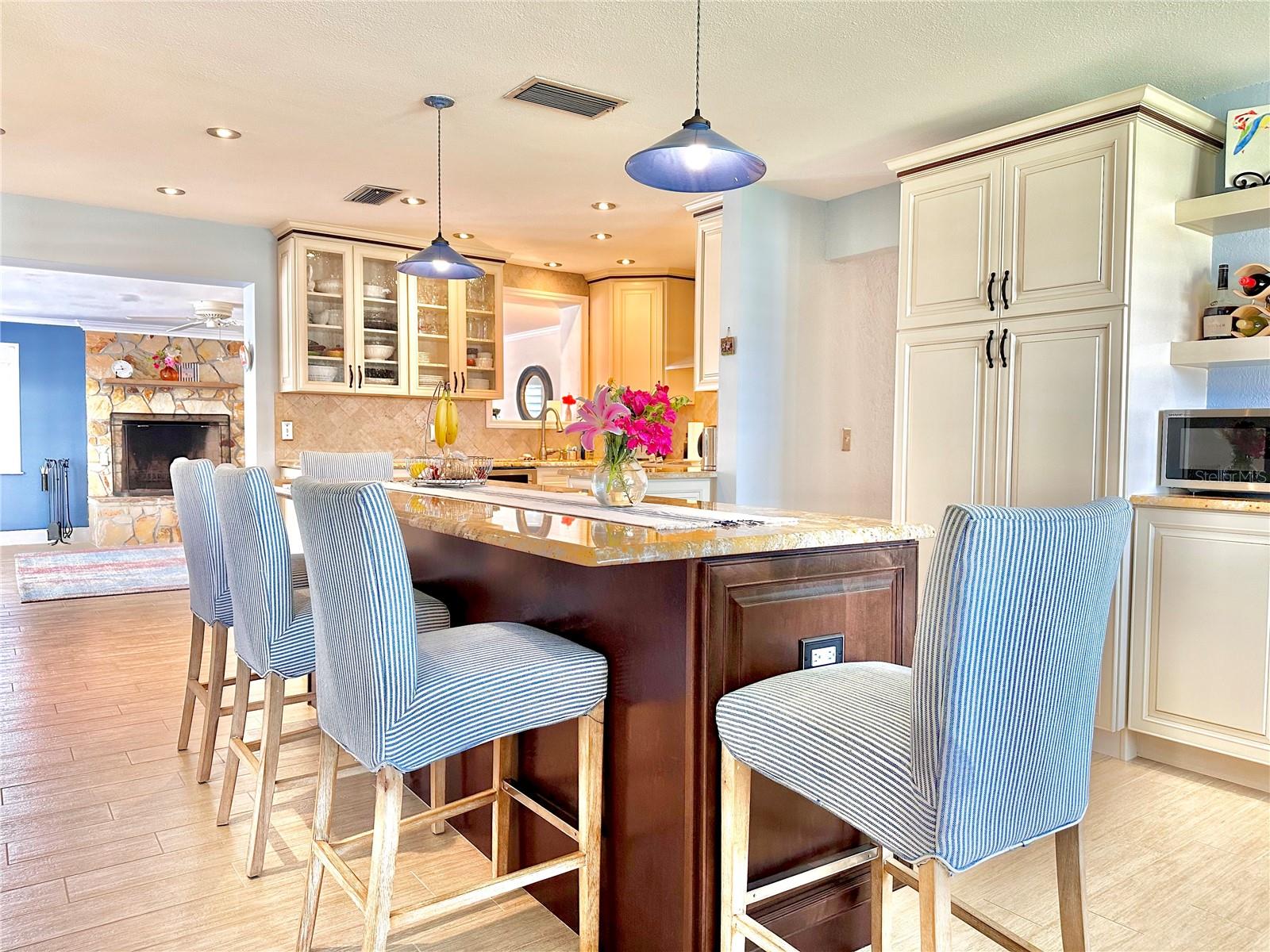 Casa única com piscina à beira-mar, localizada em um grande canal de água salgada de 12.000 pés quadrados em um beco sem saída tranquilo em Flagler Beach. Apenas 4 quarteirões das praias e do centro de Flagler Beach. Ao entrar na casa, você descobrirá uma ilha de cozinha com bancadas de granito e luminárias importadas de cerâmica provençal/francesa. Pia de cozinha em aço inoxidável da Alemanha. Todos os armários Kraft Maid de madeira com fechamento suave, incluindo corrediça na despensa e gaveta de talheres, respingo traseiro de travertino e iluminação embutida. Junho de 2024 telhado totalmente novo. 2018: todos os novos eletrodomésticos em aço inoxidável, 2 A/C e aquecedor de água quente. Logo após a cozinha você entrará na grande sala com uma lareira de pedra personalizada, um belo ponto focal da casa. Uma enorme suíte principal de 536 pés quadrados com vista para o canal de água salgada e uma grande janela panorâmica para a piscina. Banheiro privativo personalizado com "quarto molhado" com chuveiro de efeito chuva, azulejos de cerâmica do chão à parede, showroom "luzes de gelo" com pia dupla e banheira vitoriana de ferro fundido para banhos relaxantes. As janelas têm persianas em ilha. Superdimensionado 640 pés quadrados. piscina subterrânea com assentos personalizados de tijolos e deck de piscina de 1.602 pés quadrados! Deck de madeira de 560 m² para pesca - observação do pôr do sol - lançamentos espaciais. 120' de frente para a água para acomodar facilmente um barco e uma doca para barcos. No exterior tem muitas grandes áreas de entretenimento, incluindo uma cozinha de verão de 450 pés quadrados sob telhado permanente com armários de aço inoxidável, churrasqueira embutida com exaustor, sistema de 3 pias e bancada de granito, geladeira retrô de bebidas Frigidaire. Banheiro completo da piscina fora da cozinha de verão. Alarme ADT equipado. Máxima privacidade com paisagismo maduro, incluindo uma bela ave do paraíso de 30 pés.