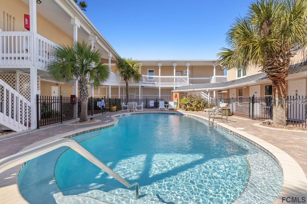 Condomínio de aluguel de curto prazo! Passos da praia e do Flagler Beach Pier há um condomínio à beira-mar com capacidade de aluguel diária, semanal ou mensal de curto prazo. Aluguel de férias 1 quarto/1 condomínio de banheiro com uma cozinha compacta com balcões de granito e fogão, microondas, piso de vinil e banheiro grande com chuveiro e vista para o oceano da janela do quarto! Aninhado no coração do centro de Flagler Beach FL, este complexo de condomínio fechado para gemas escondidas com uma bela piscina aquecida no pátio atrai turistas. A praia está a poucos passos de distância, que é o que torna esta unidade um local de férias tão desejável! Comece a ganhar renda imediatamente, pois o condomínio já tem mais turistas reservados! Compre este aluguel de férias e comece a ganhar renda imediatamente! A estadia mínima é de 2 noites. O HOA inclui água, piscina, manutenção externa, teto, lavanderia e fechamento. Um animal de estimação recebeu até 30 libras.