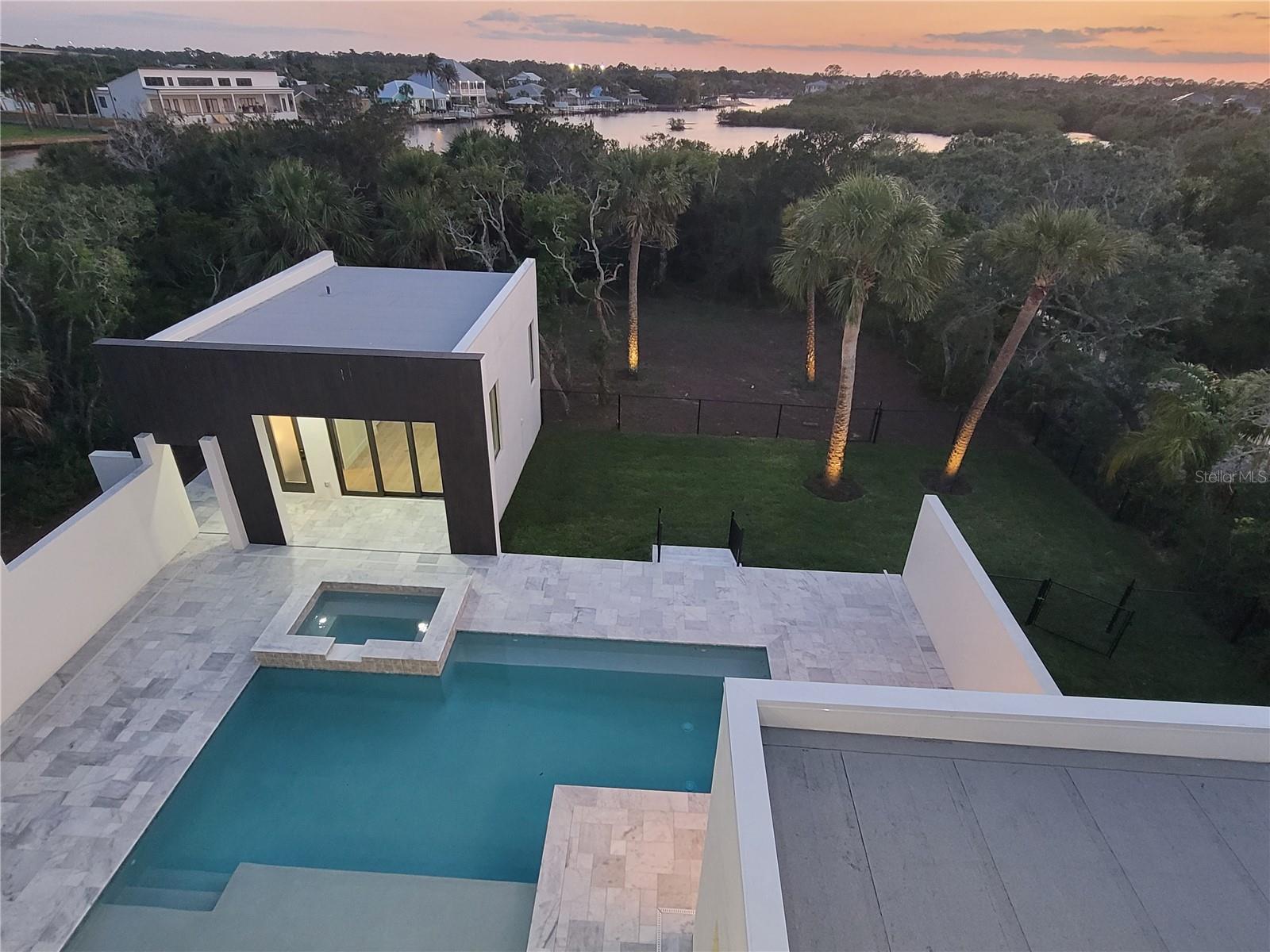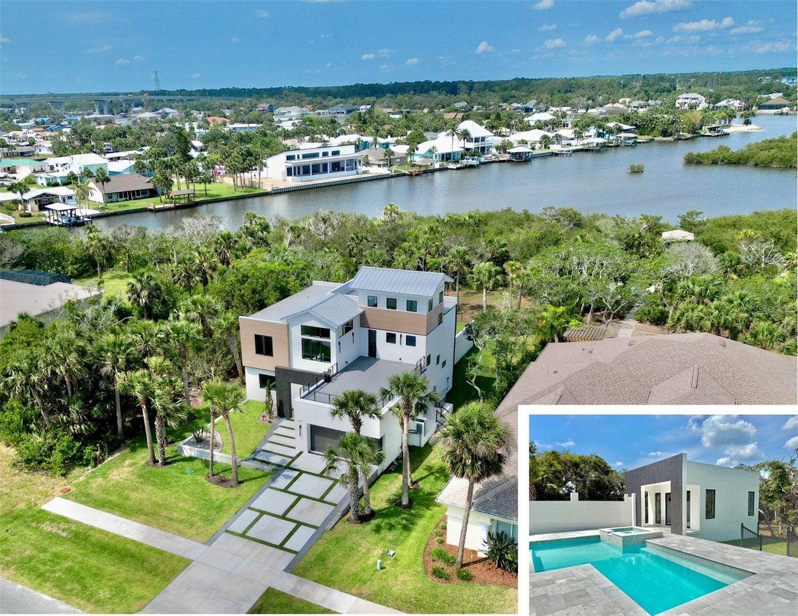 Impressionante nova casa com piscina costeira de 3 andares com Casita em Flagler Beach, FL. Bem-vindo ao retiro costeiro dos seus sonhos na bela Flagler Beach! Esta nova casa de 3 andares com design arquitetônico oferece o que há de melhor em termos de luxo, com 4 quartos espaçosos, 4,5 banheiros elegantes e uma convidativa casita privada - perfeita para hóspedes ou um escritório doméstico. No interior, a casa possui tetos altos, portas de núcleo sólido e acabamentos de design, incluindo bancadas de quartzo, luminárias Kohler e eletrodomésticos Thermador de última geração em uma cozinha estilo chef. Janelas e portas com classificação de impacto fornecem proteção contra tempestades e tranquilidade, enquanto um tanque de gás subterrâneo de 250 galões alimenta um gerador completo, garantindo conforto em qualquer clima. O quarto principal fica no 1º andar, com 3 quartos com banheiro próprio no 2º andar. INCLUINDO CASITA ESTA PROPRIEDADE TINHA 5 CAMAS E 5,5 BANHOS! Casita anuncia outros 412' sf de espaço vital para totalizar 3.446' sf. As comodidades domésticas inteligentes incluem um sistema de câmera externa habilitado para WiFi, sistema de som Sonos, sistema de segurança integrado e iluminação paisagística que aumenta a segurança e a atratividade do meio-fio. Saia para a área da piscina com azulejos de travertino em estilo resort, completa com jacuzzi, dois chuveiros ao ar livre, vários decks de entretenimento e um deck na cobertura que oferece vistas deslumbrantes da costa e do oceano. Para os entusiastas da navegação, a casa inclui um cais privado com elevador para barcos, proporcionando fácil acesso ao Intracoastal e além. Esteja você se divertindo, relaxando à beira da piscina ou aproveitando a brisa do mar em seu oásis na cobertura, esta casa oferece uma rara combinação de luxo, funcionalidade e charme costeiro em uma das cidades litorâneas mais pitorescas da Flórida.