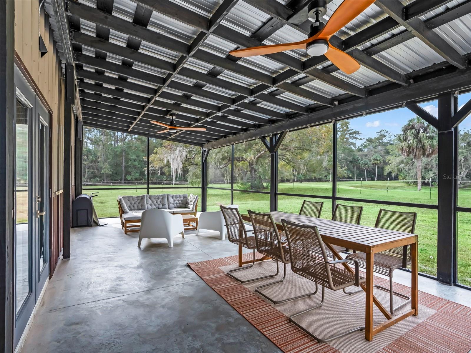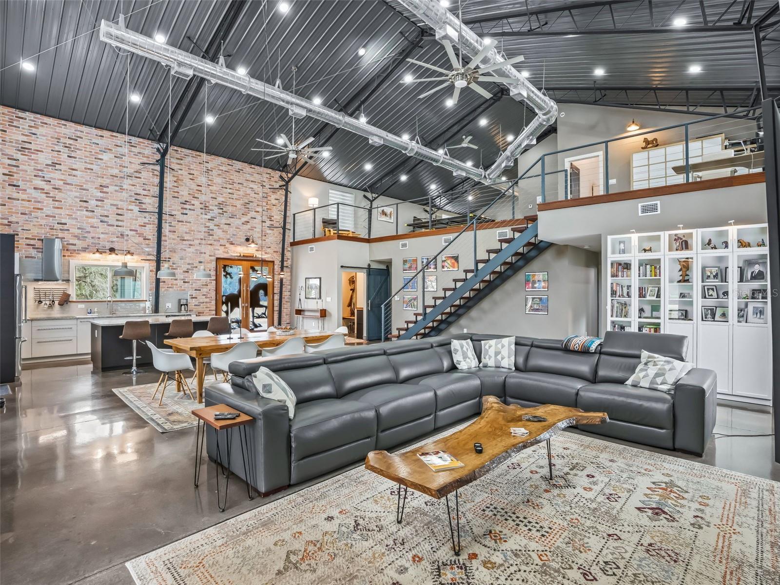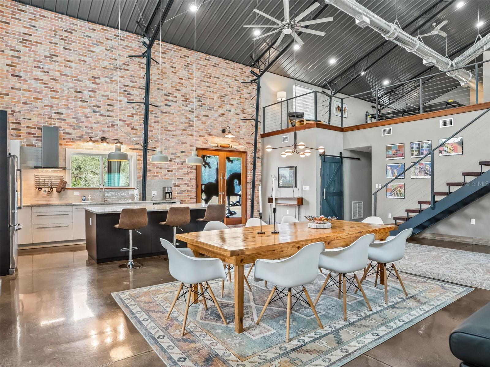 Localizada a menos de 15 minutos de lojas, restaurantes e entretenimento em Ocala, esta idílica propriedade para cavalos é composta por quase 25 acres cercados e fechados com um celeiro de blocos de concreto com corredor central de 6 barracas, oficina isolada em ferro vermelho e residência de 3.800 pés quadrados em estilo barndominium incrivelmente bem construída, escondida em particular na parte de trás da propriedade. A casa de dois andares é oferecida totalmente mobiliada e possui uma grande entrada coberta e porte-cochere que conduz através de deslumbrantes portas duplas esculpidas em mogno e para a planta aberta. Tetos altos, piso de concreto polido e uma escada flutuante de mogno definem o espaço. O primeiro andar possui uma sala de estar, jantar e cozinha totalmente aberta, duas suítes principais, duas salas de lama e lavanderia, além de um espaçoso pátio com vista para as pastagens, enquanto o loft no andar de cima oferece um quarto adicional, banheiro completo e loft/escritório projetado com a flexibilidade para adicionar outro quarto ou incluir um escritório dedicado. A qualidade foi a prioridade ao projetar e construir a residência com rodapés enterrados de 3', reforços de aço galvanizado a cada 2', isolamento de espuma em spray Icynene de célula aberta, paredes e piso internos isolados, camada de estabilização de fundação geomat, dutos espirais abertos e isolados, unidades AC duplas, chave de transferência do gerador e aquecedor instantâneo de água a gás. Extremamente eficiente em termos energéticos! O celeiro de blocos de concreto do corredor central possui seis baias de 12' x 12', além de armazenamento de feno/ração e espaçosa sala de arreios. Armazenamento não falta aqui com um edifício de ferro vermelho de 40' x 60' - totalmente isolado com serviço de 200 A, banheiro completo, duas portas de enrolar e duas baias cobertas de 30' x 60' de cada lado - são 6.000 pés quadrados de armazenamento coberto! Os destaques adicionais incluem: piscina de mergulho enterrada, vedação perimetral completa, 8 pastos vedados com bebedouros e vários atropelamentos, lindos carvalhos antigos espalhados por toda a propriedade, lagoa/retenção de água com drenagem perimetral, poço de 275' de profundidade, toda elétrica enterrada com 3 metros, edifícios de armazenamento adicionais e espaços cobertos. Não se deixe enganar por este endereço - localizado a menos de 30 minutos do centro de Ocala, aprox. 40 minutos para o Centro Equestre Mundial e menos de 10 minutos para Burbank com compras e várias trilhas exclusivas para equestres.