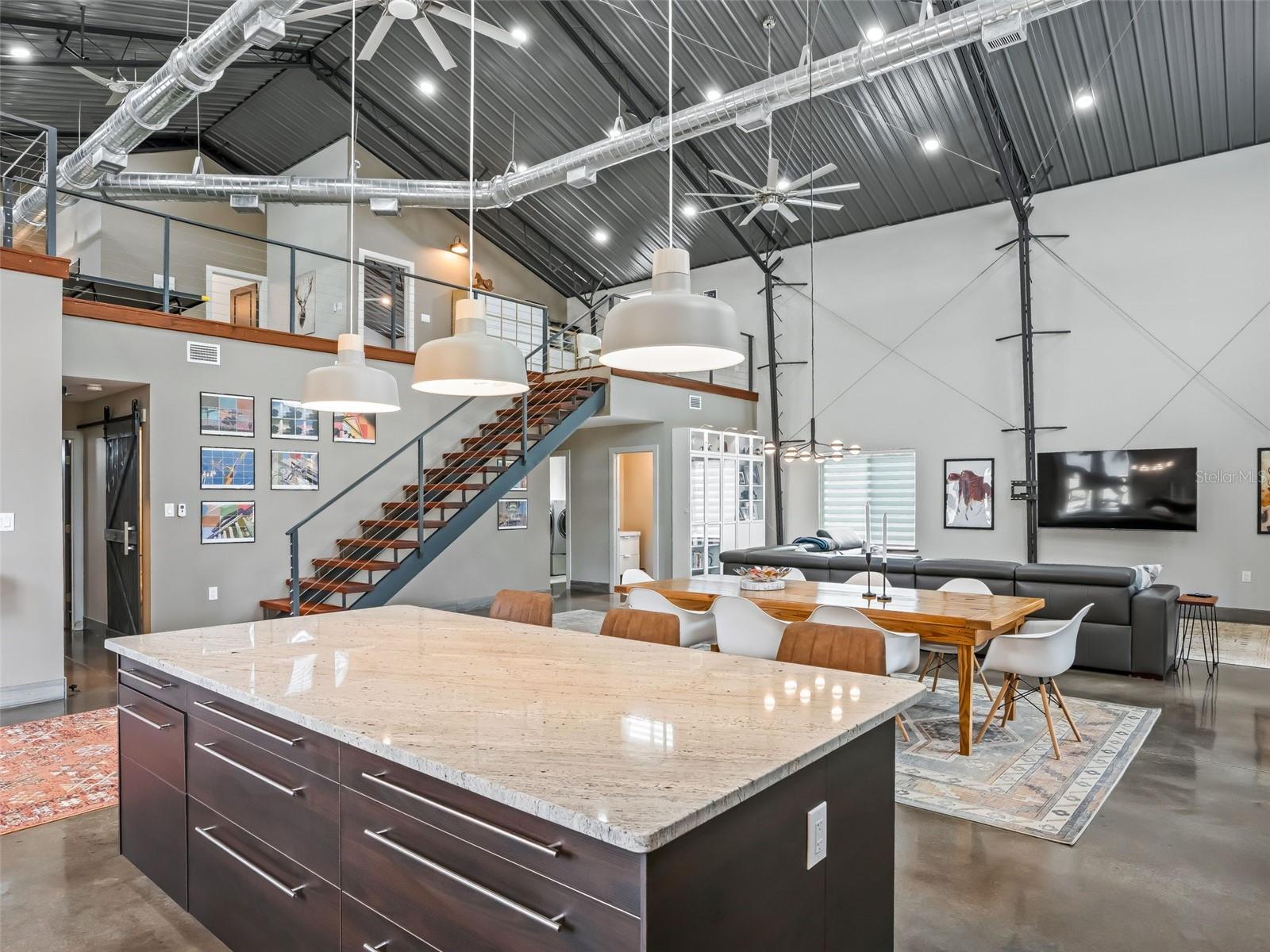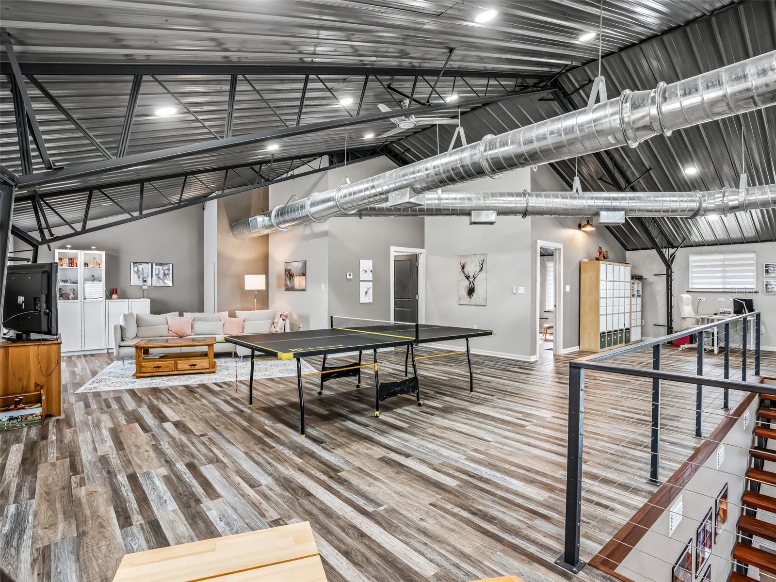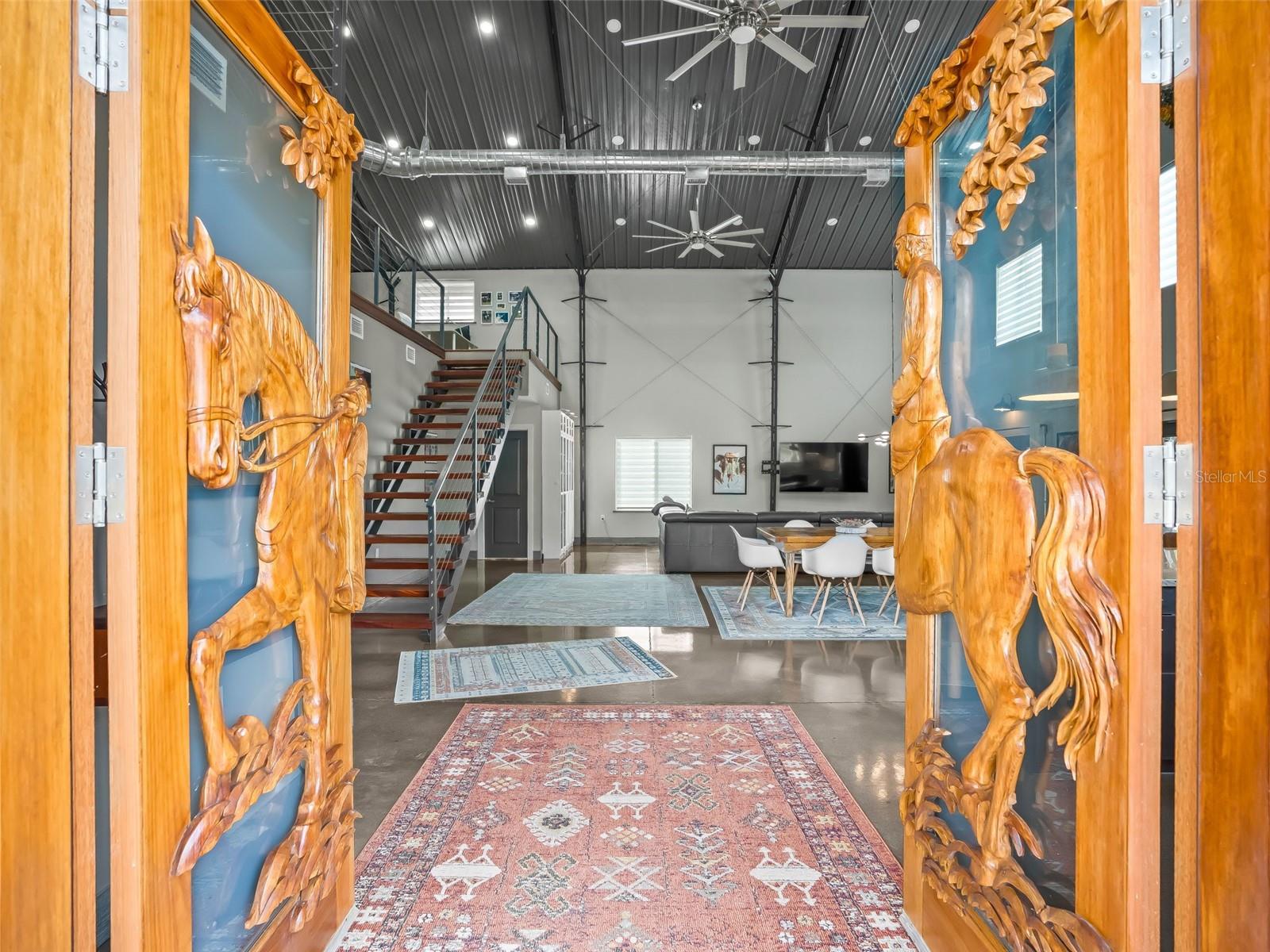 Localizada a menos de 15 minutos de lojas, restaurantes e entretenimento em Ocala, esta idílica propriedade para cavalos é composta por quase 25 acres cercados e fechados com um celeiro de blocos de concreto com corredor central de 6 barracas, oficina isolada em ferro vermelho e residência de 3.800 pés quadrados em estilo barndominium incrivelmente bem construída, escondida em particular na parte de trás da propriedade. A casa de dois andares é oferecida totalmente mobiliada e possui uma grande entrada coberta e porte-cochere que conduz através de deslumbrantes portas duplas esculpidas em mogno e para a planta aberta. Tetos altos, piso de concreto polido e uma escada flutuante de mogno definem o espaço. O primeiro andar possui uma sala de estar, jantar e cozinha totalmente aberta, duas suítes principais, duas salas de lama e lavanderia, além de um espaçoso pátio com vista para as pastagens, enquanto o loft no andar de cima oferece um quarto adicional, banheiro completo e loft/escritório projetado com a flexibilidade para adicionar outro quarto ou incluir um escritório dedicado. A qualidade foi a prioridade ao projetar e construir a residência com rodapés enterrados de 3', reforços de aço galvanizado a cada 2', isolamento de espuma em spray Icynene de célula aberta, paredes e piso internos isolados, camada de estabilização de fundação geomat, dutos espirais abertos e isolados, unidades AC duplas, chave de transferência do gerador e aquecedor instantâneo de água a gás. Extremamente eficiente em termos energéticos! O celeiro de blocos de concreto do corredor central possui seis baias de 12' x 12', além de armazenamento de feno/ração e espaçosa sala de arreios. Armazenamento não falta aqui com um edifício de ferro vermelho de 40' x 60' - totalmente isolado com serviço de 200 A, banheiro completo, duas portas de enrolar e duas baias cobertas de 30' x 60' de cada lado - são 6.000 pés quadrados de armazenamento coberto! Os destaques adicionais incluem: piscina de mergulho enterrada, vedação perimetral completa, 8 pastos vedados com bebedouros e vários atropelamentos, lindos carvalhos antigos espalhados por toda a propriedade, lagoa/retenção de água com drenagem perimetral, poço de 275' de profundidade, toda elétrica enterrada com 3 metros, edifícios de armazenamento adicionais e espaços cobertos. Não se deixe enganar por este endereço - localizado a menos de 30 minutos do centro de Ocala, aprox. 40 minutos para o Centro Equestre Mundial e menos de 10 minutos para Burbank com compras e várias trilhas exclusivas para equestres.