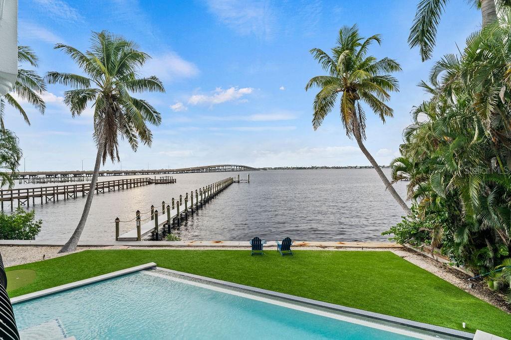 ***Investidores - receita projetada pelo AIRBNB para 2024 US$ 250 mil ***Bem-vindo ao seu próprio pedaço do PARAÍSO. Esta linda casa de três andares à beira-mar fica às margens do rio Caloosahatchee, a poucos minutos do golfo por água. *NOVO* Doca de 300 pés (2022) com elevador elétrico de 10Klbs. Piscina infinita com design personalizado (2022) com banheira de hidromassagem, bancos de piscina, prateleira de sol, pacote de iluminação, *NOVO* equipamento de piscina 2023. Gramado artificial Forever com putting green. Duas portas de vidro deslizantes de três níveis permitem vistas incríveis da água de quase qualquer lugar dentro da casa. Uma vez lá dentro, você será recebido por um primeiro andar completamente remodelado com bancadas de granito, duas máquinas de lavar louça, novos armários de cozinha, máquina de fazer gelo, refrigerador de vinho e geladeira de aço inoxidável, toneladas de balcões e assentos. O primeiro andar oferece um quarto e um banheiro completo com box amplo. O segundo nível possui banheiro privativo com closet, bancada em granito, piso frio e chuveiro. A sala de estar do 2º andar possui portas de vidro deslizantes que levam à varanda mostrando as belas vistas do mar em todas as direções. Existem dois quartos adicionais espaçosos, um com varanda privada e outro com um amplo closet. O terceiro andar é onde você será recebido por um grande quarto principal que oferece as melhores vistas de dois controles deslizantes de vidro que levam a uma varanda privativa envolvente, uma cozinha compacta com refrigerador de vinho e pia, banheiro principal com banheira de imersão, dois closets, toucador duplo e chuveiro de azulejos. Três novas unidades de AC com novos manipuladores de ar (2023) Casa recém-pintada, **NOVO TELHADO - escudo euro ônix 2024** Recurso do quarto: Armário de linho no banheiro (Quarto 4). A melhor pesca fora do cais, a poucos minutos de água do golfo. A ponte Cape Coral fica a poucos minutos de distância. 14 milhas do Aeroporto de Fort Myers, 9 milhas da Praia de Fort Myers.