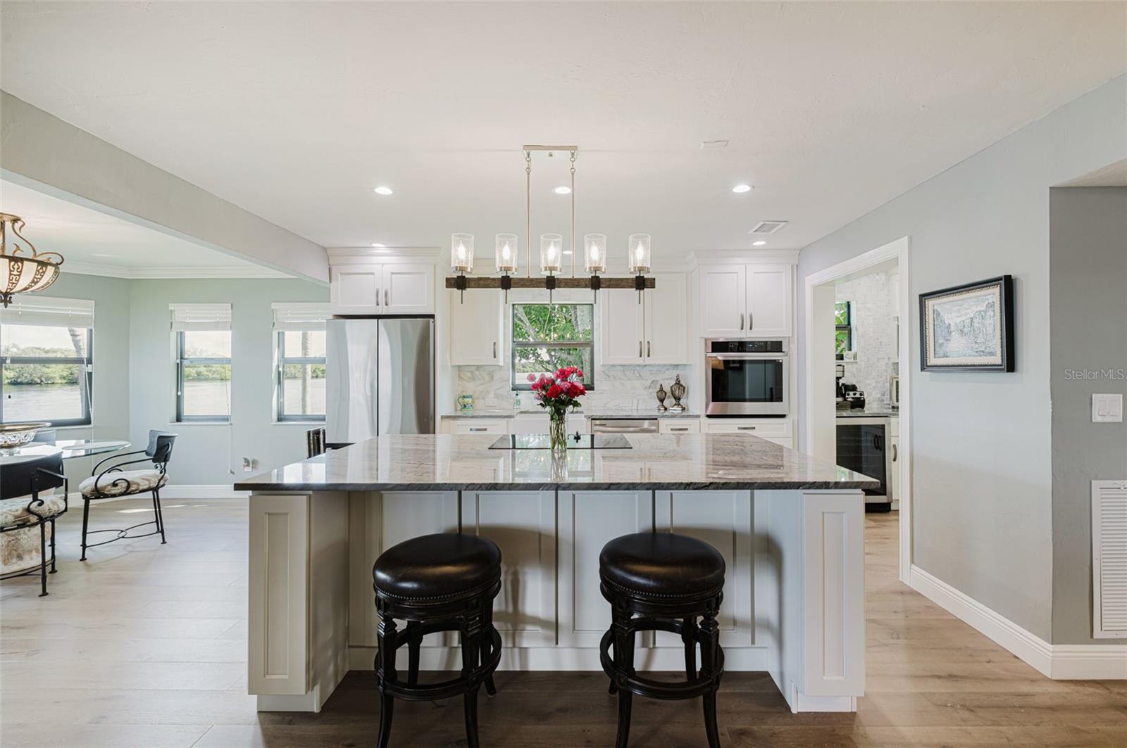 Uau! Reforma Exterior - Hardie Siding quase concluído. Escolha sua cor antes de pintar. Uma deslumbrante casa elevada à beira-rio. Esta linda casa fica no final de um ponto, proporcionando vistas deslumbrantes de 180°. Observe os peixes-boi e os golfinhos nadando em seu pátio, a poucos passos do rio. A varanda no andar de cima oferece um vislumbre da paisagem pitoresca – dê uma olhada nas fotos você mesmo! Esta casa não necessita de atualização, pois todos os banheiros, encanamentos e janelas de impacto foram instalados recentemente. Cada quarto possui seu próprio banheiro, sendo um no andar de baixo e dois no andar de cima. O banheiro principal é especialmente luxuoso; com armários personalizados e bancadas de granito, azulejos de grife e banheira de imersão independente. Persianas duplas se abrem na banheira, oferecendo uma vista deslumbrante do rio. A cozinha e a despensa são adornadas com bancadas em pedra quartzito e backsplash em mármore, além de eletrodomésticos novos. No andar de baixo, os pisos são feitos de elegante carvalho branco europeu de 7 1/2" de largura. Uma doca composta e um elevador de barco estão prontos para o seu barco. Há até espaço para uma piscina e um trailer! Esta casa oferece móveis negociáveis com venda, dando-lhe a oportunidade de adaptá-los às suas preferências e estilo de vida. Ao se aproximar da casa, você será recebido por uma grande e relaxante varanda com colunas e elegantes portas duplas que dizem: "Bem-vindo ao lar".