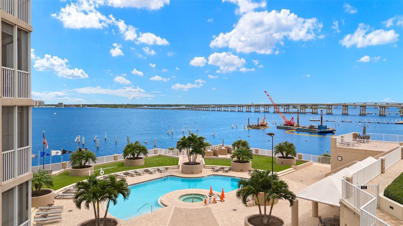 Bem-vindo ao High Point Place, onde a vida no centro da cidade está ao seu alcance! Esta unidade final no 8º andar oferece vistas infinitas do rio Caloosahatchee e do centro da cidade. Nada a fazer a não ser mudar-se e desfrutar do seu novo estilo de vida em arranha-céus! Seu elevador seguro da garagem se abre para seu hall de entrada privado com portas de entrada duplas. Vá direto para esta unidade de 2 quartos + sala e 2 banheiros com janelas/corredores de impacto, varanda traseira para pôr do sol perfeito e lavadora e secadora com carregamento frontal. Cozinha sensacional com bancadas em granito, eletrodomésticos de aço inoxidável, muito espaço no balcão e assentos no balcão para café da manhã são uma bela peça central da casa. O quarto do proprietário possui um grande closet, vistas incríveis e acesso direto à varanda com tela. A planta dos quartos divididos garante conforto e privacidade aos seus hóspedes. Desfrute de comodidades de primeira classe, incluindo piscina estilo resort, banheira de hidromassagem, cabana, áreas para churrasco ao ar livre, sala de eventos sociais reservável, academia, sauna, biblioteca e muito mais! Curta caminhada até as lojas, o Centennial Park e tudo o que o Downtown Fort Myers River District tem disponível. Esta é a sua chance de ter tudo!