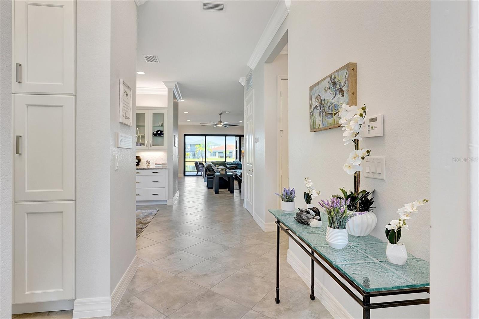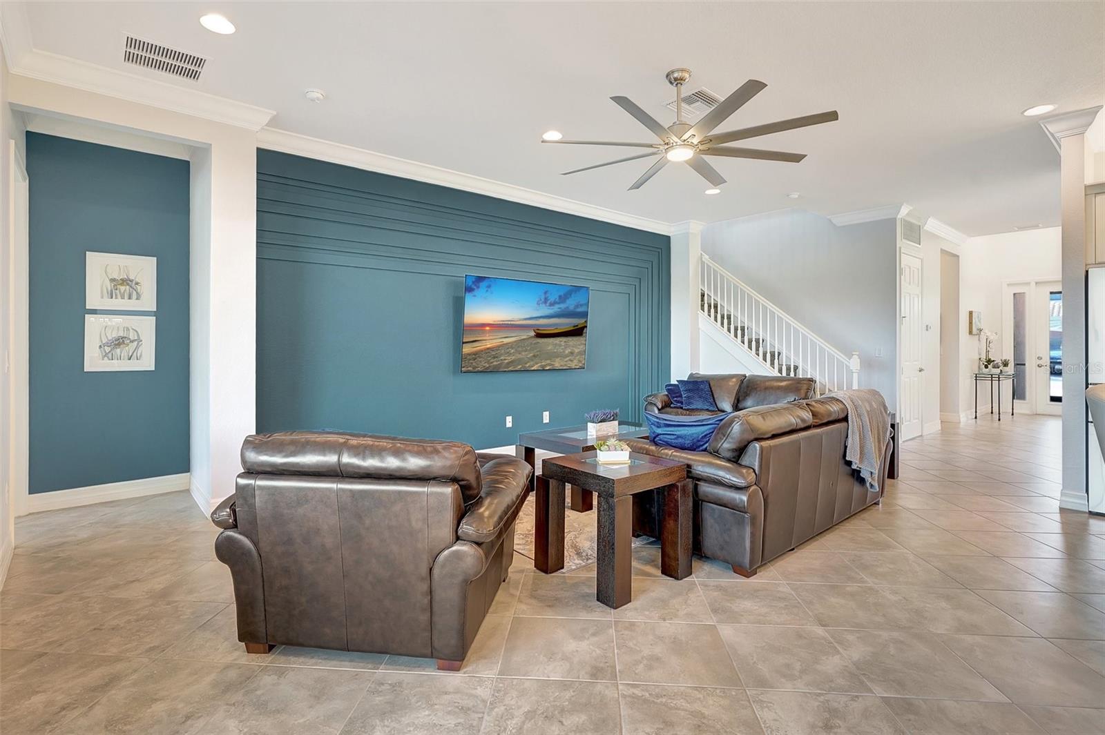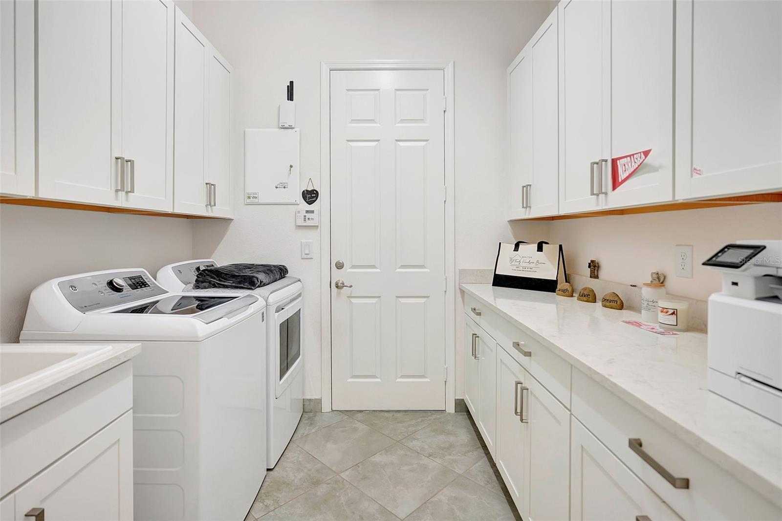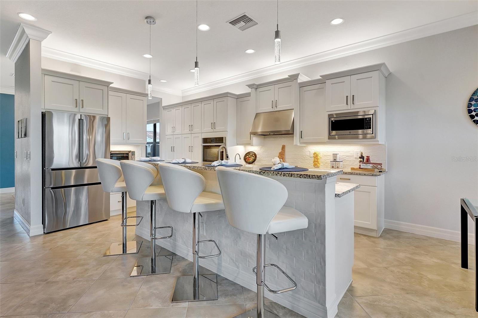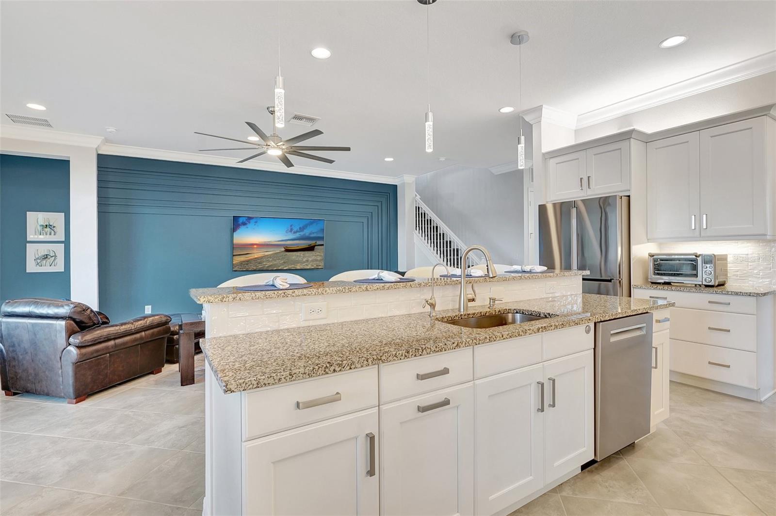 Bem-vindo à Marina Bay, uma luxuosa comunidade GL Homes, com uma impressionante casa de cinco quartos, quatro banheiros com uma garagem de três carros e 3.506 pés quadrados de elegância. Esta casa possui janelas e portas resistentes a impactos, um gerador Kohler inteiro com um tanque de propano de 500 galões e sistemas avançados de água, incluindo osmose reversa e um sistema de água Kinetico. A cozinha ao ar livre, completa com uma churrasqueira e duas geladeiras, é perfeita para entretenimento na Lanai estendida com uma vista serena de água. O quarto principal, localizado no primeiro andar, é um refúgio sonhador com tetos de bandeja, uma parede decorativa de destaque, uma banheira jacuzzi privada, uma porta de chuveiro sem moldura, pias duplas e armários personalizados com gavetas. Divirta-se com facilidade no espaço de conceito aberto que conecta perfeitamente a espaçosa sala de jantar formal e a cozinha. A casa, cheia de luz natural e acabamentos neutros, foi mantida imaculadamente. Uma luz UV adicionada ao sistema HVAC garante melhor qualidade e eficiência do ar. A cozinha gourmet é um paraíso do chef, com fornos duplos, uma ilha espaçosa, um backsplash de ladrilhos combinando e aparelhos de perfil de bosch/ge. Armários suaves de estilo shaker com gavetas de tração aumentam a eficiência silenciosa da cozinha. Ao se aventurar nas escadas acarpetadas para o segundo andar, você encontrará uma enorme sala de família/loft multifuncional com duas mesas, estantes personalizadas embutidas, arquivos e recursos de trabalho. Seus convidados e entes queridos desfrutarão de mais três quartos e dois banheiros. Uma rampa de lavanderia conveniente no segundo andar leva à lavanderia do primeiro andar, completa com armários de fechamento suaves embutidos e bancadas em granito. As comodidades adicionais da casa incluem um gramado lindamente paisagístico, um tanque de água quente de 80 galões, unidades de armazenamento de garagem, um armário de armazenamento de bônus com A/C, um piso de garagem epóxi, uma tela de furacão inteligente de tempestades, moldagem por coroa, ladrilhos de cerâmica por toda parte, Armários de cozinha de 42 polegadas, 55 luzes embutidas.