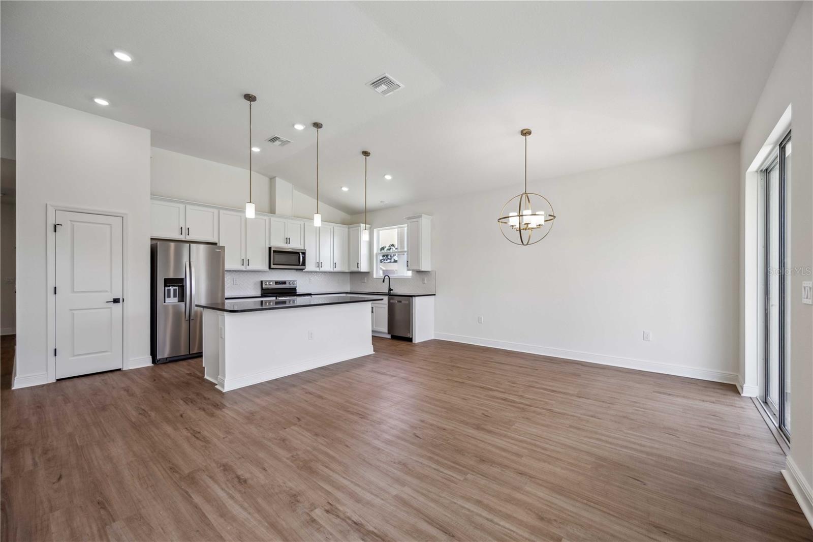 Prepare -se para encontrar a casa dos seus sonhos! Ao caminhar pela varanda da frente coberta, você notará o piso de tábua de vinil atualizado localizado em todas as áreas comuns e úmidas. Na frente da casa estão os quartos secundários e um banheiro secundário completo. À medida que você se move pelo corredor, você encontrará a grande sala grande, todos levando você ao pátio coberto. Um lugar perfeito para hospedar amigos e familiares! A cozinha vem equipada com uma ilha de comer, 42 pol. armários superiores com moldagem por coroa, despensa, bancadas de quartzo e A e um pacote de eletrodomésticos Whirlpool® de aço inoxidável. O quarto principal com banheira de conexão inclui um closet, uma vaidade de pia dupla estendida com bancadas de quartzo e um chuveiro com assento e arredores de ladrilhos. A comunidade não oferece CDD e a manutenção do gramado está incluída.