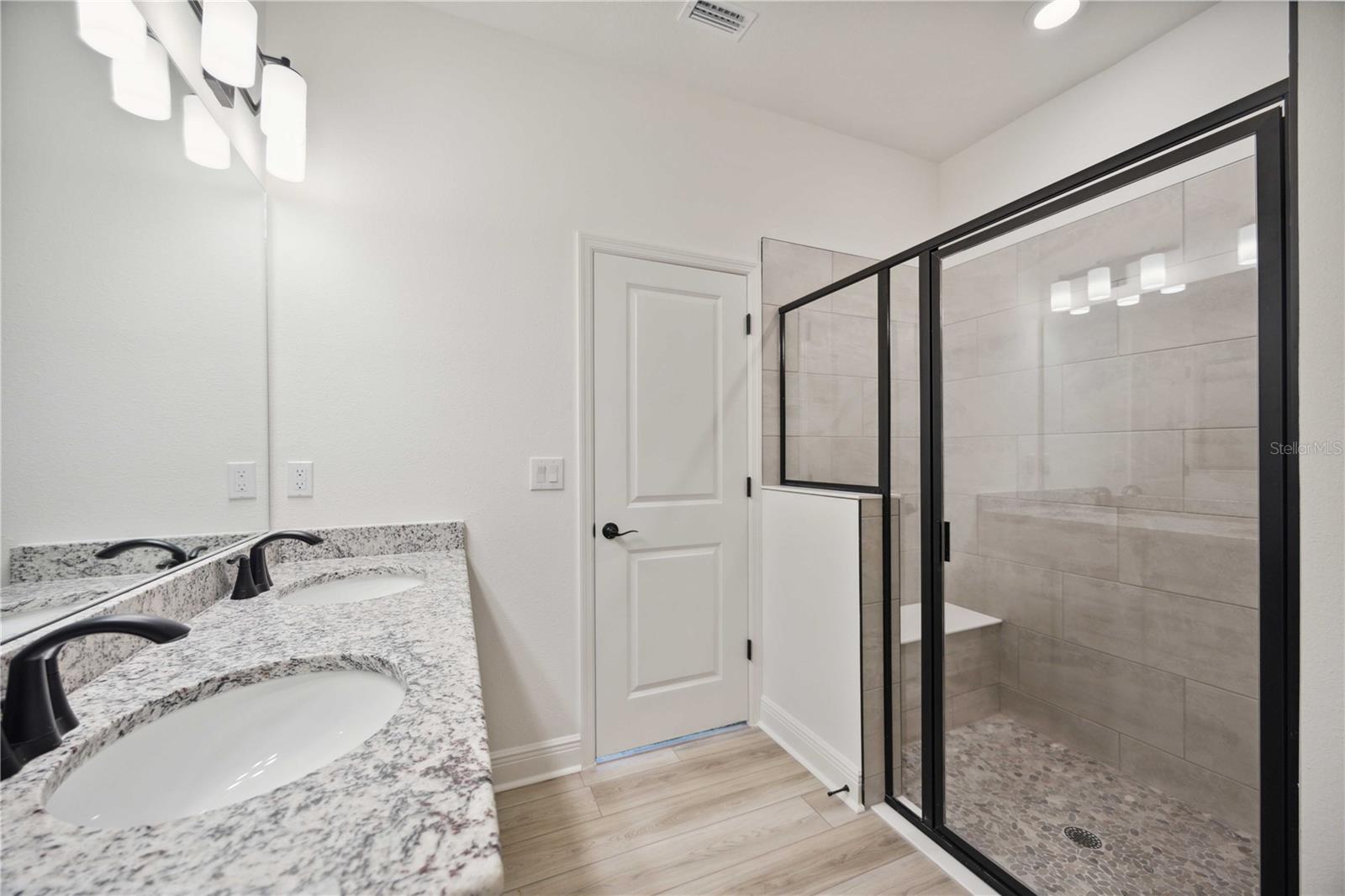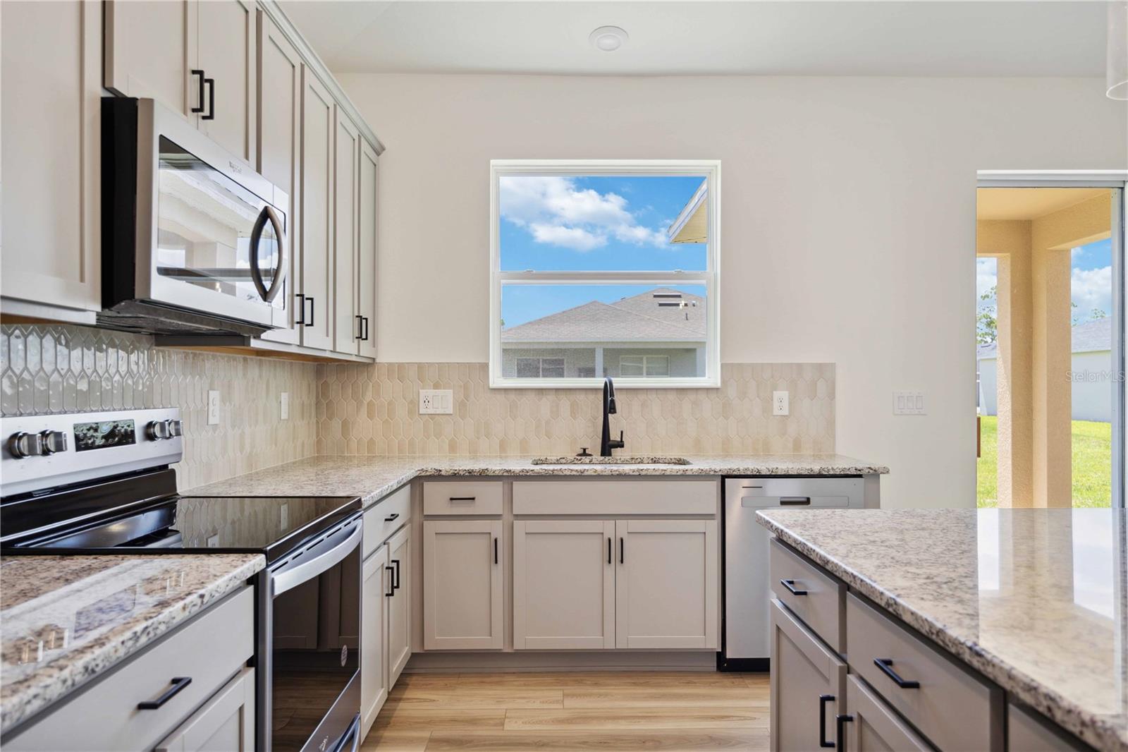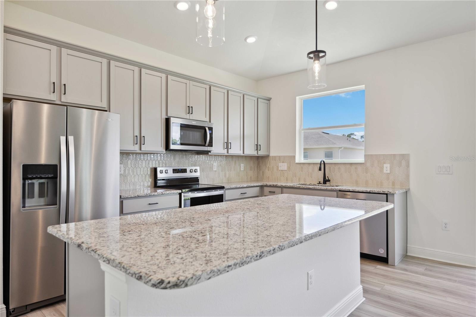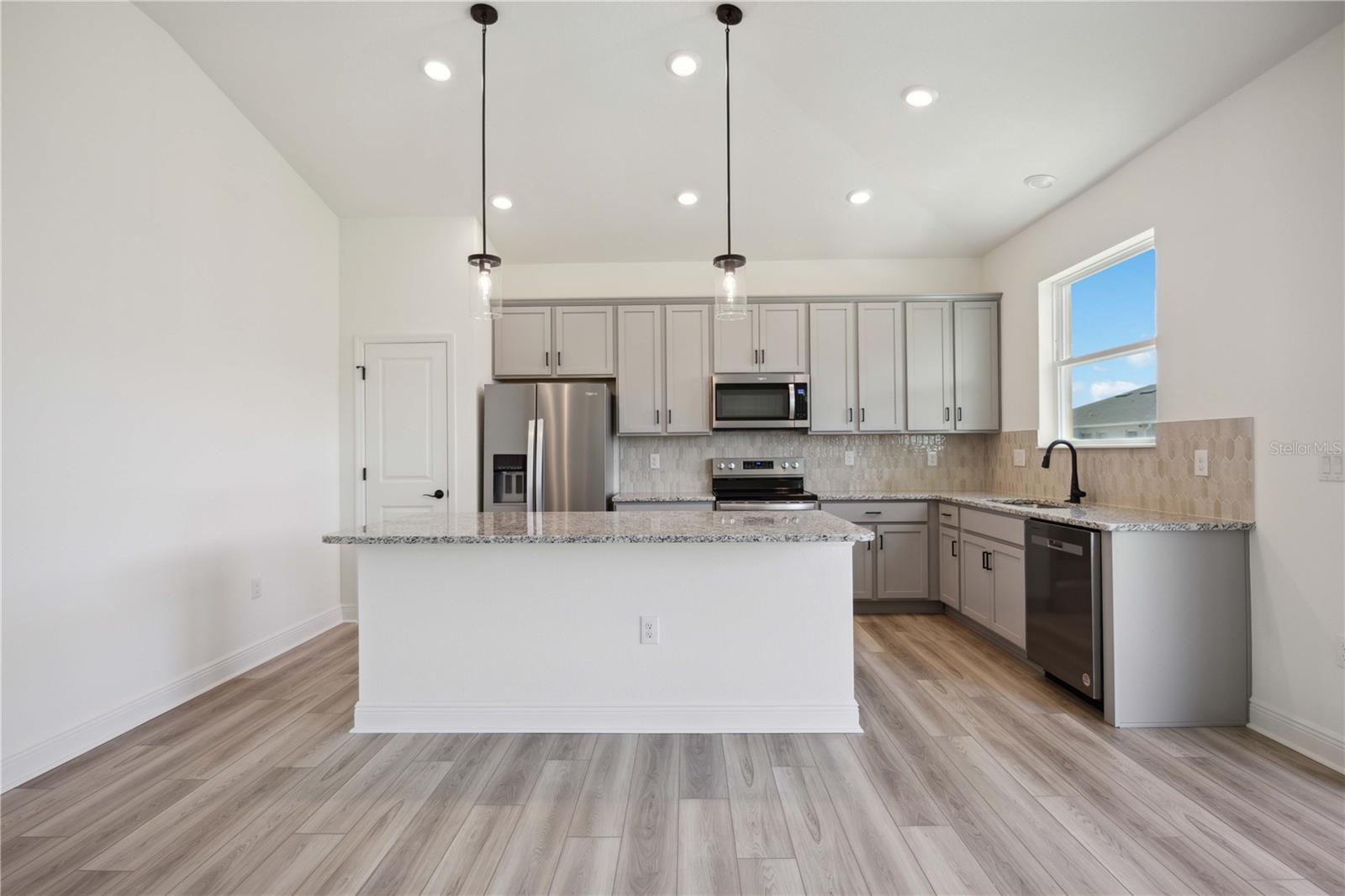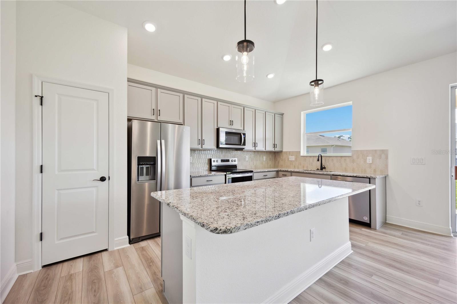 Esta encantadora casa de um andar certamente cativará você no momento em que você entra, mostrando pisos de tábua de vinil em todas as áreas comuns e úmidas. Em destaque na frente da casa, há um layout de quartos divididos, com quartos secundários, cada um completo com um armário considerável. Ao continuar pela entrada, você encontrará a ampla sala e a cozinha, todos levando você ao pátio coberto. A cozinha vem equipada com 42 pol. Armários superiores com moldagem por coroa, bancadas de granito, uma grande despensa, uma ilha de comer e um pacote de eletrodomésticos Whirlpool® de aço inoxidável. O quarto principal com banheiro de conexão inclui um closet, uma vaidade de pia dupla estendida com bancadas em granito, um armário de linho e um chuveiro com assento e título. A comunidade não oferece CDD e manutenção de gramado isolada