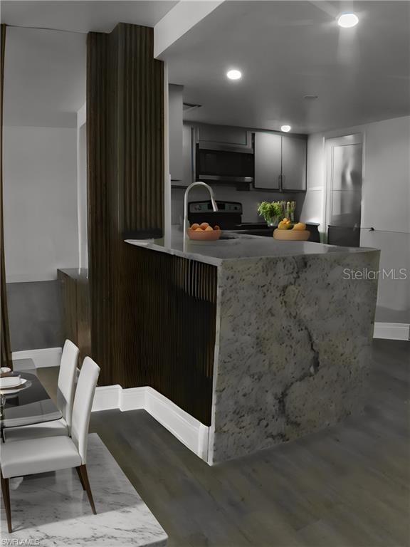 Uma ou mais fotos foram virtualmente encenadas. Retiro dos sonhos à beira-mar. Este condomínio ensolarado oferece vistas do Rio Caloosahatchee e do famoso pôr do sol SWFL. Com design aberto e piso moderno, este 2/2 é uma combinação perfeita de conforto e estilo para profissionais ou visitantes sazonais. A cozinha conta com eletrodomésticos novos, armários e bancada de quartzo que funciona como bar. Acorde com vista para o rio no quarto principal, enquanto o quarto de hóspedes tem vista para a piscina, garantindo que cada um seja um oásis privado, com bastante espaço de armazenamento, pois ambos possuem closets personalizados. Passe algum tempo relaxando à beira da piscina, passeando ao longo do rio ou visitando lojas, supermercados e restaurantes próximos. Para uma dose de cultura e entretenimento, pegue o bonde gratuito até o centro histórico, onde você encontrará arte, música, compras e opções gastronômicas exclusivas. Os entusiastas do golfe podem se deliciar com o Ft. projetado por Donald Ross. Myers CC, a uma curta distância de carro pela McGregor Blvd, ladeada por palmeiras. Os que procuram o sol podem se aventurar nas belas costas de Fort. Myers Beach e Sanibel. Ou mergulhe na história local com uma parada no Edison-Ford Estates, bem perto de casa. Não perca! VIVA SWFL com este cativante condomínio à beira-mar.