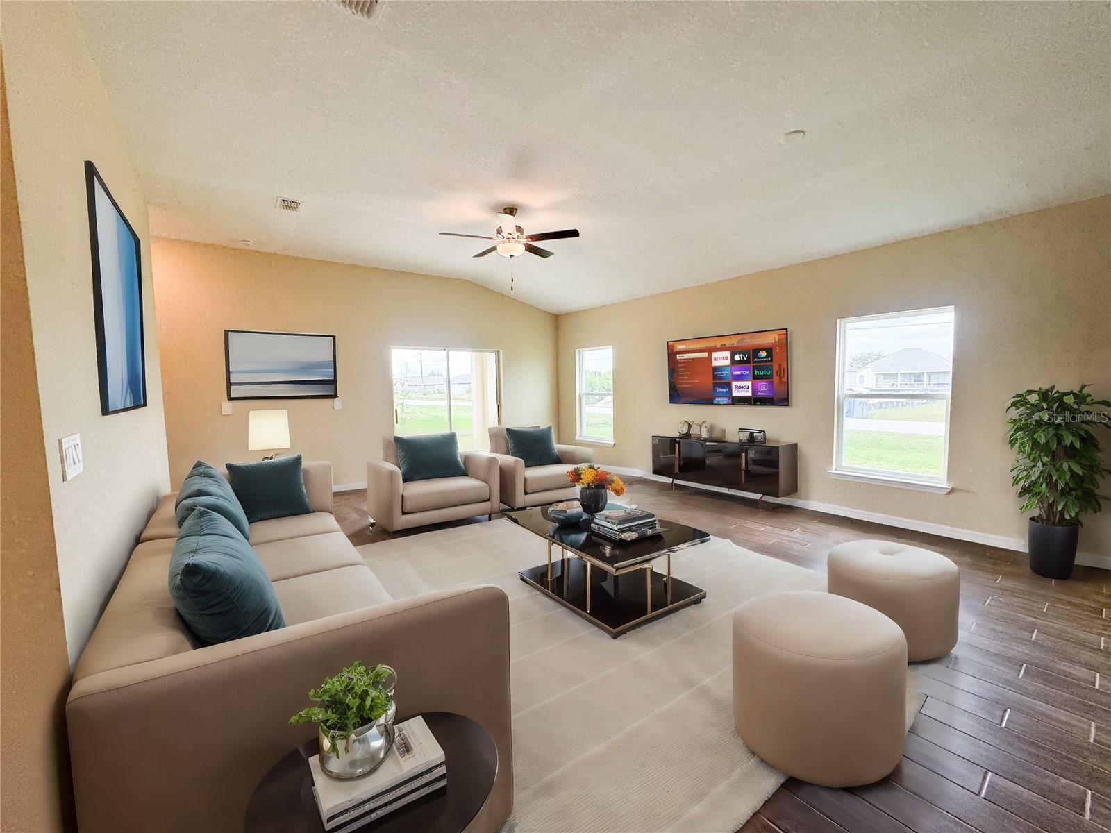 ***NOVA CONSTRUÇÃO, NÃO ESPERE, MUDANÇA PRONTA!*** Eleve seu estilo de vida com a opulência da planta baixa Sanibel I apresentada pela Carpenter Homes - uma obra-prima da Florida Living Series, certificada pela Florida Green Building Coalition (FGBC) . Esta casa dispõe de 4 quartos e 2 banheiros completos. Esta casa dos sonhos foi projetada e construída para mergulhar você no luxo. Ao entrar, uma bela cozinha lhe dá as boas-vindas, com um amplo bar que flui perfeitamente para a área de estar e de jantar. A sutileza dos armários Shaker Stained de 36 "de fechamento suave e das bancadas de granito Santa Cecilia atualizadas adicionam um toque funcional de luxo à cozinha. As atualizações da cozinha incluem uma torneira de cozinha cromada Moen Integra, triturador de lixo e elegantes eletrodomésticos de aço inoxidável com eficiência energética. Isto a casa exala sofisticação com um teto abobadado que revela uma varanda espaçosa, criando um refúgio interno e externo. Além disso, a Carpenter Homes oferece um pacote de iluminação atualizado, incluindo pingentes Kemal Bronze sobre a barra da cozinha e luminárias de níquel escovado Oslo em ambos os banheiros, acentuando o estilo. O design geral da iluminação. Ventiladores de teto com acabamento em níquel escovado em cada quarto, bem como na grande sala, ajudam a circular o fluxo de ar e a mantê-lo fresco no clima da Flórida. Complementando a ampla área de estar, há o piso de cerâmica Magnisi 6x26 ”. A suíte do proprietário é um santuário de indulgência, apresentando pias duplas, paredes bege Magnisi de 8x12” impecavelmente revestidas no chuveiro e um closet de tamanho generoso. A casa possui paredes de azulejos bege Magnisi 8x12 ”atualizadas na segunda banheira/chuveiro, um tampo de granito Santa Cecilia e torneiras cromadas Moen Chateau e kits de acabamento para chuveiro/banheira. A amplitude desta casa continua com uma despensa e acréscimos como isolamento R-4.1 com eficiência energética em paredes externas de concreto, tubos Taexx para controle de pragas e venezianas de tecido para todas as janelas. O jardim paisagístico amigável da Flórida é complementado por um sistema de irrigação com sensor de chuva para ajudar a maximizar a eficiência. A ampla garagem para 3 carros, completa com controle remoto e quatro controles remotos, não só oferece amplo espaço para as suas necessidades diárias, mas também garante a máxima comodidade e versatilidade para todas as suas necessidades de armazenamento e estacionamento. Entre em um mundo onde a extravagância encontra uma vida ecologicamente consciente – sua casa para sempre espera por você, um testemunho da elegância atemporal e da sustentabilidade moderna! Disponível para visualização a qualquer momento!