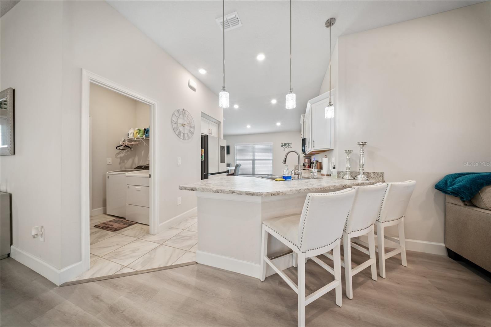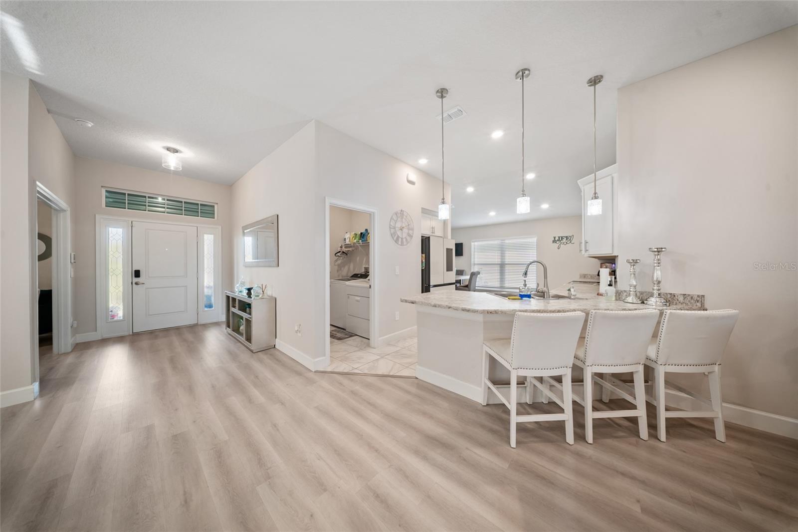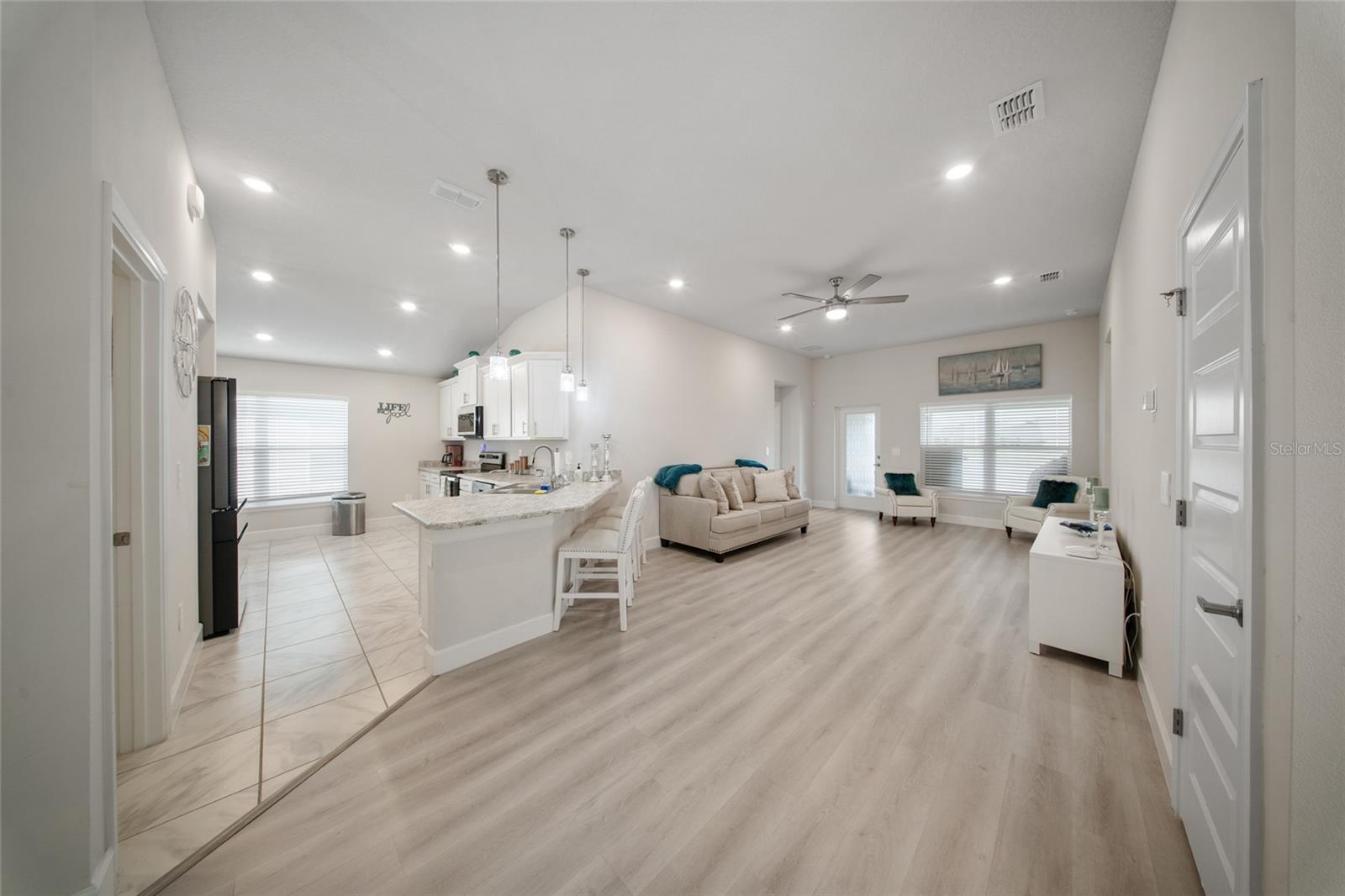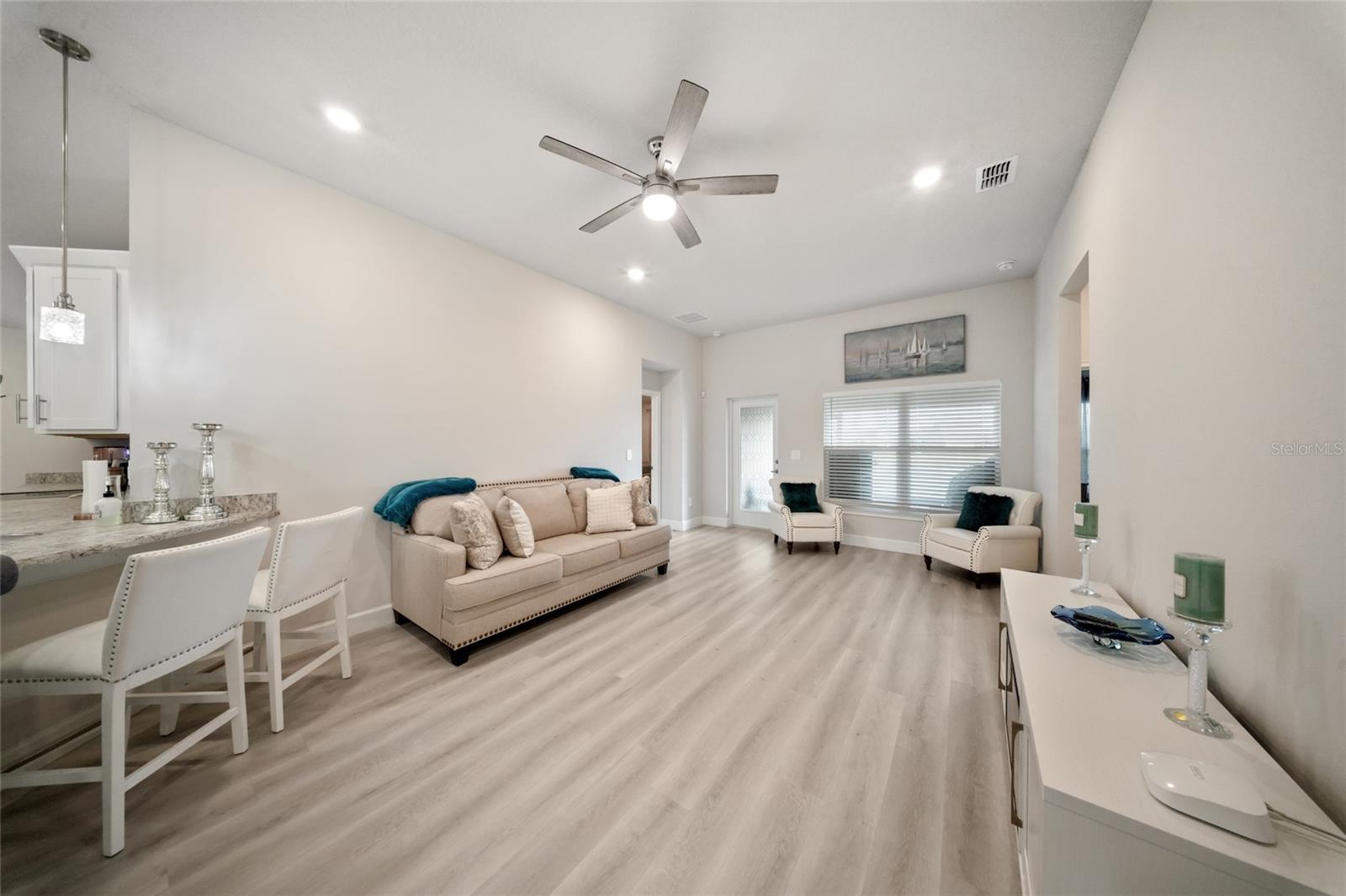 Descubra a casa dos seus sonhos em Waterstone, com esta encantadora casa unifamiliar com 4 quartos espaçosos e 2 banheiros modernos. Perfeitamente projetado para vida familiar, sem tapetes aqui! Esta residência possui pisos de prancha de luxo recém -instalados que oferecem uma atmosfera acolhedora e convidativa com ampla luz natural. Todos os quartos são de tamanho agradável, ótimo para seus móveis grandes. O quintal fornece a um oásis particular uma vista coberta de Lanai e serena do lago, tornando -o ótimo para entretenimento. Home apresenta layout aberto, plano de quarto dividido, área de jantar separada, tetos de 10 ', península de granito grande na cozinha. Perto da I-95, lojas e restaurantes, pesca e praias! Piscina comunitária, sala de fitness, playground, área de piquenique, vôlei, tênis e quadras de pickleball.