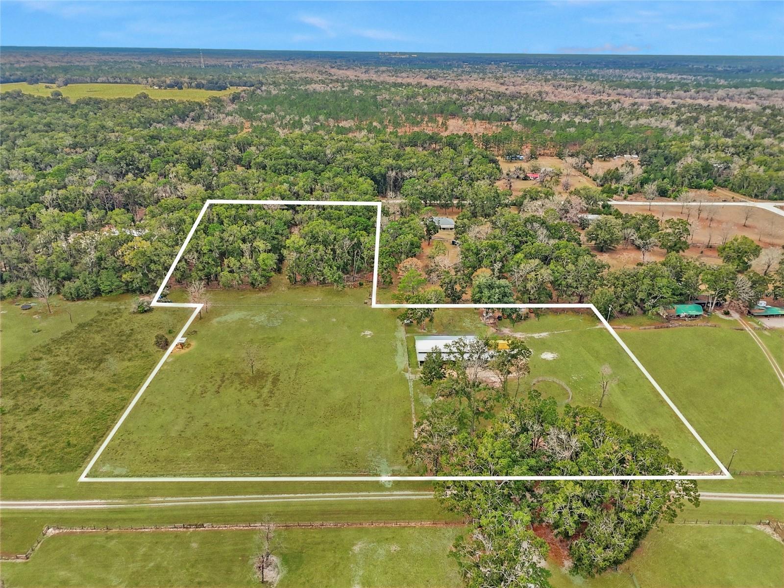 Oportunidade rara de possuir 10 belos acres em Fort White, compostos por dois lotes de 5 acres conectados e edificáveis - oferecendo flexibilidade, privacidade e possibilidades infinitas. A propriedade oferece o melhor dos dois mundos: um lote fica em frente ao Freedom Court e é densamente arborizado, criando um buffer natural e uma área residencial isolada, enquanto o segundo lote fica em frente ao Cowpoke Court e é quase todo limpo com árvores maduras espalhadas - ideal para uma casa, pasto ou melhorias adicionais. Preparada para hipismo, a propriedade limpa é totalmente cercada e cruzada, tornando-a perfeita para cavalos ou gado. Um espaçoso celeiro de 84' x 40' com uma lateral adicional de 14' x 84' possui quatro baias para cavalos e um lavatório de concreto. Um dos lados do celeiro foi iniciado como barndominium e inclui um banheiro, com potencial para ser finalizado como alojamento, espaço para hóspedes ou escritório privado. A infraestrutura já está instalada, incluindo um sistema séptico do tamanho de uma casa de 3 quartos e um poço de 4" perfurado até 100 pés. Os contêineres de transporte na propriedade serão transportados, proporcionando amplo armazenamento adicional. (RV e curral redondo não ficam.) Idealmente localizada na região de nascentes do norte da Flórida, esta propriedade oferece acesso rápido aos rios Santa Fé e Ichetucknee, tornando-a perfeita para passeios de caiaque, tubing e recreação ao ar livre. Você está a apenas uma curta distância de carro de Gainesville para fazer compras, restaurantes, instalações médicas e a Universidade da Flórida, enquanto Lake City também está convenientemente próximo para comodidades adicionais. Esteja você procurando construir a casa dos seus sonhos, criar uma fazenda ou desfrutar de um retiro rural tranquilo, esta versátil propriedade de 10 acres está pronta para sua visão.