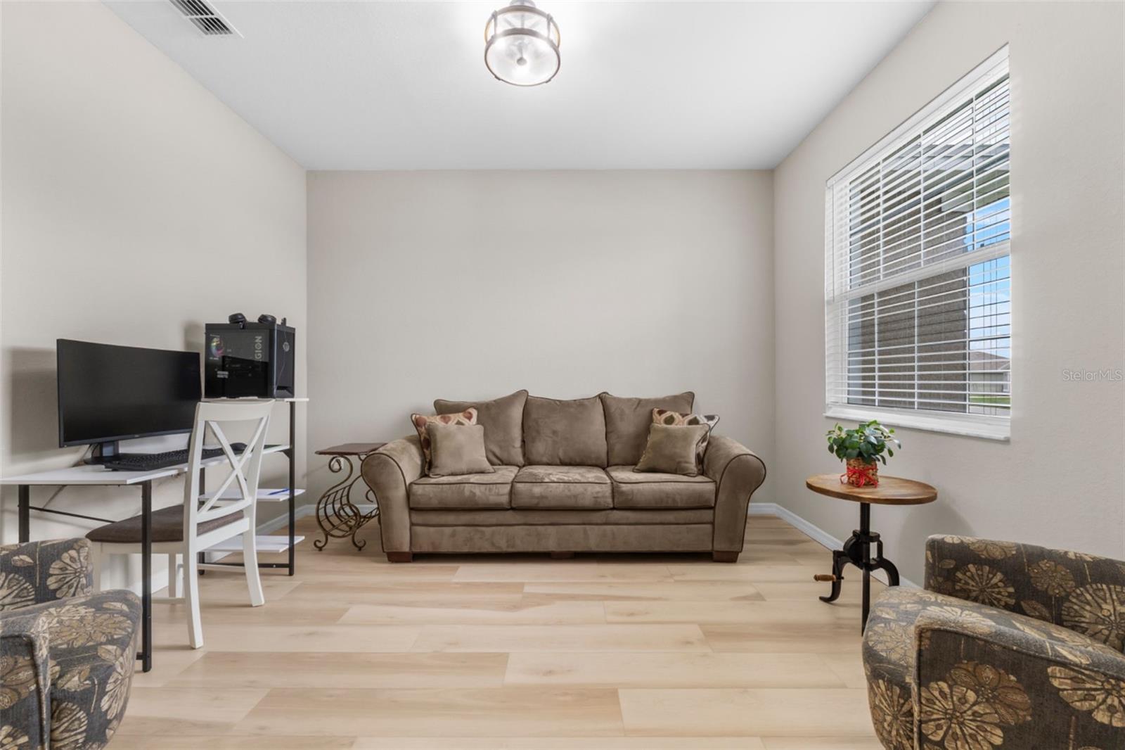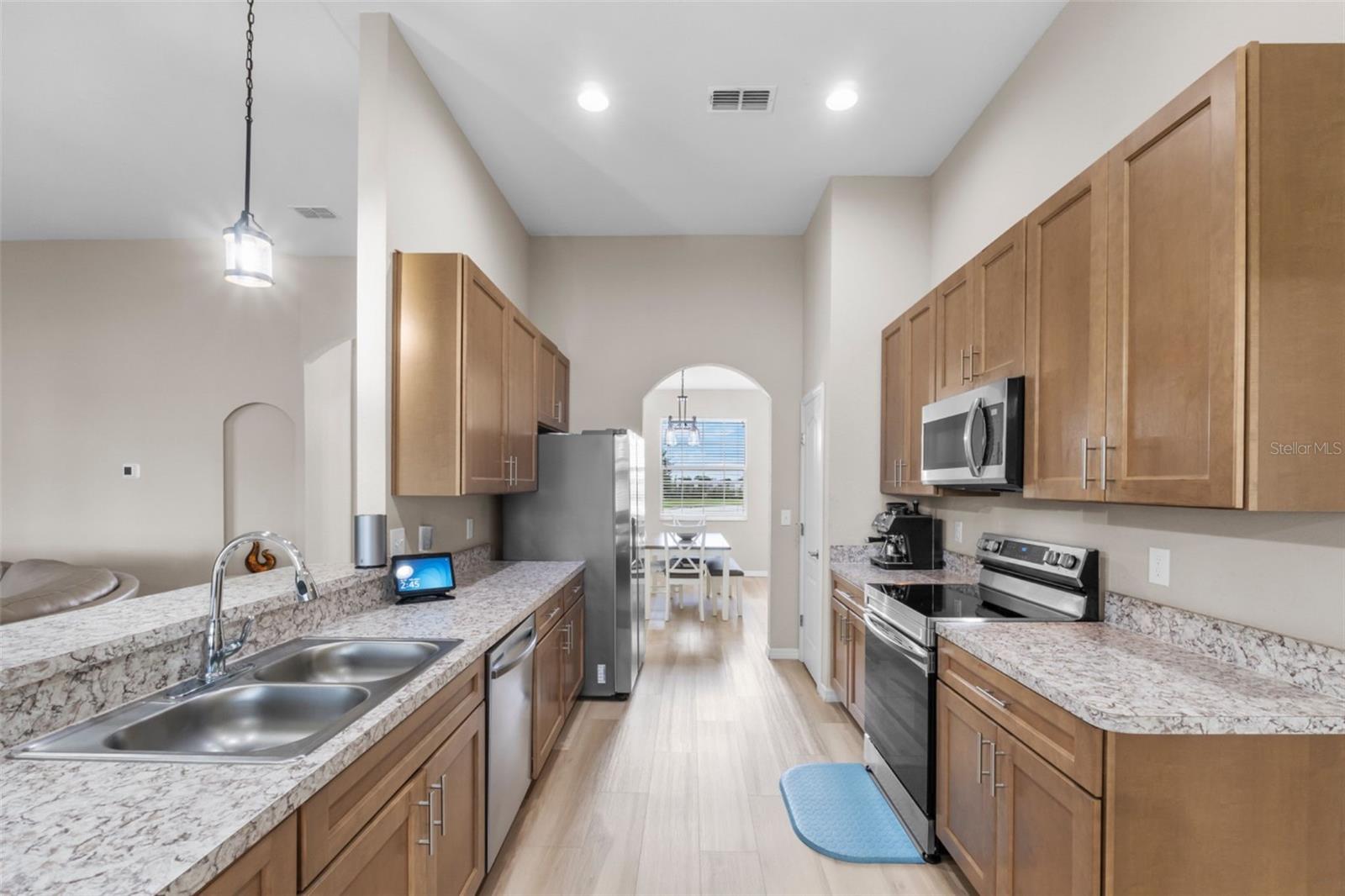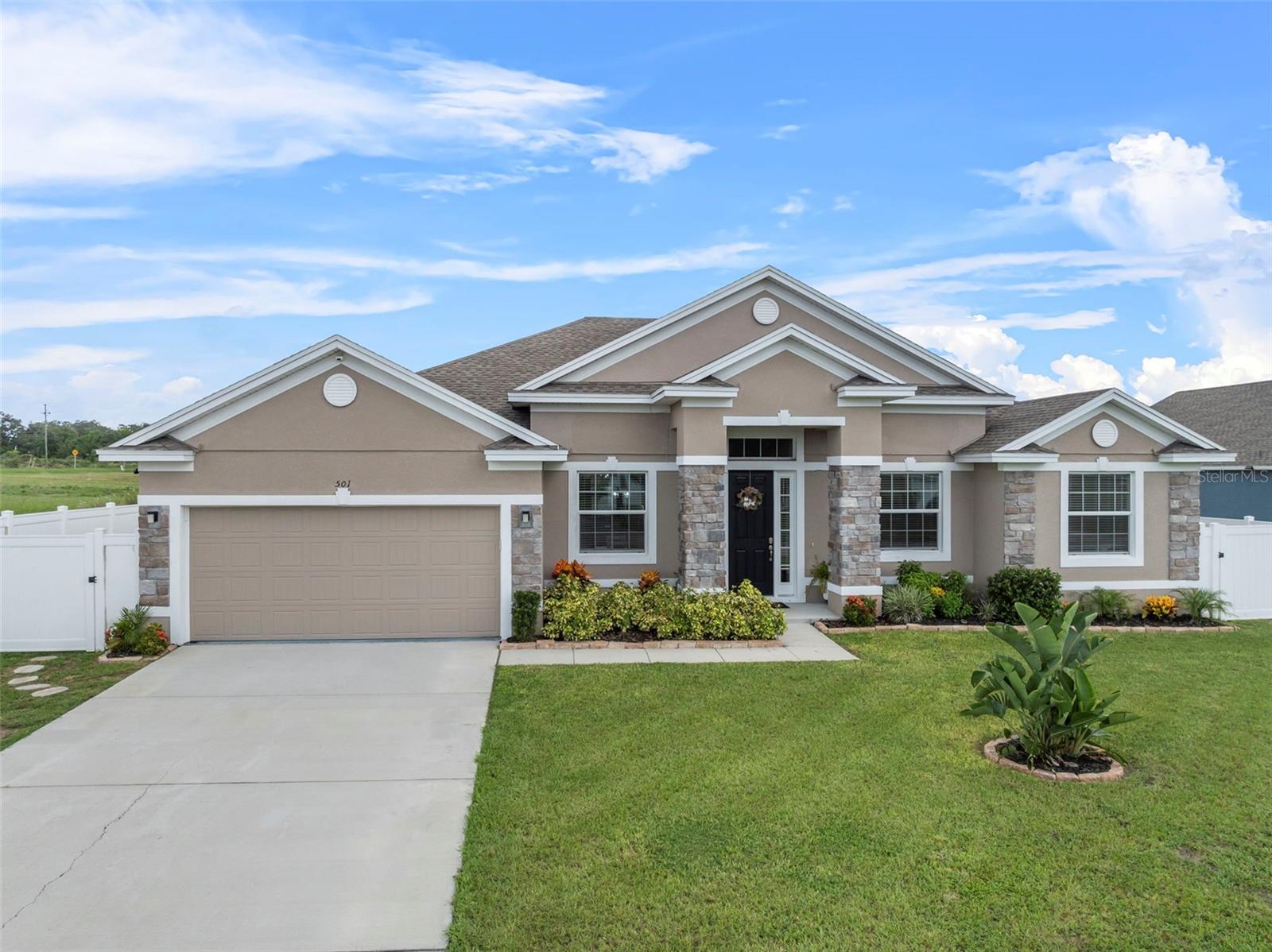 LINDA CASA NOVA DE 4 QUARTOS E 2 BANHEIROS EM BAIRRO ESTABELECIDO, IDEAL PARA FAMÍLIAS! Há uma sala logo ao lado do hall de entrada que poderia facilmente se tornar um 5º quarto! Esta casa fica a uma curta distância de lojas de alimentos, 2 restaurantes e minutos de bancos e muito mais! Entre no hall de entrada e entre na planta aberta adornada com tetos de catedral, aumentando o espaço da casa. Ao entrar no hall de entrada, à direita encontra-se um escritório/escritório que poderá ser um 5º QUARTO! A cozinha está aberta para a sala de estar e para a área de refeições diária. Entre a cozinha e a área de estar, existe uma prática barra de pequeno-almoço. A cozinha também está aberta para a sala de jantar formal para facilitar a recepção dos convidados. A planta do quarto dividido oferece um espaçoso quarto principal 16x12 com banheiro privativo 16x11 que abriga um closet 16x11, bem como um chuveiro extra grande! Existem dois quartos no corredor que compartilham um banheiro no corredor. O 4º quarto está localizado próximo à área de estar com um amplo closet que é IDEAL PARA HÓSPEDES! Saia da área de estar para uma varanda de 13x13 que se abre para o quintal paisagístico com cerca de privacidade! ESTA CASA TEM MUITO MAIS...Muita arrumação, tectos altos, muita luz natural, cozinha totalmente equipada com todos os electrodomésticos Samsung, lavandaria interior com ligações para máquina de lavar e secar roupa, garagem dupla 20x22 com chão pintado em epóxi, e uma sistema de segurança integrado! Além disso, esta casa fica em um terreno de bom tamanho, totalmente irrigado, em uma rua sem saída! O belo paisagismo diferencia esta casa! É UMA CASA IMPERDÍVEL DE 4 QUARTOS QUE PODERIA SER 5 QUARTOS!