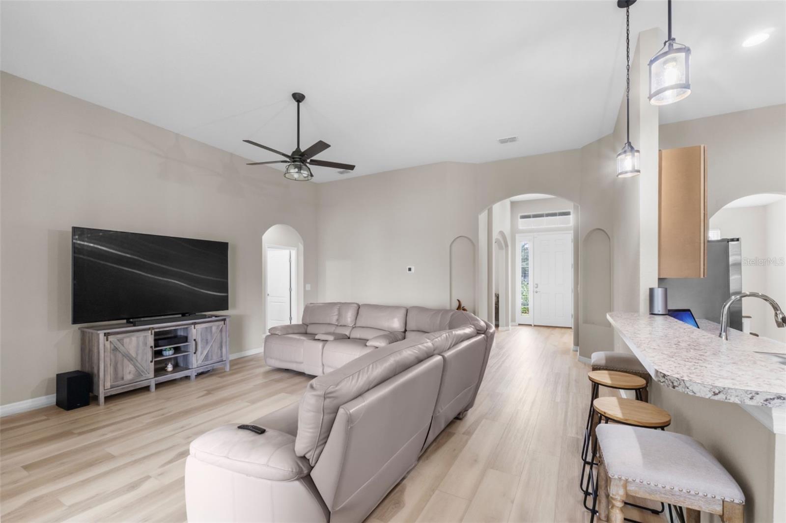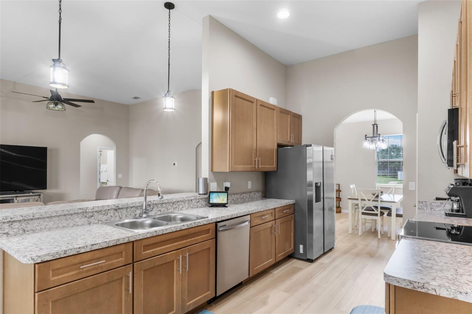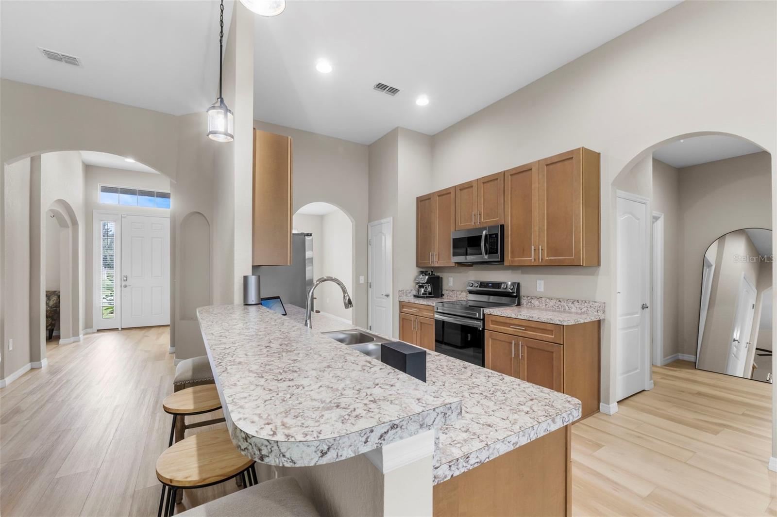 LINDA CASA NOVA DE 4 QUARTOS E 2 BANHEIROS EM BAIRRO ESTABELECIDO, IDEAL PARA FAMÍLIAS! Há uma sala logo ao lado do hall de entrada que poderia facilmente se tornar um 5º quarto! Esta casa fica a uma curta distância de lojas de alimentos, 2 restaurantes e minutos de bancos e muito mais! Entre no hall de entrada e entre na planta aberta adornada com tetos de catedral, aumentando o espaço da casa. Ao entrar no hall de entrada, à direita encontra-se um escritório/escritório que poderá ser um 5º QUARTO! A cozinha está aberta para a sala de estar e para a área de refeições diária. Entre a cozinha e a área de estar, existe uma prática barra de pequeno-almoço. A cozinha também está aberta para a sala de jantar formal para facilitar a recepção dos convidados. A planta do quarto dividido oferece um espaçoso quarto principal 16x12 com banheiro privativo 16x11 que abriga um closet 16x11, bem como um chuveiro extra grande! Existem dois quartos no corredor que compartilham um banheiro no corredor. O 4º quarto está localizado próximo à área de estar com um amplo closet que é IDEAL PARA HÓSPEDES! Saia da área de estar para uma varanda de 13x13 que se abre para o quintal paisagístico com cerca de privacidade! ESTA CASA TEM MUITO MAIS...Muita arrumação, tectos altos, muita luz natural, cozinha totalmente equipada com todos os electrodomésticos Samsung, lavandaria interior com ligações para máquina de lavar e secar roupa, garagem dupla 20x22 com chão pintado em epóxi, e uma sistema de segurança integrado! Além disso, esta casa fica em um terreno de bom tamanho, totalmente irrigado, em uma rua sem saída! O belo paisagismo diferencia esta casa! É UMA CASA IMPERDÍVEL DE 4 QUARTOS QUE PODERIA SER 5 QUARTOS!