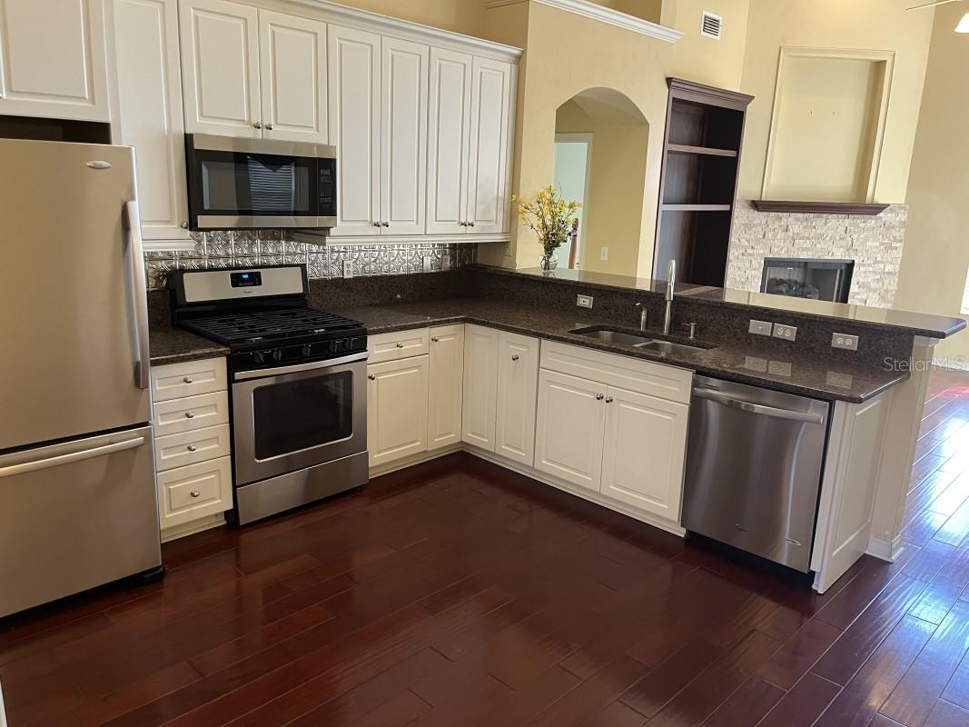 Pronto para morar! Lindamente atualizado 3/2 com mais de 1.900 SF. Tetos abobadados de 20 pés na cozinha e na sala. A planta aberta e iluminada oferece muita luz natural. Prateleiras e recantos decorativos para plantas. Piso de madeira escura de fácil manutenção no hall de entrada, cozinha e sala. Lareira a gás e centro de entretenimento embutido em madeira escura. Cozinha reformada com armários de 42 polegadas, bancada de granito com geladeira de inox, fogão a gás e lava-louças. Quarto principal com teto falso e banheiro principal com banheira de hidromassagem e box amplo separado. A varanda traseira remodelada, fechada e de azulejos, tem vista para o quintal totalmente cercado com dutos de aquecimento/AC. Esta casa fica em um terreno de esquina com belo paisagismo. Todos os eletrodomésticos ficam inclusive a lavadora e secadora Whirlpool lado a lado em pedestais. Telhado substituído em 2021 por Perry Roofing.