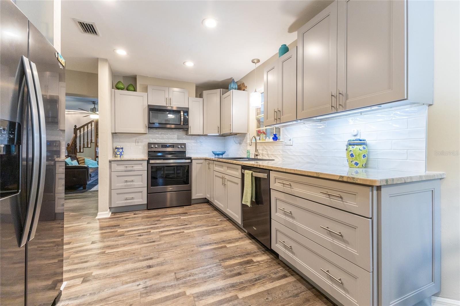 Venha ver esta linda casa de 3 quartos de Brick Remodeled 3 quartos na comunidade apropriadamente chamada, The Retreat! Roof (2019), Rheem Gas Water Heater (2019), Trane AC (2018), Hunter Wireless Irrigation System, Lifetime 8X10 Storage Shed com laje de concreto (2020). Isso está pronto para se mudar, o Show Stopper é um lar único que possui uma sala de estar ampla e aconchegante com lareira a lenha e uma janela única, permitindo que a luz natural em cascata para dentro. A cozinha remodelada possui aparelhos inoxidáveis, toneladas de espaço de contra -preparação e decoração de biscoitos, um café, armários de madeira espaçosos, sob iluminação de armários para uma melhor iluminação preparatória ou iluminação noturna, bancadas de granito, uma grande pia profunda e uma grande janela sobre a pia com a vista da sua exuberante vice -verde. Há também uma enorme caminhada em despensa. A área da cozinha se encaixa em uma grande mesa redonda perfeita para amigos e familiares se reunirem. Há um banheiro perfeitamente colocado na cozinha para os hóspedes e uma lavanderia muito grande na garagem de 2 carros. O primário é leve e brilhante, com um closet e um banheiro absolutamente deslumbrante em forma de spa. No andar de cima, você encontrará dois quartos de tamanho de tamanho com armários muito grandes e muito espaço para se espalhar e relaxar. O quintal é enganosamente enorme, com uma área de estar de concreto estampada maravilhosamente personalizada e uma enorme área de recreação de grama. Graças a nenhum vizinho atrás de você, é muito pacífico. Há algo para todos. Muito espaço para jardim e galpão de armazenamento para armazenamento extra para manter sua garagem limpa e organizada. A minutos da cidade de Tioga, lojas, supermercado, Medical, UF, norte da Flórida e I-75. Agende sua consulta hoje !!