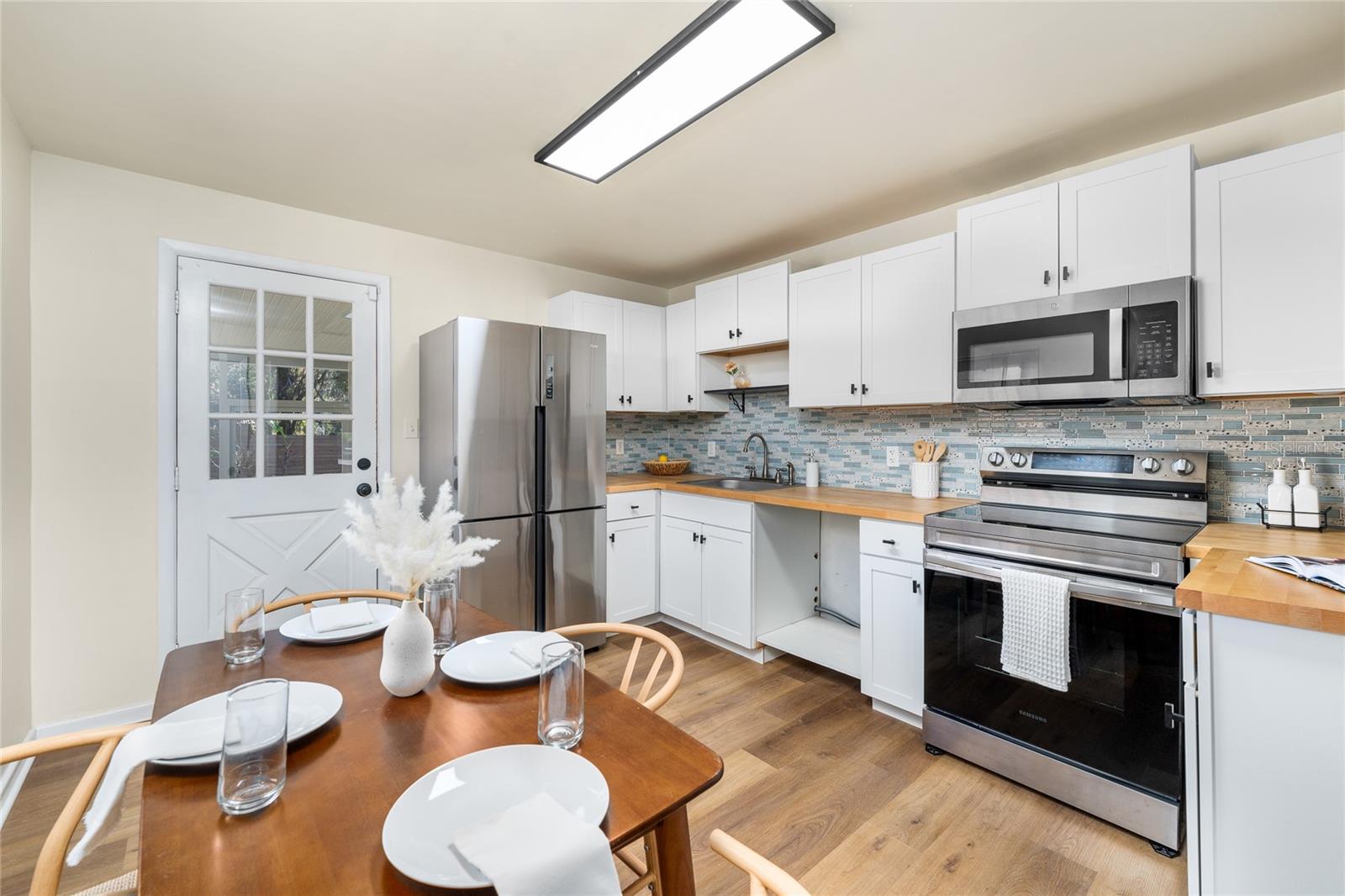 Bem-vindo ao 431 SE 6th Terrace, uma casa deliciosa e acolhedora de 2 quartos e 1 banheiro, oferecendo uma vida confortável que oferece relaxamento e baixa manutenção. Esta residência histórica de blocos de concreto foi totalmente remodelada, misturando charme vintage com comodidades modernas, todas eloquentemente destacadas por estadiamento e design chiques. O telhado, o HVAC, o aquecedor de água, o encanamento e o elétrico têm menos de 2 anos de idade. Possui um espaço aconchegante com uma planta bem projetada que maximiza o espaço e oferece uma atmosfera acolhedora e convidativa. Possui uma cozinha moderna com eletrodomésticos e utensílios atualizados que fazem de cozinhar e divertir um prazer. Dois quartos espaçosos oferecem amplo espaço no armário e deixam entrar uma abundância de luz natural. Para finalizar o espaço interior, o banheiro remodelado apresenta acabamentos contemporâneos para uma aparência fresca e limpa. Movendo -se para o exterior, há um novo paisagismo que permite que você aproveite a frente e o quintal totalmente fechada que a cerca nova oferece. A esgrima na frente é baixa com um design moderno, permitindo que você desfrute de um pequeno pátio de tijolos, perfeito para duas cadeiras de Adirondack e uma fogueira onde você pode assistir às vistas do pôr -do -sol. O estilo da cerca transita que se move para o quintal e aumenta de altura para obter o máximo prazer e privacidade no espaçoso e paisagístico quintal, incluindo o início de uma floresta alimentar com bananas anãs e papayas. Quando estiver pronto para se aventurar no seu oásis em casa, você estará convenientemente localizado perto do centro de Gainesville e do Depot Park, do Community Garden e da Biblioteca Downtown. Você também está perto da trilha Hawthorne, onde pode apreciar a vida selvagem e quilômetros de vistas panorâmicas. Localizado em uma área cada vez mais popular e procurada, não perca uma grande oportunidade para uma casa maravilhosa que não precisa de absolutamente nada, o que é um achado raro a esse preço. Agende sua exibição hoje!