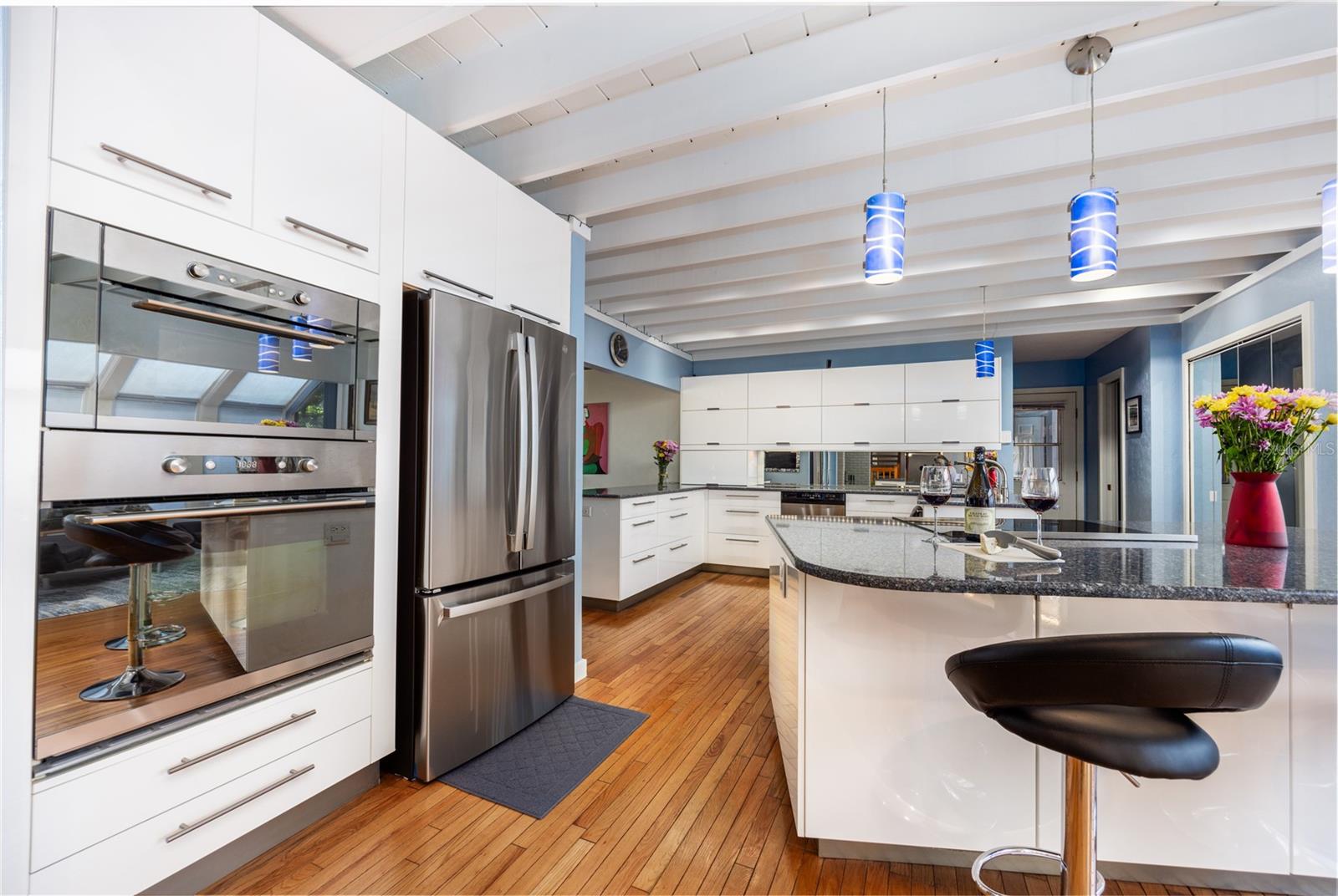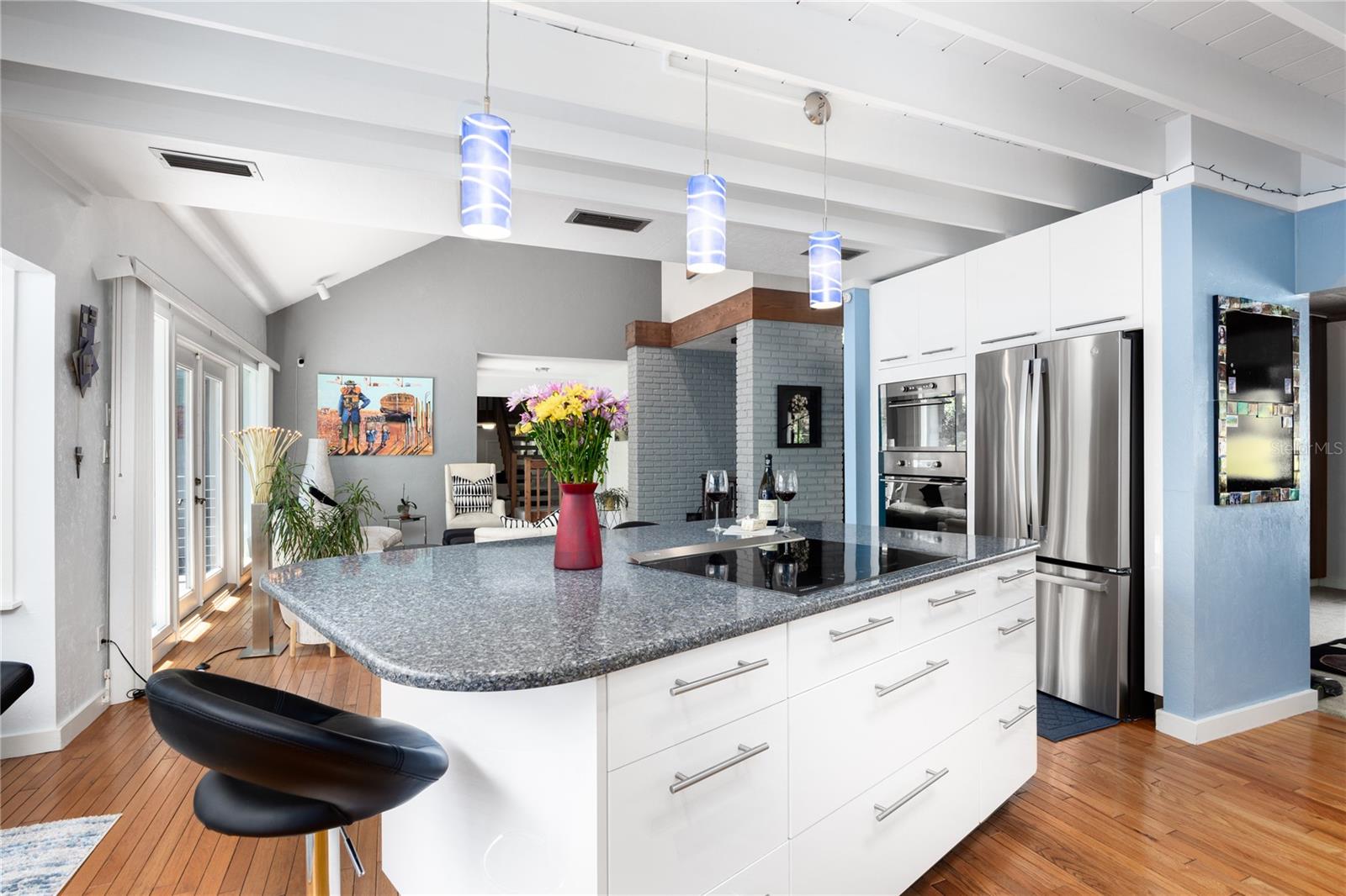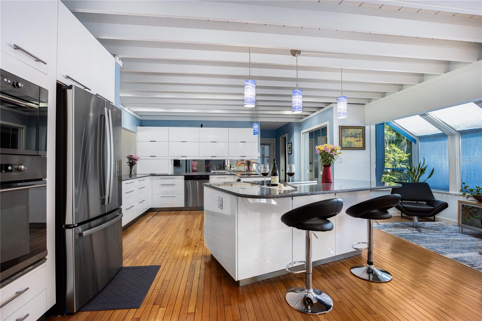 A incrível casa moderna escandinava que combina design minimalista, linhas elegantes e ainda permanece quente e convidativo. Este loft de 3 quartos e 2,5 banheiros, construído em 1981, teve apenas 3 proprietários. Mantido impecavelmente, você vai adorar a proximidade da Universidade da Flórida, Shands/UF Health, PK Younge e Downtown Gainesville. No entanto, sua localização no bairro faz desta casa um retiro tranquilo e pacífico em uma rua de beco sem saída. Caminhe para o parque de pântanos de Sweetwater nas proximidades e o Bivens Arm Nature Park. A partir da entrada frontal coberta, você entra no vestíbulo. A casa é dividida em asas vivas e adormecidas, com uma cozinha incrível de chef jogando no centro do palco. À sua esquerda, está a sala da família com tetos dramáticos altos, belos pisos de madeira de pinheiro, fogão a lenha queimando e margens de janelas para uma tonelada de luz natural. A sala da família está aberta para a cozinha moderna com bar de café da manhã, canto de café da manhã, balcões de quartzo, utensílios de aço inoxidável, cooktop de indução e amplo espaço de armazenamento. O recanto do café da manhã é perfeito para o seu café da manhã com uma parede de janelas do chão ao teto com vista para o convés e o lindo quintal. Logo fora da cozinha fica meio banheiro e uma lavanderia com lavadora e secadora, banheira de lavanderia e armários para armazenamento extra. Também está fora da cozinha, há um breezeway exibido que leva ao convés e ao grande carro de dois carros, garagem para entrada lateral. Há uma grande oficina e uma câmara escura, muito espaço se você precisava de um ADU ou da suíte de sogro anexado que a casa tenha vácuo central. O telhado é 2009. Dois sistemas HVAC. Dois sistemas sépticos. Aquecedor de água sem tanque para espaços de convivência e aquecedor de água separado para os quartos. Passe pela cozinha até uma área de jantar. Este espaço está aberto para a sala de estar com tetos altos e estantes embutidas. Há uma escada circular que leva a um espaço de loft cheio de luz natural com armazenamento embutido, afundar e é perfeito para um artista ou escritório em casa. De volta ao hall de entrada, se você virar à direita e subir as escadas, chegará à suíte primária. Este espaço muito grande com tetos altos possui um banheiro privativo que foi atualizado com armários de madeira, vaidade da pia dupla e bancadas em granito. Há um chuveiro separado e armário de água. Esta casa está absolutamente cheia de espaço de armazenamento e a suíte primária possui uma parede de armários com espaço para cômodas e prateleiras personalizadas. DoNDRAiras tem um espaço flexível com janelas de popa atualmente usadas para equipamentos de exercícios, mas pode ser facilmente uma estação de casa da área de estar de sogros. O primeiro quarto tem uma estante de livros embutida, iluminação atualizada e entrada separada para o deck de madeira traseira. Há um banheiro de Jack e Jill que os quartos compartilham com uma banheira/chuveiro e armário de água, mas cada quarto tem sua própria vaidade e pia. Chega de lutar pelo tempo do espelho! O segundo quarto de hóspedes também tem seu próprio acesso ao deck traseiro. O grande deck traseiro abrange a parte de trás da casa e atualizou as grades e foi expandido pelos atuais proprietários. A casa fica em um lote de grandes dimensões de 0,75 acres e é cercado. Há camas de legumes e um jardim de baixa manutenção. Sem HOA.