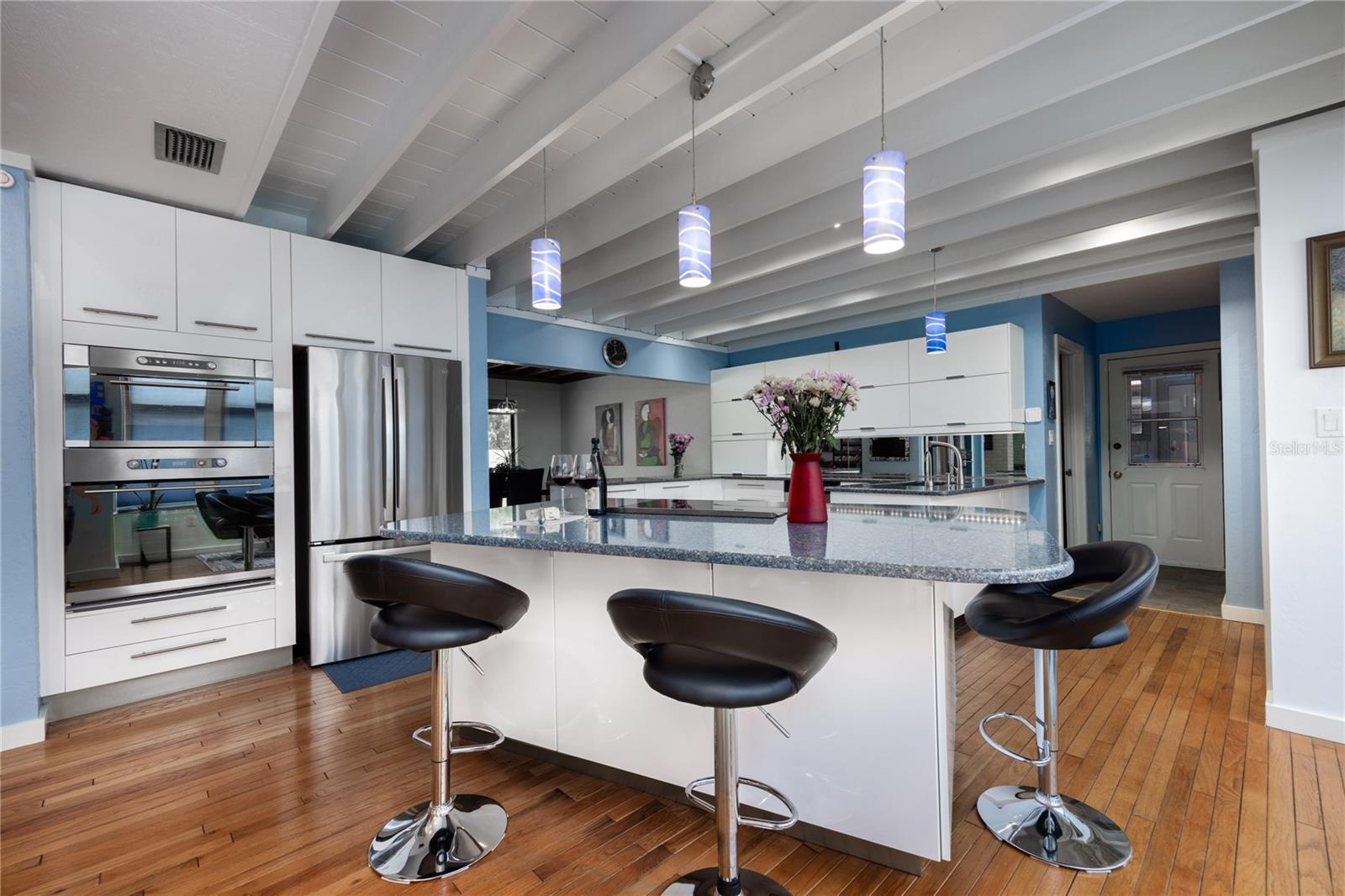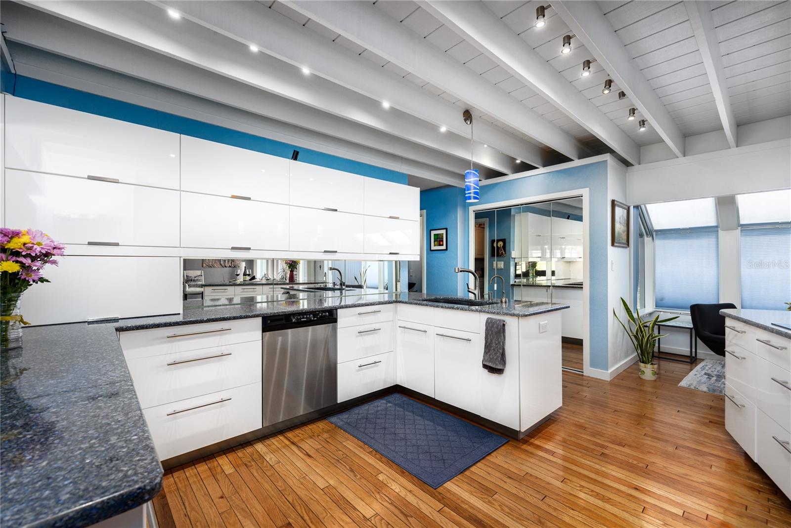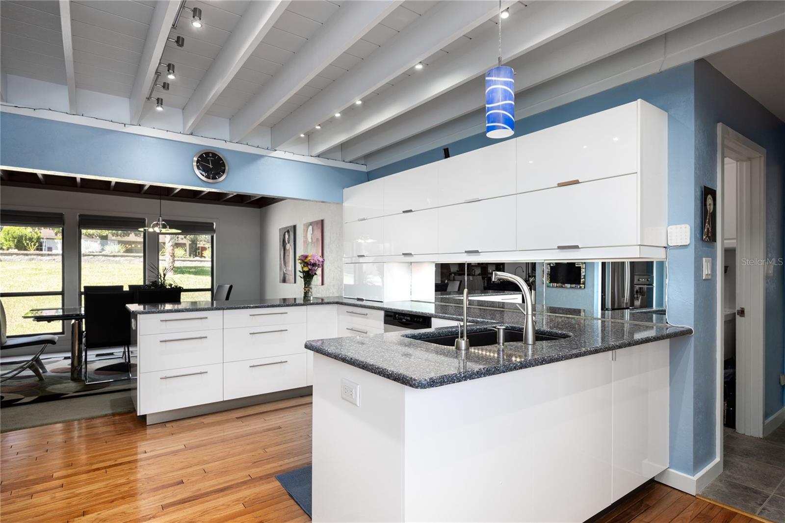 A incrível casa moderna escandinava que combina design minimalista, linhas elegantes e ainda permanece quente e convidativo. Este loft de 3 quartos e 2,5 banheiros, construído em 1981, teve apenas 3 proprietários. Mantido impecavelmente, você vai adorar a proximidade da Universidade da Flórida, Shands/UF Health, PK Younge e Downtown Gainesville. No entanto, sua localização no bairro faz desta casa um retiro tranquilo e pacífico em uma rua de beco sem saída. Caminhe para o parque de pântanos de Sweetwater nas proximidades e o Bivens Arm Nature Park. A partir da entrada frontal coberta, você entra no vestíbulo. A casa é dividida em asas vivas e adormecidas, com uma cozinha incrível de chef jogando no centro do palco. À sua esquerda, está a sala da família com tetos dramáticos altos, belos pisos de madeira de pinheiro, fogão a lenha queimando e margens de janelas para uma tonelada de luz natural. A sala da família está aberta para a cozinha moderna com bar de café da manhã, canto de café da manhã, balcões de quartzo, utensílios de aço inoxidável, cooktop de indução e amplo espaço de armazenamento. O recanto do café da manhã é perfeito para o seu café da manhã com uma parede de janelas do chão ao teto com vista para o convés e o lindo quintal. Logo fora da cozinha fica meio banheiro e uma lavanderia com lavadora e secadora, banheira de lavanderia e armários para armazenamento extra. Também está fora da cozinha, há um breezeway exibido que leva ao convés e ao grande carro de dois carros, garagem para entrada lateral. Há uma grande oficina e uma câmara escura, muito espaço se você precisava de um ADU ou da suíte de sogro anexado que a casa tenha vácuo central. O telhado é 2009. Dois sistemas HVAC. Dois sistemas sépticos. Aquecedor de água sem tanque para espaços de convivência e aquecedor de água separado para os quartos. Passe pela cozinha até uma área de jantar. Este espaço está aberto para a sala de estar com tetos altos e estantes embutidas. Há uma escada circular que leva a um espaço de loft cheio de luz natural com armazenamento embutido, afundar e é perfeito para um artista ou escritório em casa. De volta ao hall de entrada, se você virar à direita e subir as escadas, chegará à suíte primária. Este espaço muito grande com tetos altos possui um banheiro privativo que foi atualizado com armários de madeira, vaidade da pia dupla e bancadas em granito. Há um chuveiro separado e armário de água. Esta casa está absolutamente cheia de espaço de armazenamento e a suíte primária possui uma parede de armários com espaço para cômodas e prateleiras personalizadas. DoNDRAiras tem um espaço flexível com janelas de popa atualmente usadas para equipamentos de exercícios, mas pode ser facilmente uma estação de casa da área de estar de sogros. O primeiro quarto tem uma estante de livros embutida, iluminação atualizada e entrada separada para o deck de madeira traseira. Há um banheiro de Jack e Jill que os quartos compartilham com uma banheira/chuveiro e armário de água, mas cada quarto tem sua própria vaidade e pia. Chega de lutar pelo tempo do espelho! O segundo quarto de hóspedes também tem seu próprio acesso ao deck traseiro. O grande deck traseiro abrange a parte de trás da casa e atualizou as grades e foi expandido pelos atuais proprietários. A casa fica em um lote de grandes dimensões de 0,75 acres e é cercado. Há camas de legumes e um jardim de baixa manutenção. Sem HOA.