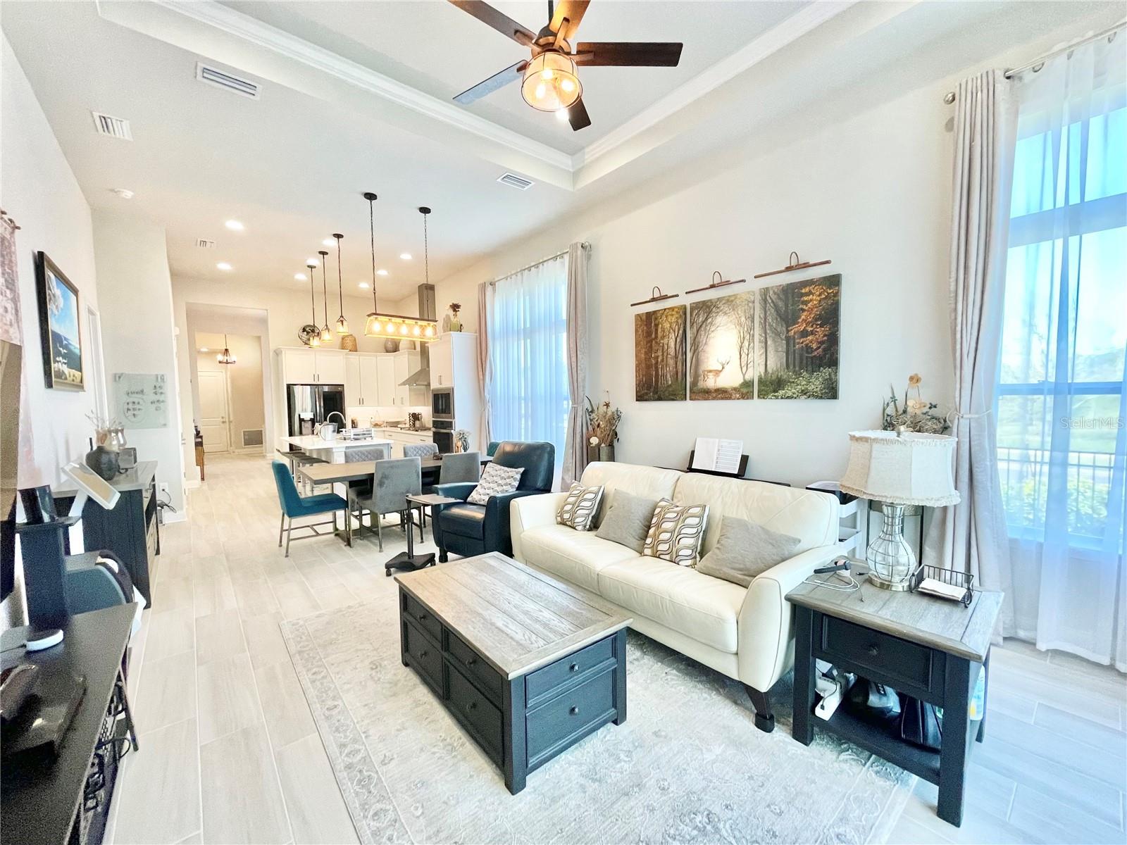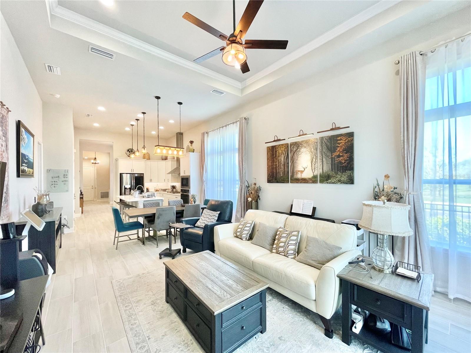 Esta imaculada casa de 4 quartos e 2 banheiros em Oakmont oferece um lote de canto premium e recursos impressionantes por toda parte. Construído em 2023, ele possui detalhes atualizados, como tetos altos de 10 a 12 pés, portas de 8 pés, moldagem por coroa e acabamento. As áreas de estar apresentam ladrilhos elegantes de aparência de madeira, enquanto os quartos são acarpetados para conforto. A cozinha gourmet foi projetada para função e estilo, com um layout aberto, grandes assentos da ilha para quatro e acabamentos de ponta, como bancadas de quartzo, uma cozinheira a gás de 5 queimadores, forno/torre de microondas, capuz de aço inoxidável, backsplash de ladrilhos, despensa e gabinetes de pilotos brancos abundantes. As vantagens adicionais incluem uma varanda coberta traseira, varanda da frente, uma lavanderia interna e um aquecedor de água sem tanque para obter a melhor conveniência. A garagem de 2 carros fornece espaço de armazenamento extra. Situado em um lote de canto cercado, esta casa oferece privacidade e amplo espaço ao ar livre. Projetado com o Plano Moderno Capri-Coastal da ICI Homes, esta casa faz parte de uma comunidade com comodidades de última geração, incluindo uma piscina, clube com sala de reuniões e cozinha, fitness center, tênis, pickleball, vôlei de praia e quadras de basquete, além de trilhas para caminhadas de milhas, trilhas para a natureza e um torno de 46 acres de torno de torno. Um lugar verdadeiramente excepcional para chamar de lar! Home Faces West.