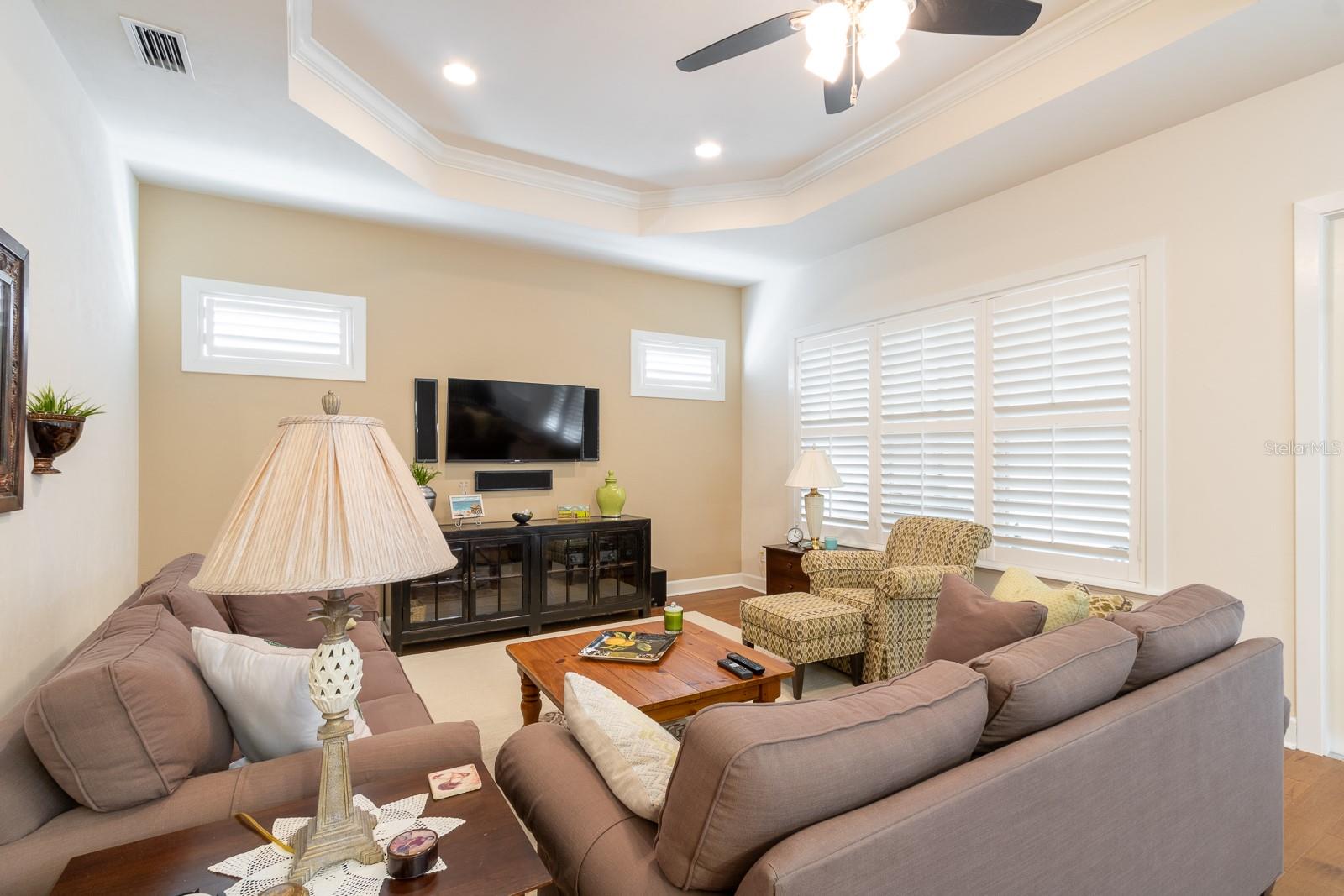 Entre em luxo e conforto nesta casa lindamente projetada, onde acabamentos sofisticados e detalhes atenciosos criam um retiro convidativo. Tetos elegantes de alojamento de alojamento adicionam charme arquitetônico, enquanto o piso de madeira rico flui perfeitamente por todos os espaços, aumentando o calor e a sofisticação. A cozinha gourmet é um destaque com seu backsplash de ladrilhos de vidro de estilo de metrô, com utensílios de aço inoxidável, uma despensa e amplo espaço para o preparo de refeições. A suíte primária é um santuário privado com um banheiro privativo do tipo spa e um espaçoso closet. Os banheiros são atualizados com ladrilhos de grife, adicionando um toque de elegância moderna. As portas francesas levam a um lanai coberto e exibido, perfeito para relaxamento ao ar livre e entretenimento em qualquer estação. A esgrima mantida no HOA garante um quintal bem conservado e privado, ideal para animais de estimação ou prazer silencioso. Em toda a casa, as persianas de plantações fornecem controle de estilo e luz, melhorando o apelo atemporal da casa. Não perca a chance de possuir esta propriedade requintada - schedule sua exibição hoje!