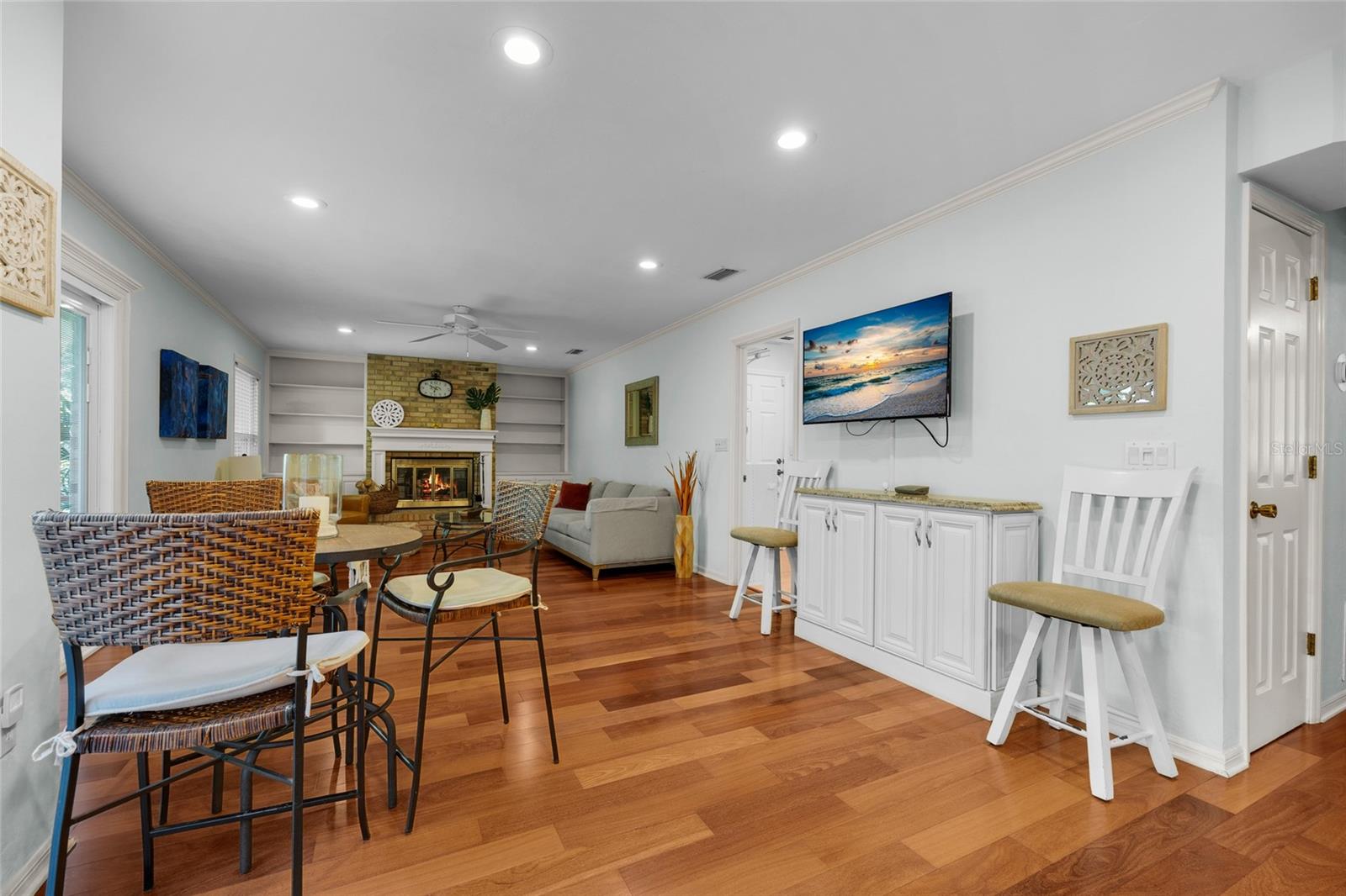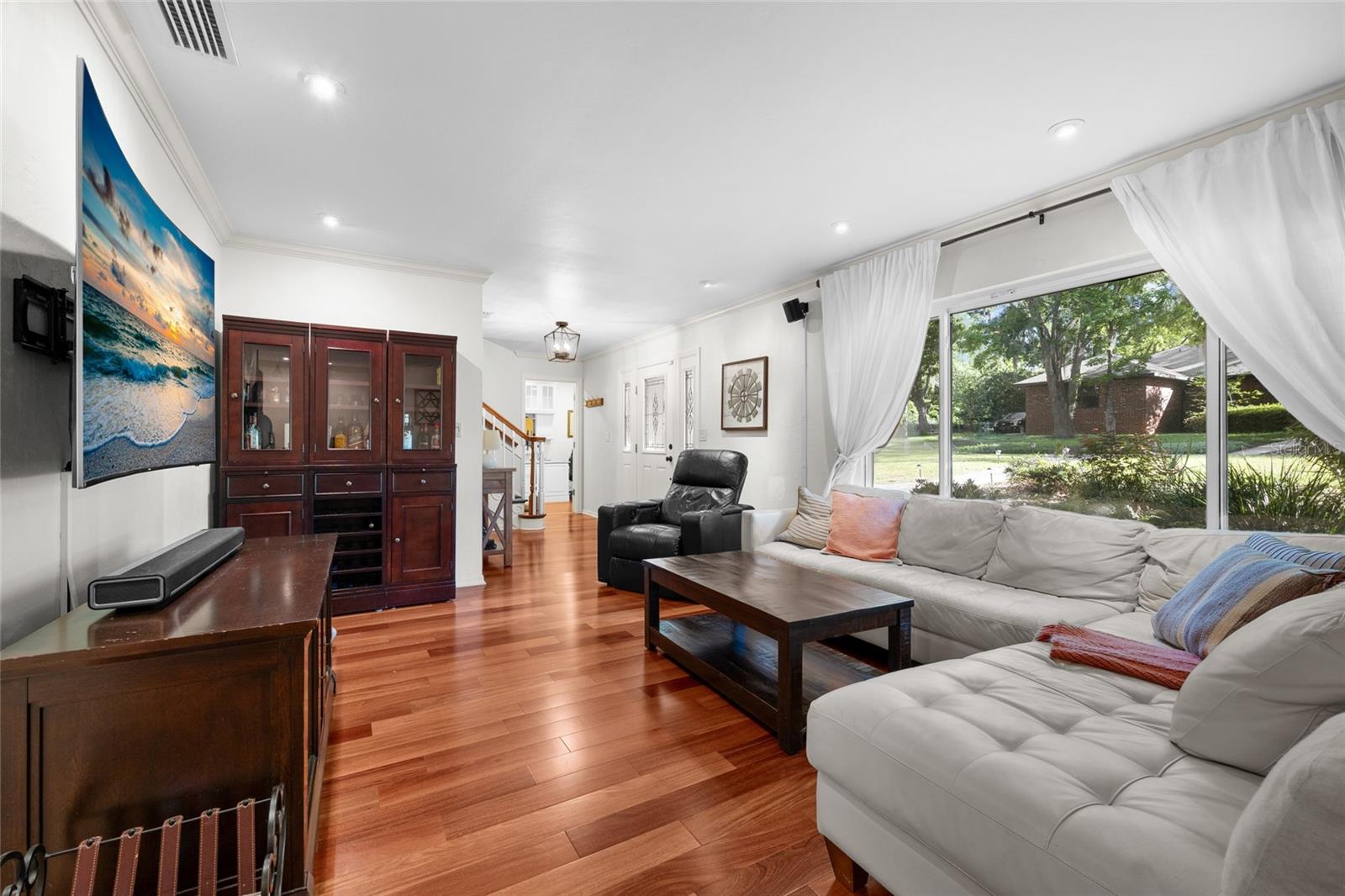 Uma ou mais fotos foram praticamente encenadas (incêndio mostrado na lareira). Entre em uma residência cuidadosamente reimaginada de dois andares, onde o design sofisticado encontra o charme do sul! Esta casa lindamente atualizada de 4 camas e 2,5 banheiros oferece vida refinada com pisos de madeira de teca, armários de madeira personalizados e janelas de grau de furacão que inundam os quartos com luz natural. A cozinha de comer é funcional e sofisticada, com bancadas em granito, utensílios de aço inoxidável, moldagem por coroa, ilha grande, onde as crianças podem fazer a lição de casa enquanto as refeições são preparadas e as portas de vidro deslizantes com vista para o espetacular quintal. Com duas áreas de estar espaçosas, uma com uma lareira a lenha de tijolos e o teto e uma elegante sala de jantar com moldagem por coroa e lambris, há espaço para o conforto diário e as reuniões especiais. Completando o andar de baixo é o estudo particular que é aprimorado por uma mesa com tampo de granito e embutidos do chão ao teto no estilo da cozinha. No andar de cima estão os quatro quartos espaçosos. Dois dos quartos têm portas francesas que levam à varanda com vista para o jardim da frente. A suíte primária inclui um closet. Tanto o banho principal quanto o banho de hóspedes são ricamente nomeados com detalhes de ponta, enquanto todos os armários do quarto apresentam sistemas embutidos personalizados, oferecendo soluções de armazenamento fáceis para membros da família e convidados. Do lado de fora, desfrute de um retiro tranquilo no quintal completo com uma cozinha ao ar livre, área de estar de pérgola, deck sol e uma variedade de árvores de frutas e flores. Recursos como armazenamento no sótão, sala de armazenamento, lavanderia com pia de utilidade, oficina de garagem fechada e carregador de carros elétricos fornecem conveniência adicional. Localizado em Country Club West, com uma taxa mínima opcional de HOA, a propriedade fica a 5 km da Universidade da Flórida, comemora Pointe, Butler Plaza, I-75 e uma abundância de opções de compras e restaurantes. Programe sua exibição particular e venha experimentar um estilo de vida definido pela elegância moderna e pela genuína hospitalidade do sul!