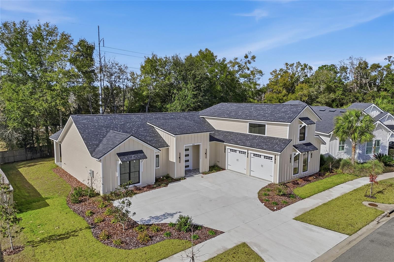 Bem-vindo ao epítome da vida luxuosa no procurado bairro de SW Gainesville, Gloria's Way! Esta deslumbrante residência de 5 quartos + escritório e 3,5 banheiros oferece 3.648 pés quadrados de espaço meticulosamente projetado em uma localização privilegiada em SW Gainesville. Entre para descobrir uma combinação perfeita de sofisticação e funcionalidade. As principais áreas de estar apresentam luxuosos pisos vinílicos, combinando durabilidade com estilo moderno. As janelas Pella Lifestyle superdimensionadas e modernas banham a casa com luz natural, criando um ambiente acolhedor e convidativo por toda parte. Para os entusiastas da culinária, a cozinha gourmet é a realização de um sonho. Equipado com eletrodomésticos LG de aço inoxidável de última geração, incluindo fogão a gás, geladeira, lava-louças e forno de parede com micro-ondas, cada refeição se torna uma alegria de preparar. Um enchimento de panelas montado na parede em preto escovado acrescenta elegância e praticidade. A cozinha é ainda mais elevada por armários de madeira real com detalhes em preto, bancadas de quartzo em tom claro e natural com detalhes em preto e um backsplash elegante. O banheiro privativo principal é um retiro privativo, com box amplo, banheira de imersão independente e acabamentos de design - o lugar perfeito para relaxar. O banheiro compartilhado do corredor possui pias duplas e piso elegante de porcelanato, garantindo estilo e funcionalidade. Em toda a casa, as torneiras Delta com detalhes em preto e um pacote completo de encanamentos Delta adicionam um toque coeso de luxo. Esta planta baixa oferece flexibilidade e versatilidade, com uma suíte de hóspedes completa na entrada para maior comodidade. O 5º quarto e o escritório, localizados acima da garagem, proporcionam espaço adicional adaptado às suas necessidades. Experimente artesanato incomparável e design atemporal nesta excepcional casa Gloria's Way, onde cada detalhe foi cuidadosamente selecionado para superar as expectativas e elevar seu estilo de vida.