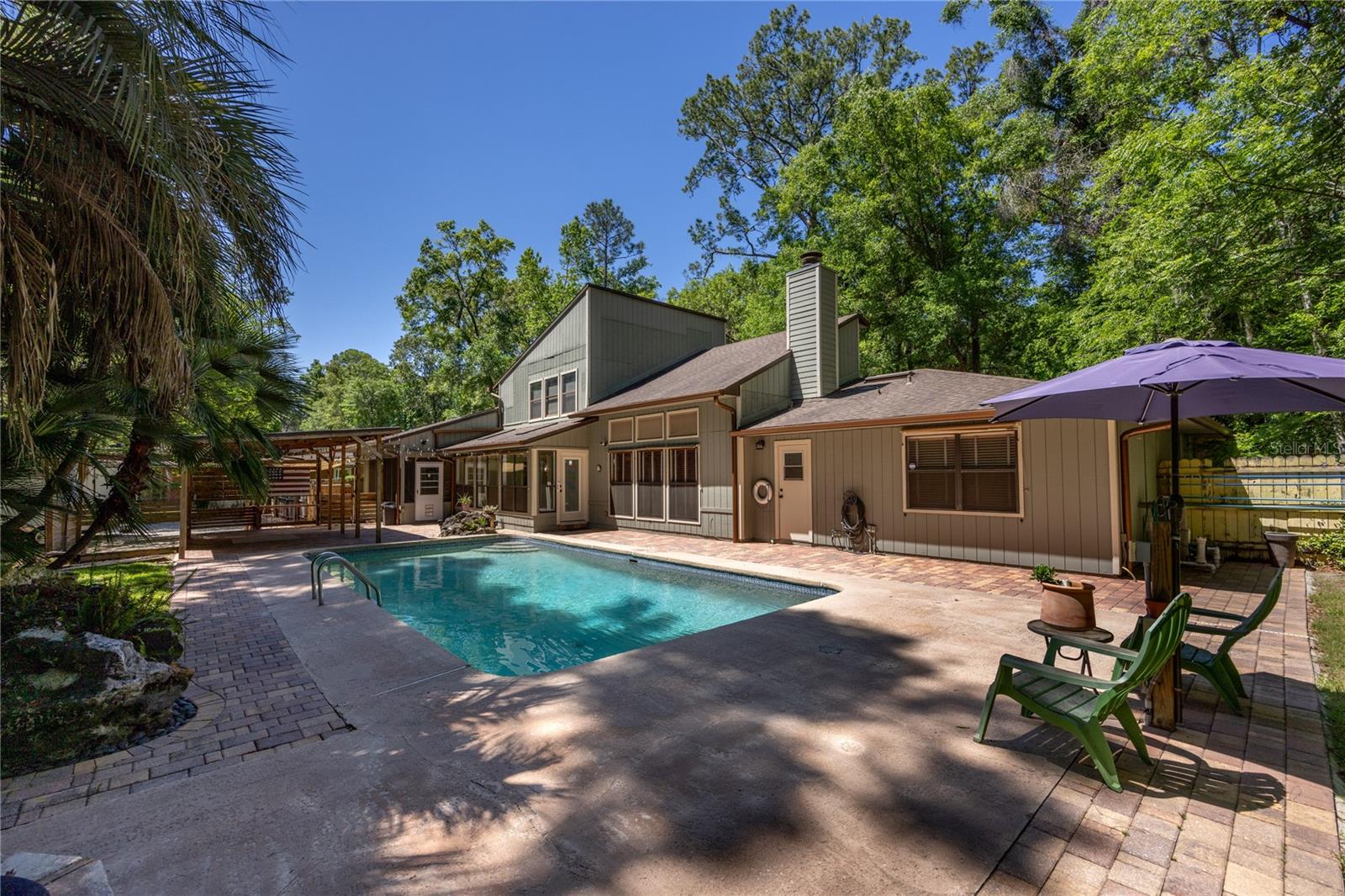 Experimente a vida multigeracional e o divertido no seu melhor. Procurando uma casa que se adapte a um estilo de vida multigeracional ou hospeda convidados frequentes com facilidade? Esta jóia 5BR/3BA em SW Gainesville é perfeita para você! Apresentando uma casa principal espaçosa com uma suíte de sogro 1BR/1BA, completa com uma entrada privada e varanda examinada, esta propriedade foi projetada para flexibilidade e conforto. A sala possui tetos deslumbrantes da catedral e uma lareira de madeira aconchegante, enquanto espaços adicionais incluem um Den/Study, uma sala de estar/flexível formal e uma sala de jantar aberta com uma parede de janelas que enche o espaço com luz natural e oferece vistas pitorescas. A cozinha remodelada (2018) oferece atualizações e funcionalidades modernas, enquanto a conveniência de uma lavanderia interna com uma pia aumenta a praticidade da casa. O telhado foi substituído em 2019 por adicional de paz de espírito. O espaço ao ar livre é um verdadeiro paraíso, com uma grande piscina aberta, uma área de estar coberta para entretenimento e uma amiga acolhedora. Os recursos de bônus incluem um galpão de caverna/workshop de 12x24 de tamanho grande com energia, um galpão de armazenamento de 10x12 adicional e uma garagem de dois carros de grandes dimensões perfeita para veículos e armazenamento extra. Situado em um espaçoso lote de 0,67 acres, há muito espaço para relaxar e brincar. Com 2.827 pés quadrados de espaço de estar, esta casa irradia a vida na Flórida e tem preços perfeitamente. Não perca a chance de tornar essa propriedade incrível a sua!