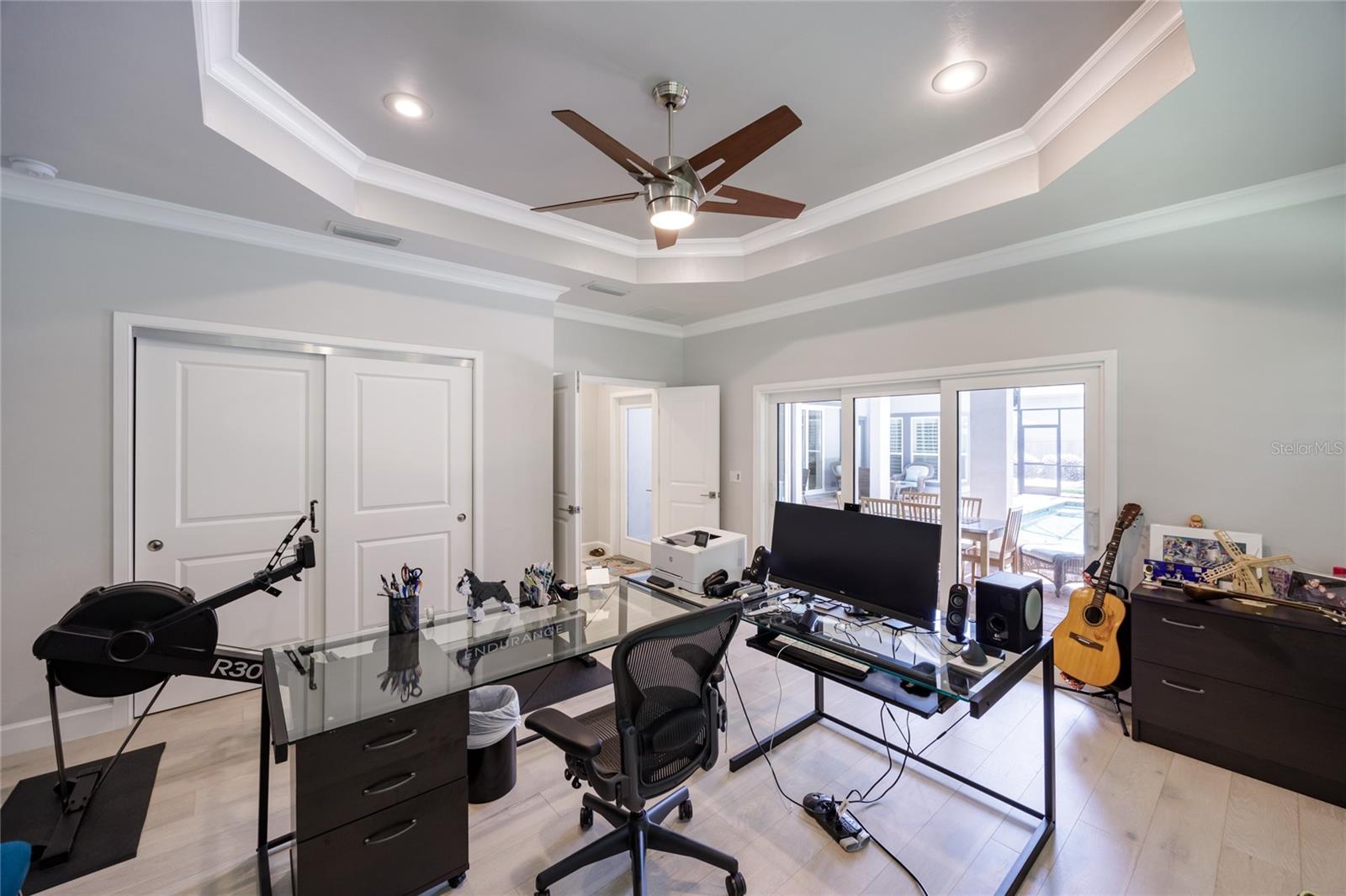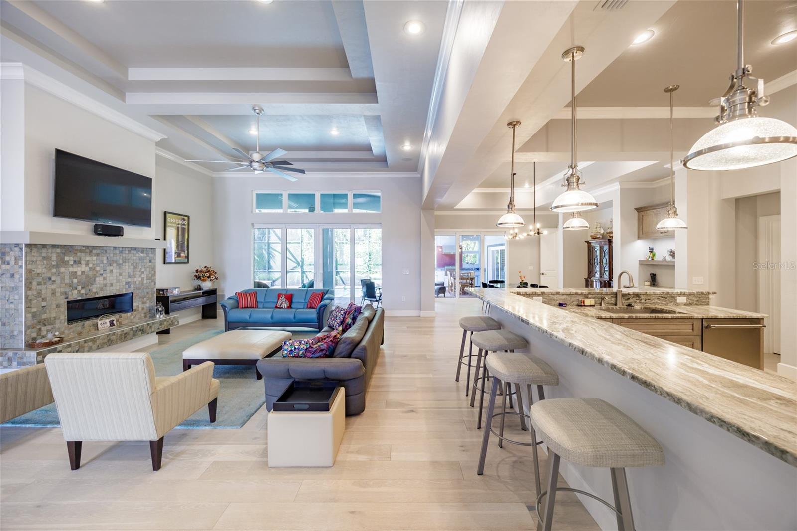 A elegância é abundante nessa casa de piscina executiva de 4 banheiros de 5 quartos personalizada na Plantation de Estates de Wilds. Uma ampla passagem de pavimentadoras leva às portas de entrada de vidro duplo de grandes dimensões que se abrem para o vestíbulo. A grande sala possui tetos de trey, molduras da coroa, iluminação de lata de coroa, uma grande lareira e portas de vidro deslizantes que permitem acesso total à área de piscina exibida. A grande cozinha aberta é uma delícia de chef, com armários de madeira e bancadas de granito. Uma grande ilha central e uma barra de café da manhã envolvida com oito anos, oferecem espaço abundante para preparação de refeições e refeições casuais. Gavetas profundas e prateleiras de extração fornecem amplo armazenamento para pratos, utensílios, panelas e panelas. A geladeira/freezer de aço inoxidável, fornos de parede dupla, 5 fogão a gás, lava-louças e microondas são todos os aparelhos Thermador. Uma alcova, adjacente à área de jantar, possui uma geladeira de vinho e armazenamento para suprimentos de barra. A casa possui um plano de divisão de três vias, fornecendo a máxima privacidade para membros da família e convidados durante a noite. A suíte do proprietário possui dois armários de tamanho grande, com prateleiras e gavetas embutidas. Há também uma alcova com espaço para um assento de amor, uma mesa de escrita ou equipamento de exercício. O luxuoso banheiro tem vaidades duplas, um grande chuveiro com várias cabeças de chuveiro e uma banheira de imersão convidativa. O segundo e o terceiro quartos compartilham um banheiro, assim como o quarto e o quinto quartos. O quinto quarto também pode ser uma sala de jogos ou um grande escritório em casa. Um estudo particular é acessado através de portas francesas perto da frente da casa e fica ao lado de um banheiro de hóspedes. A sala de serviços públicos possui uma parede inteira de balcões e armários, uma pia de roupa, tábua de passar a ferro e uma lavadora e secadora de hidromassagem. Há uma "área de gota" para jaquetas, mochilas e equipamentos esportivos enquanto você se aproxima da garagem de 3 carros. Um luxo tranquilo é abundante na área da piscina, com uma cozinha ao ar livre, completa com pia de geladeira e churrasqueira a gás e um espaço coberto para relaxar e jantar. As pavimentadoras do pátio cercam a banheira de hidromassagem e a piscina, que possui um "gerador atual" que permite nadar no lugar. A casa é cercada por paisagismo exuberante, com muitas árvores e arbustos com flores e uma densa tela de vegetação ao longo da parte traseira da propriedade. A Plantation das Propriedades da Wilds fica a poucos minutos das compras e da Escola Primária Lawton Chiles, e convenientemente localizada no Centro Médico Regional do Norte da Flórida, na Universidade da Flórida e no UF Medical Center.