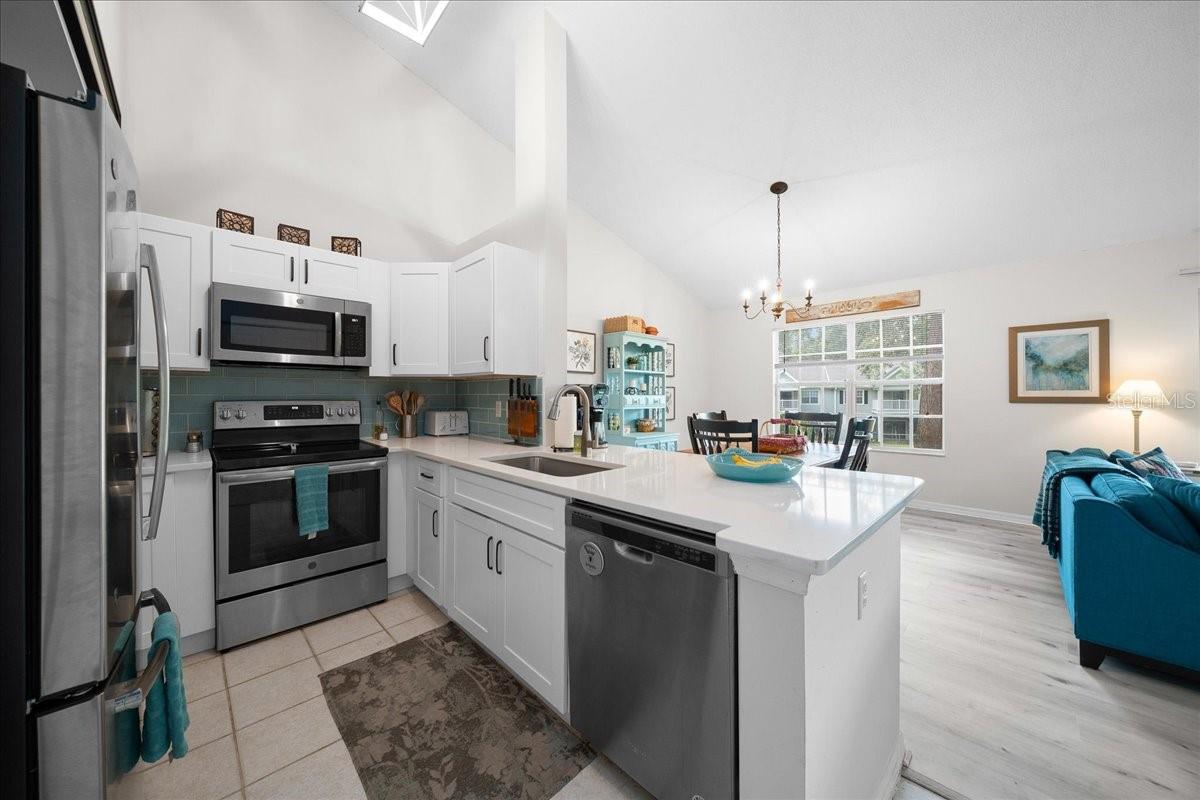 Condomínio pacífico 2BR/2BA nos links da Haile Plantation Descubra conforto, charme e comunidade neste condomínio lindamente atualizado de 2 quartos e 2 banheiros, localizado nos links, aninhado na comunidade de campo de golfe da Haile Plantation. A vida no andar de cima começa com uma abundância de luz natural de grandes janelas, tetos altos e uma espaçosa planta aberta. A cozinha totalmente renovada apresenta bancadas de granito e flui para as áreas de estar e jantar, criando um espaço convidativo para noites tranquilas e divertidas. Saia na varanda dos fundos para desfrutar de vistas serenas do espaço verde central e da água natural - um local ideal para café da manhã ou noites tranquilas. Os destaques adicionais incluem: novo manipulador de ar A/C & Air (2023), planta baixa dividida para privacidade, armários espaçosos, recanto de escritório designado e lavanderia interior. Os Links oferecem comodidades no estilo resort, incluindo uma piscina, academia atualizada, clube e acesso aos caminhadas cênicas de Haile. Os moradores também adoram o centro da vila nas proximidades, onde você encontrará lojas locais, restaurantes e o popular mercado semanal de agricultores. Com as escolas de primeira linha, as ruas amigas do carrinho de golfe e um forte senso de segurança e silencioso, esta casa oferece o estilo de vida ideal da Flórida. Esteja você se estabelecendo ou simplificando a vida, este condomínio pronto para se mover é o lugar perfeito para chamar de lar.