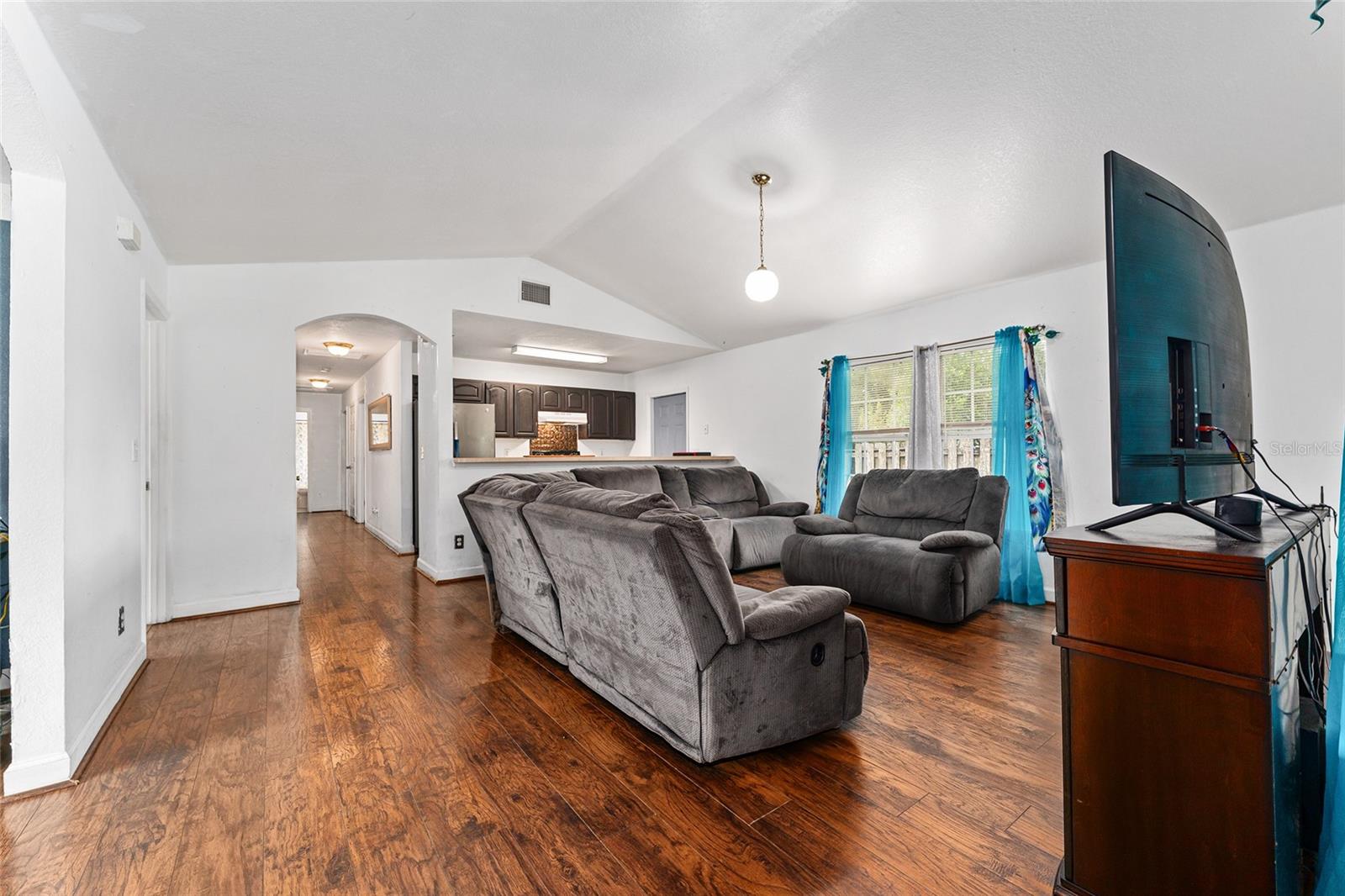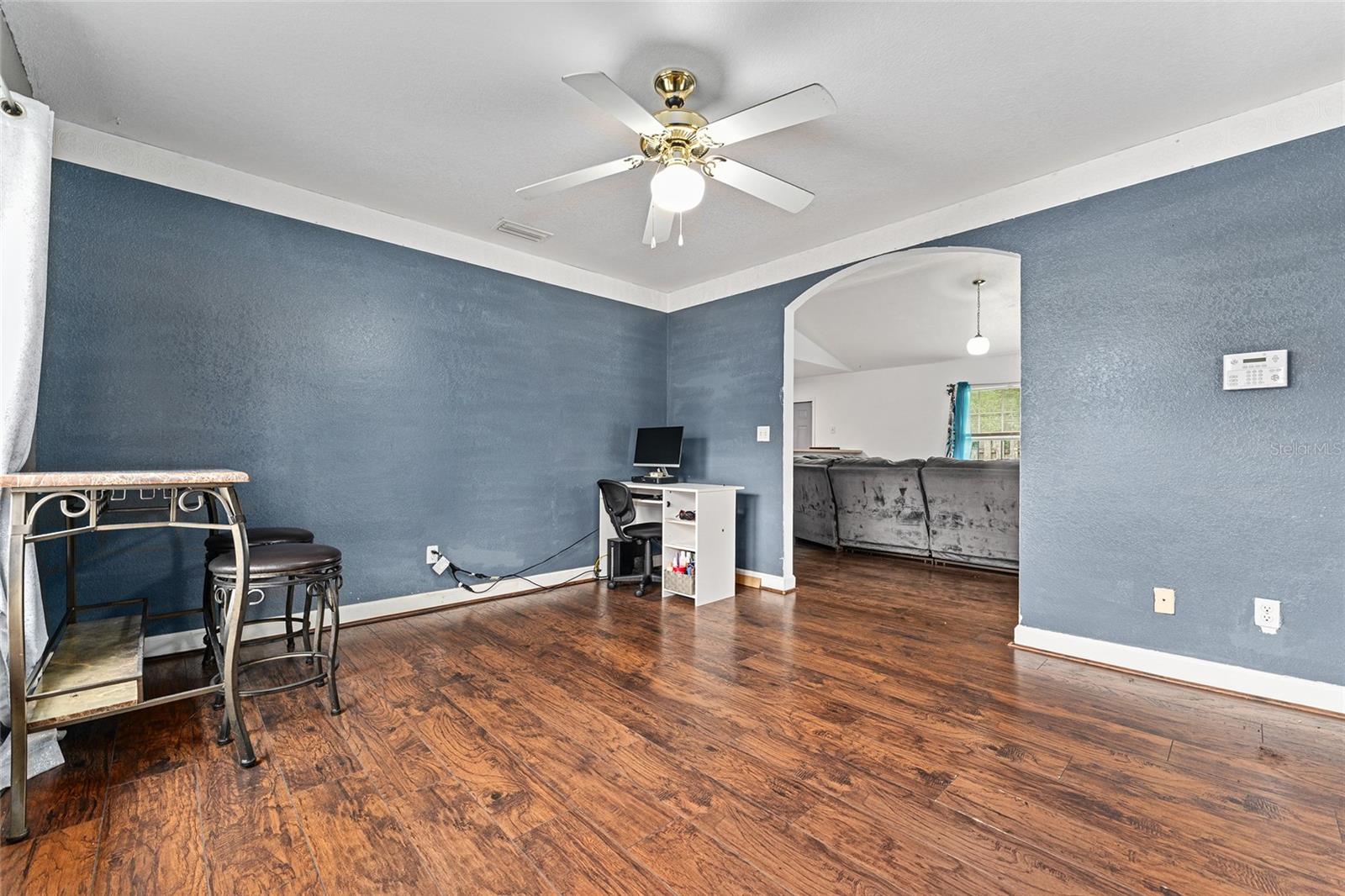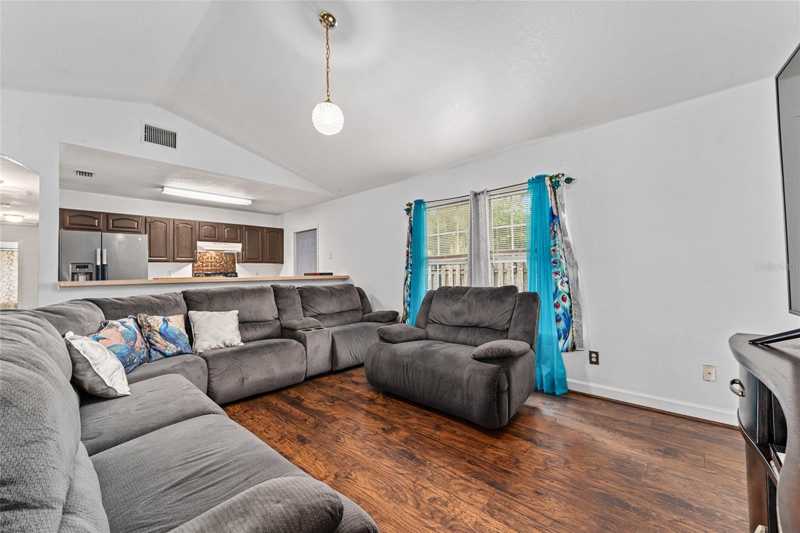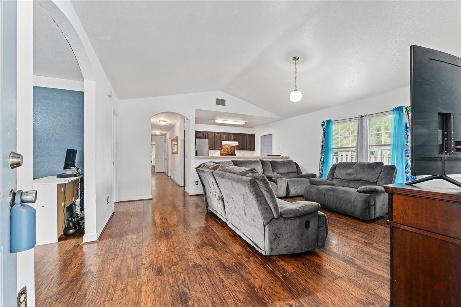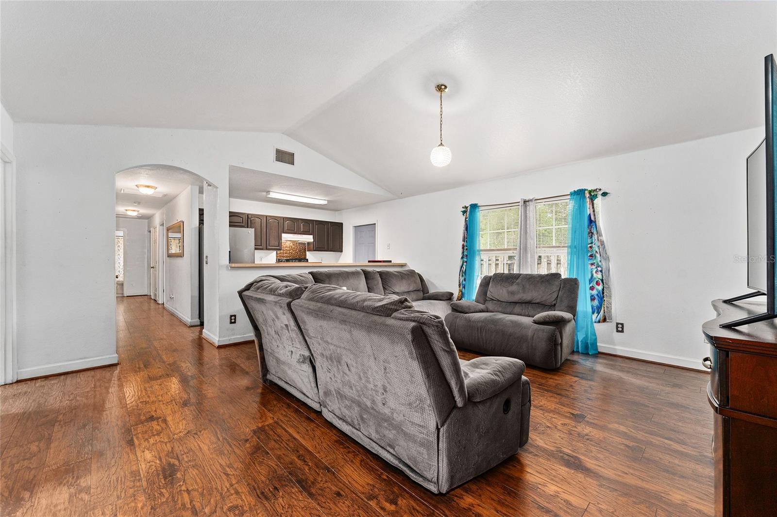 Esta encantadora casa, construída em 2008, oferece um layout espaçoso e convidativo com quatro quartos e dois banheiros. Entre para encontrar tetos abobadados e piso laminado de madeira que flui pelas áreas de estar e à cozinha, acrescentando calor e caráter. A grande sala de estar oferece muito espaço para relaxar ou divertir, enquanto a varanda da frente é perfeita para desfrutar de manhãs tranquilas ou brisas da noite. De volta, um quintal totalmente cercado oferece privacidade e espaço para brincar ou jardim. Convenientemente localizado a apenas cinco quilômetros da Universidade da Flórida e perto dos vibrantes restaurantes e lojas do centro de Gainesville, esta casa combina conforto, estilo e acessibilidade em um pacote ideal.