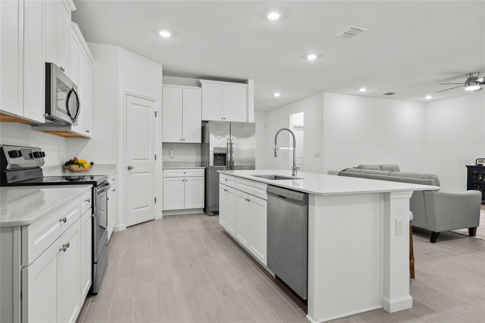 Entre nessa casa quase nova, aninhada na comunidade conveniente de Tara Lane. Com 4 quartos e 3 banheiros com mais de 2000 pés quadrados, esta casa espaçosa é preparada para ocupação imediata, misturando perfeitamente a elegância contemporânea com a tranquilidade da vida suburbana. A planta baixa aberta é leve e brilhante, com pisos de tábua de ladrilhos em tonificação cinza de baixa manutenção nas principais áreas de estar. A cozinha possui bancadas de quartzo, utensílios de aço inoxidável, grande ilha funcional, com saliência, fornecendo assentos adicionais e despensa para todas as suas necessidades culinárias. Projetado para facilitar e confortar o layout fornece uma transição perfeita da cozinha para a área de jantar designada de grandes dimensões e uma sala grande, com todas as vistas do quintal. Além disso, o primeiro andar possui um banheiro completo com vaidade de quartzo e combinação de banheira/chuveiro e o quarto quarto com armário de parede. Retire-se para a suíte primária com grande closet e banheiro privativo, exibindo um grande chuveiro fechado de vidro com janela de popa, vaidade de quartzo dual, armário de linho e armário de água. Segundo e terceiro quartos com armários walk-in flanquear o banheiro Jack-n-jill com vaidade dupla de quartzo e combinação de banheira/chuveiro. Convenientemente localizado no segundo andar, a lavanderia com lavadora/secadora e armário de linho de corredor de grandes dimensões. Múltiplos armários durante todo o fornecimento de armazenamento adicional. A porta de vidro da área de estar e cozinha principal leva a lanai, estendendo o espaço ao ar livre. Backyard exuberante, garagem de 2 carros com saída de EV, a comunidade oferece estacionamento adicional de hóspedes e caminho de caminhada. Localização privilegiada vivendo com a uma curta distância das escolas de ensino fundamental e médio, minutos do Santa Fe College e I-75, traje fácil para a UF, shands, supermercado, compras, entretenimento e refeições.