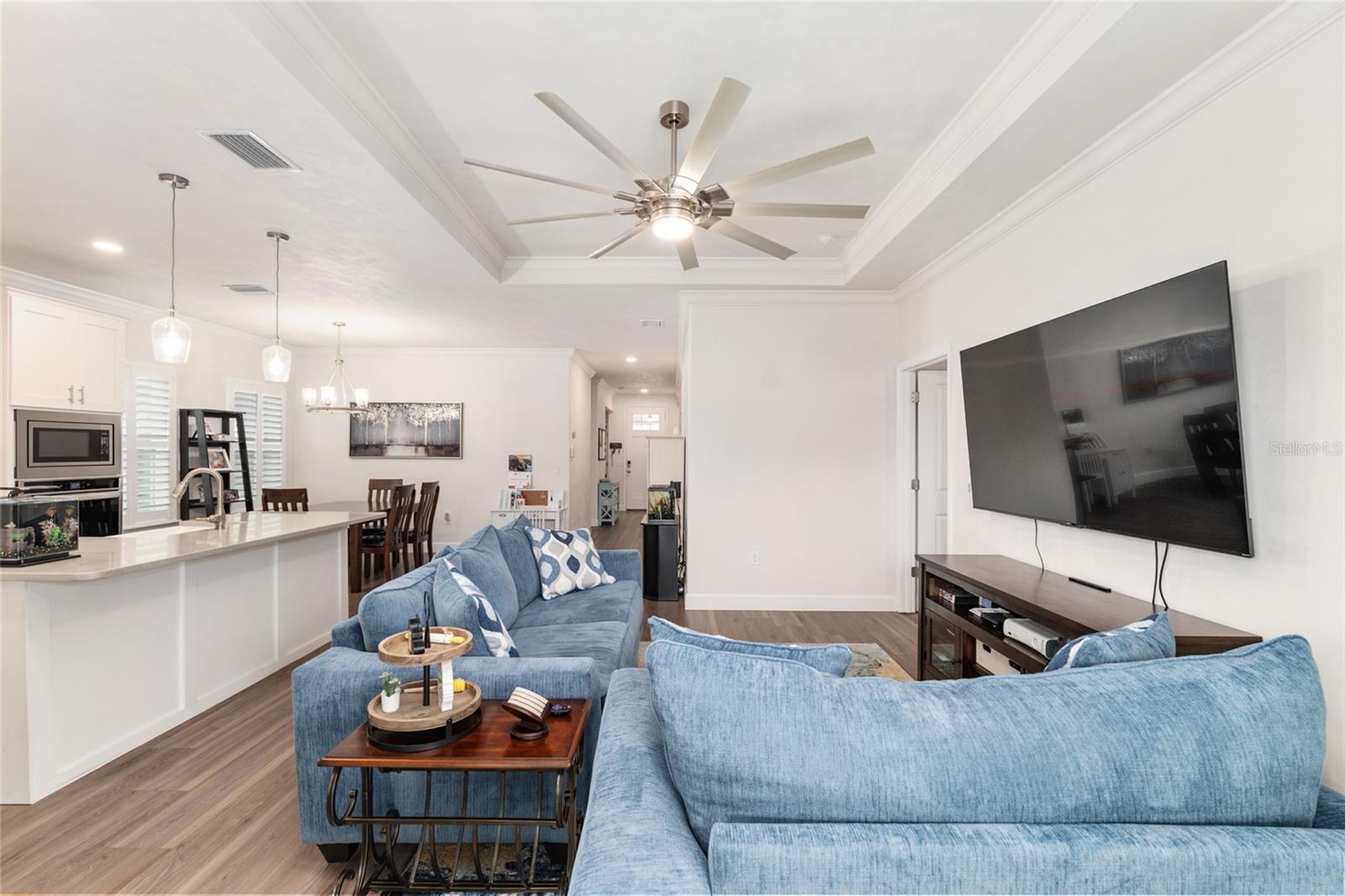 O conforto elegante encontra o luxo inteligente em Grand Oaks! Construído em 2022, este impressionante Hayleigh II Plan da Weseman Homes & Renovations oferece artesanato moderno, atualizações cuidadosas e um toque de luxo - tudo no coração da procurada comunidade de Grand Oaks em SW Gainesville. Aproveite a conveniência de uma piscina, playground e pavilhão coberto a poucos minutos da UF, UF Health, Celebration Pointe e Butler Plaza.Esta casa de 4 quartos e 2,5 banheiros possui 1.871 pés quadrados de área de estar bem projetada, sem carpete, luxuoso piso de pranchas de vinil e azulejos de cerâmica por toda parte. O convidativo layout aberto é repleto de luz natural, tetos de 2,7 metros e detalhes de bandejas com sancas na área de estar e na suíte do proprietário. A cozinha do chef impressiona com armários de madeira com fechamento suave em estilo shaker, bancadas de quartzo, backsplash de azulejos e eletrodomésticos de aço inoxidável, incluindo fogão a gás, combinação de forno de parede/micro-ondas e uma geladeira inteligente Samsung Bespoke de 4 portas em Morning Blue & Vidro Branco. A sala de estar flui facilmente para uma grande varanda coberta de 17,4 pés x 10 pés com vista para um quintal privado totalmente cercado com grama zoysia exuberante e canteiros coloridos - perfeito para entretenimento ou relaxamento ao ar livre. O espaçoso retiro do proprietário parece um spa privado com pia dupla com gavetas profundas, um amplo box amplo com chuveiros duplos, um vaso sanitário privativo e um amplo closet com sistema de organização de madeira personalizado. Cada detalhe agrega conforto e sofisticação: venezianas de madeira personalizadas, banco de barro decorativo, sistema closetmaid em um dos quartos e despensa/armário de roupa extra para arrumação inteligente. Os recursos de eficiência energética do proprietário incluem 15 SEER HVAC, janelas de vinil Low-E, isolamento de sótão R31, paredes R13, barreira de calor radiante e aquecedor de água sem tanque a gás. O apelo do meio-fio da casa brilha com revestimento Hardiboard, detalhes em tábuas e sarrafos, acabamentos em pedra e portas de garagem estilo carruagem de 2,5 metros para a garagem para 2 carros. O RARO sistema de irrigação frontal, lateral e traseiro e a varanda frontal coberta completam esta bela casa pronta para morar. Experimente a vida moderna com qualidade duradoura – uma rara combinação de conforto, luxo e localização em Grand Oaks.