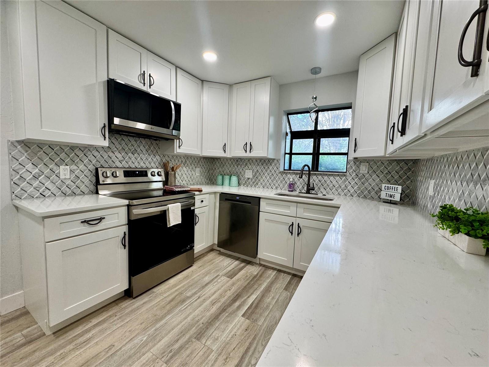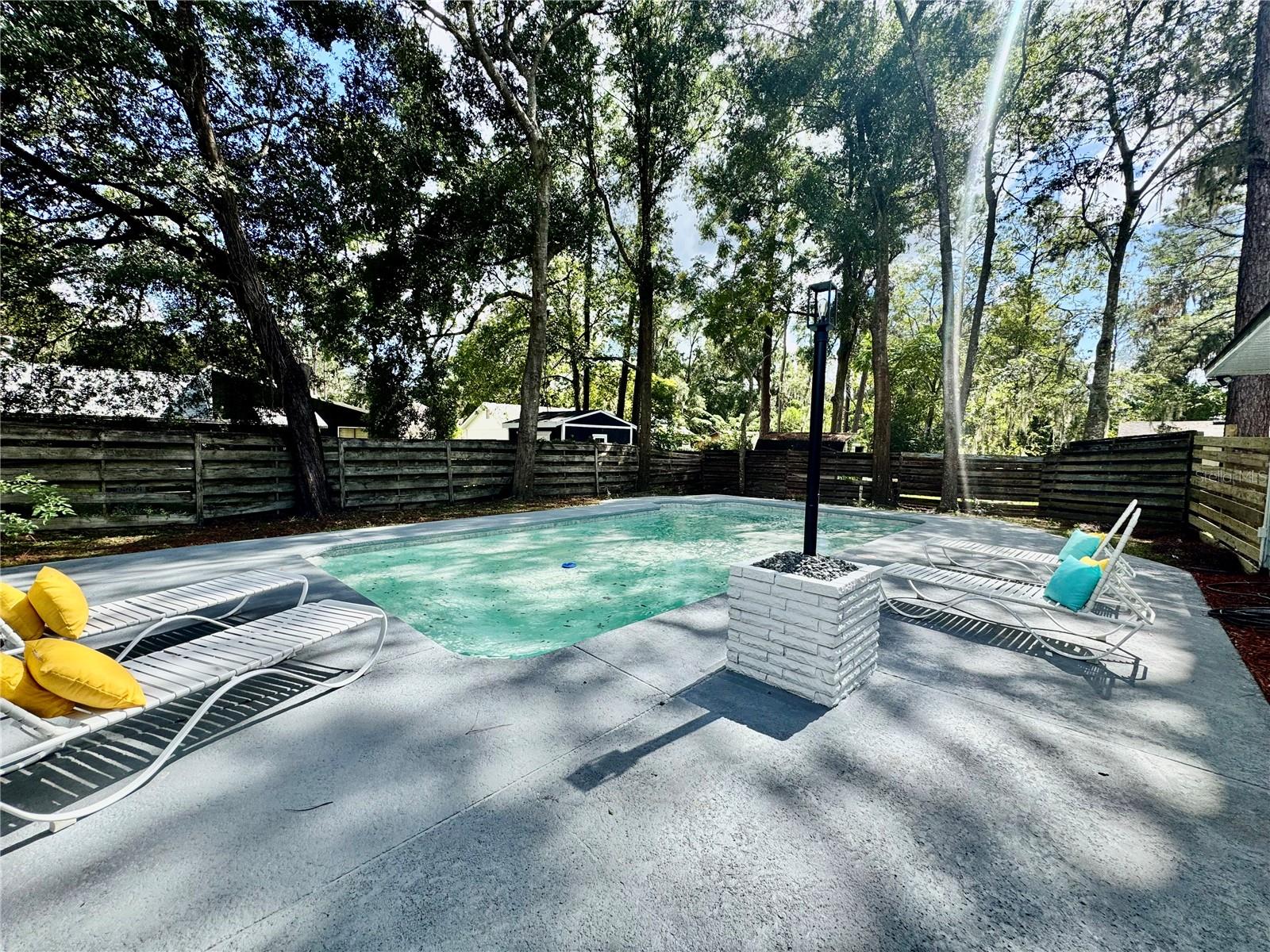 Esta casa com piscina totalmente atualizada oferece estilo e conveniência de uma excelente localização em SW Gainesville. Entre para descobrir uma casa totalmente remodelada com piso LVP, iluminação atualizada, nova porta frontal e deslizante de vidro, pintura interna e externa, novo portão de garagem, telhado (2021) e HVAC (2019). Ao entrar na casa, você encontrará uma espaçosa combinação de sala de estar e jantar com tetos abobadados, luz natural abundante e lindos embutidos ao redor de uma nova lareira com vários ambientes, bem como azulejos de vidro sofisticados. A cozinha tem novos armários shaker, backsplash de azulejos, bancadas de quartzo e eletrodomésticos de aço inoxidável. A suíte principal é espaçosa com closet e acesso à piscina subterrânea. O banheiro principal foi totalmente atualizado com uma nova penteadeira, iluminação aprimorada e um chuveiro tipo spa com porta de box sem moldura. O banheiro de hóspedes possui pias duplas para maior comodidade, azulejos novos e iluminação. Saia para sua piscina recém-reformada (2025) com o novo equipamento de piscina - perfeito para relaxar ou se divertir, com muito espaço para ainda correr no quintal. Esta casa pronta para morar oferece a paz de uma casa pronta para morar, a conveniência de SW Gainesville e a diversão de sua piscina pessoal. O proprietário é um agente imobiliário licenciado no estado da Flórida.