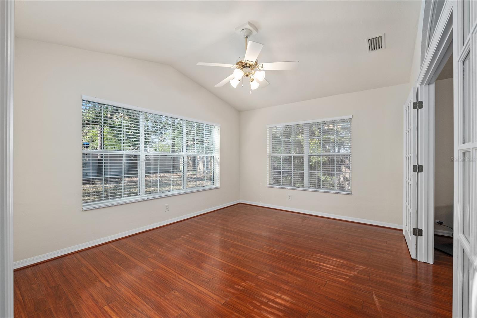 Desfrute de uma vida de baixa manutenção em Vista Palms em Mile Run nesta espaçosa casa de 3 quartos e 2 banheiros com uma sala de bônus flexível e um dos maiores lotes do bairro. O layout oferece abertura e privacidade, com quartos de hóspedes e banheiro completo posicionados perto da frente da casa e a suíte principal escondida no lado oposto. Um dos quartos da frente possui portas francesas duplas, tornando-o um ajuste natural para um escritório doméstico, sala de artesanato ou escritório. A área de estar principal é iluminada e confortável, com tetos abobadados, piso Pergo e um fluxo fácil entre os espaços de estar, jantar e cozinha. Uma lareira independente a gás natural adiciona calor e personalidade à sala de estar e serve como um ponto focal aconchegante para o espaço, enquanto as portas francesas levam a uma sala bônus na Flórida que pode ser fechada para espaço de trabalho adicional, uma sala de leitura ou um retiro tranquilo. A cozinha foi atualizada com armários de 42 polegadas, eletrodomésticos de aço inoxidável e balcões de superfície sólida, e possui uma copa com vista para o quintal. Grandes janelas trazem luz natural e dão à casa uma sensação aberta e arejada. A suíte principal inclui carpete novo, closet e banheiro privativo com pias duplas, banheira de hidromassagem e chuveiro separado. Uma lavanderia interna com lavadora e secadora agrega comodidade, e a garagem para dois carros oferece bancada de trabalho e armazenamento extra. Nos fundos, o pátio aberto dá para um quintal de tamanho generoso com árvores maduras e espaço para relaxar ou se divertir. Os residentes de Vista Palms desfrutam de manutenção externa realizada pelo HOA, incluindo lavagem externa sob pressão e pintura externa, além de cuidados com o quintal frontal e lateral. A comunidade também oferece piscina, quadras de tênis e pickleball e um playground, e está convenientemente localizada perto de lojas, restaurantes, parques e com fácil acesso de carro até UF, Shands e empregadores do norte de Gainesville. Esta é uma casa confortável e bem cuidada em um bairro conhecido por suas comodidades e facilidade de vida.