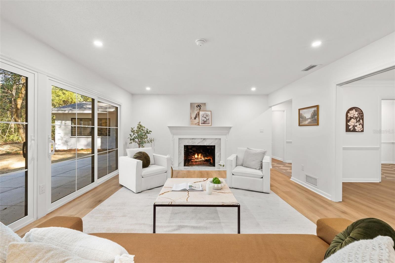 Bem-vindo à propriedade Mason Wood. Nos últimos cinco meses, trabalhei em estreita colaboração com o design do Fleming Studios para reimaginar completamente esta casa e prepará-la para o próximo capítulo. Esta casa de quase 3.400 pés quadrados fica em um terreno privado e bem cuidado de um acre, escondido em um dos bairros mais procurados do noroeste de Gainesville. Ao chegar, você notará as duas enormes calçadas, a pintura externa fresca, as novas janelas Pella e um telhado atualizado. Ao entrar, o piso xadrez dá o tom - um aceno imediato às raízes tradicionais da casa. Logo ao lado do hall de entrada fica a sala de jantar principal e a cozinha personalizada, cuidadosamente redesenhadas, mas baseadas no calor. Armários de madeira do chão ao teto, bancadas de mármore seladas e um conjunto completo de eletrodomésticos KitchenAid se unem para criar um espaço que parece elevado e atemporal - projetado para reuniões, conversas e vida cotidiana. Um dos nossos elementos de design favoritos é um carregador de telefone integrado nas bancadas - basta pousar o telefone e vê-lo carregar! Através de uma porta de correr ao lado da cozinha, você encontrará um dos momentos mais inesperados da casa: um bar ricamente projetado com armários de nogueira, impressionantes bancadas de quartzito, uma máquina de fazer gelo e uma estação de bebidas completa. Este espaço flexível pode se transformar de uma sala de jantar formal em um lounge - perfeito para receber, contar histórias e longas noites com amigos. A partir daqui, a casa se abre para a grande sala de estar, que se estende por quase 25 pés de comprimento e é ancorada por uma lareira de mármore atemporal com moldagem dentária clássica. É um espaço que parece íntimo e impressionante. A luz natural entra pelas paredes das portas de correr, emoldurando as vistas do amplo quintal e atraindo você para o exterior. A casa oferece três quartos de hóspedes de tamanhos generosos - cada um projetado para ser confortável e acolhedor. Dois compartilham um banheiro lindamente decorado com pia dupla e banheiro separado. Outro aspecto único desta casa é que ela possui duas suítes principais, cada uma com closets e banheiros privativos acessíveis – um layout incrivelmente raro e atencioso. A suíte dos proprietários apresenta uma pia dupla de quase três metros de altura com bancadas de mármore e acessórios sob medida, posicionada em frente a um amplo armário com embutidos personalizados. O banheiro dos proprietários foi completamente reimaginado e quase dobrou de tamanho para dar lugar a este box amplo excepcional - completo com chuveiros duplos, varinhas manuais, nichos embutidos e um banco. Quase 1.000 peças individuais de mármore verde se juntam para formar este chuveiro – um detalhe extraordinário raramente visto em uma casa nesta faixa de preço. A suíte dos proprietários em si parece um retiro, com duas paredes cheias de janelas com vista para o quintal impecavelmente projetado. Do lado de fora, uma espaçosa varanda com tela e um amplo pátio aberto se abrem para um acre de paisagismo reinventado, com grama fresca, novas plantações e um caminho sinuoso que leva a uma fogueira totalmente nova - projetada para manhãs tranquilas e noites inesquecíveis. Os recursos adicionais incluem uma garagem para dois carros com amplo armazenamento e uma ADU de quase 200 pés quadrados com painel elétrico separado - perfeito para um estúdio, oficina, academia ou escritório independente. Outras atualizações importantes incluem: 2 aparelhos de ar condicionado atualizados, 2 aquecedores de água quente atualizados, encanamento atualizado e um painel elétrico atualizado. Isto é o mais chave na mão possível! Bem-vindo ao lar, à propriedade Mason Wood.
