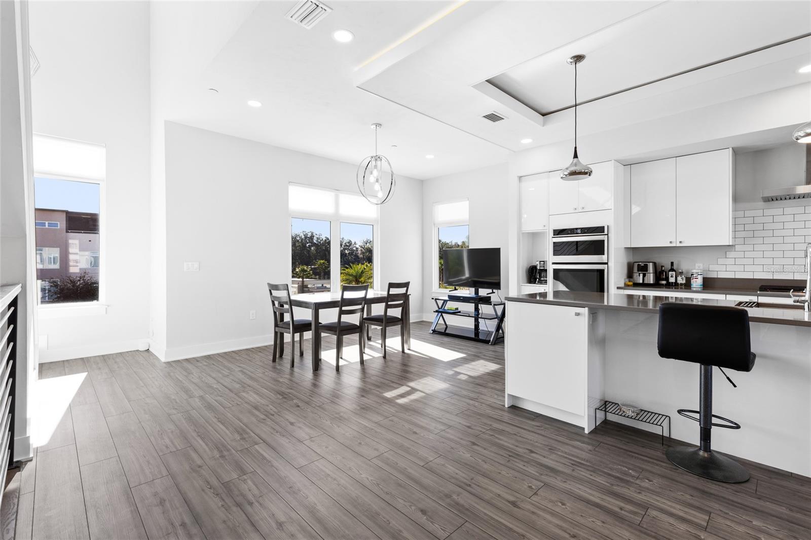Luxuosa residência urbana de 3 quartos e 3,5 banheiros com 2.980 pés quadrados no bairro The Vue at Celebration Pointe. Esta residência urbana personalizada de três andares com quarto no andar de baixo e grande caminhada na lavanderia com bancada de quartzo atualizada, corrimãos de escada em ferro forjado, pisos de vinil luxuosos por toda parte. O quarto principal fica no segundo andar com um closet personalizado, chuveiro grande atualizado e o segundo quarto de hóspedes com banheiro privativo está localizado na frente do segundo andar., possui tetos altos, muito espaço de armazenamento, prateleiras e armazenamento embutidos e muito mais. Suíte master ampla com banheiro luxuoso, box amplo, pia dupla e closet amplo. A cozinha e a sala ficam no terceiro andar, abrigam a deslumbrante ilha cascata, bancadas de quartzo, despensa ampliada, eletrodomésticos atualizados com fogão de indução e forno de convecção. Uma incrível janela grande com luz natural abundante, com vista para o centro principal de Celebration Pointe e ambiente sofisticado. O lavabo também fica neste andar. Apresentando características de design notáveis e conveniências modernas que atendem a todos os seus desejos. Ampla varanda com áreas abertas e cobertas, oferece uma vida elegante em estilo resort com uma piscina comunitária em estilo resort, experimentando a mistura perfeita de luxo e natureza nesta casa excepcional. Desfrute de uma variedade de atividades de lazer em Celebration Pointe, a uma curta distância de restaurantes, lojas, bares e um cinema. Também está convenientemente localizado perto de UF/Shands, NFRHospital, I-75 e lojas.