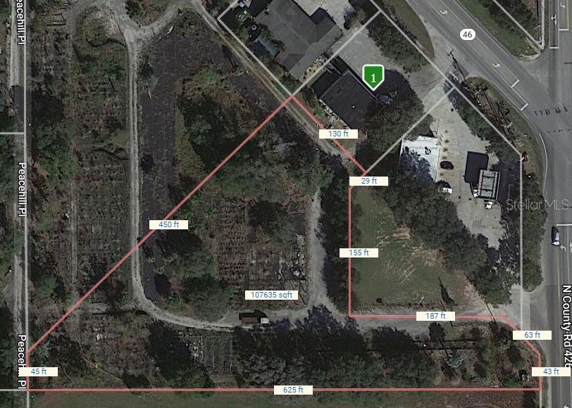 6,04 acres com 373 pés de frente na principal interseção da SR-46 e CR-426. O edifício comercial existente pode ser aumentado de tamanho, ou construir outro edifício que se adapte às suas necessidades. A propriedade está equipada com eletricidade por toda parte, energia trifásica, dois poços de 5 HP e lindos muros de contenção de pedra decorativa. Excelente localização entre o Sanford Auto Train, Aeroporto Internacional de Orlando/Sanford, I-4, HWY 417 e I-95. O proprietário diz que muitos snowbirds, snowbirds canadenses e viajantes internacionais param na loja a caminho da I-95. Além disso, o tráfego suburbano de Seminole para o condado de Volusia quadruplicou nos últimos anos.