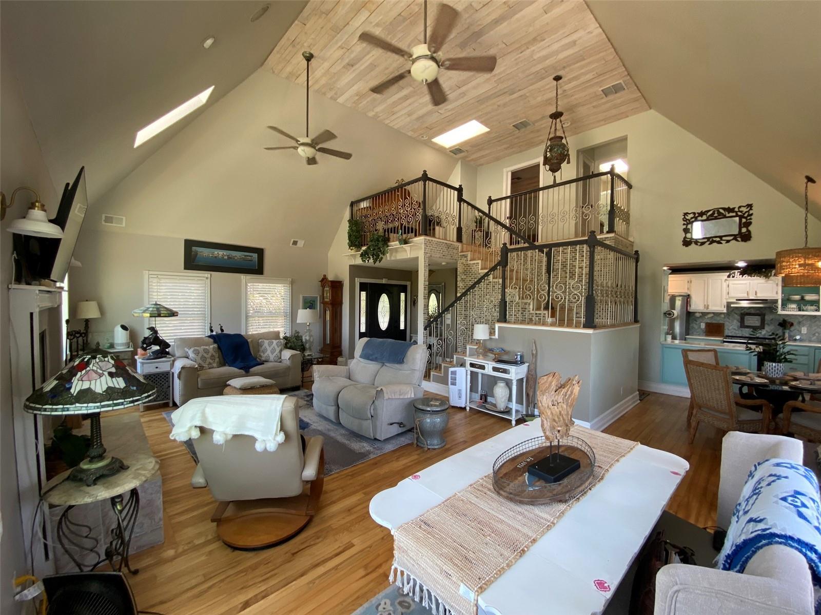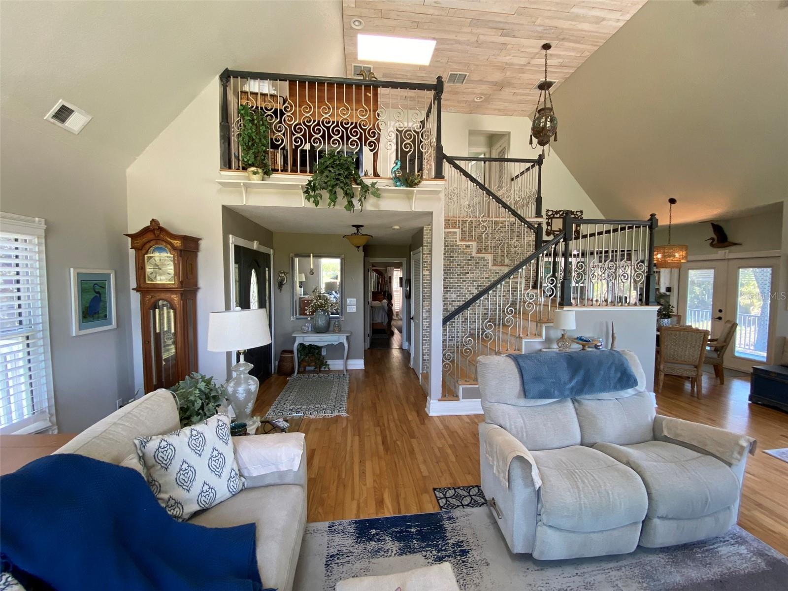Experimente a verdadeira vida na Flórida nesta propriedade isolada e privada de 3/4 +/- acre e esta casa com piscina em estilo arquitetônico “Key West” construída sob medida em uma frente de canal de 150 pés com direitos ribeirinhos é uma propriedade única com acesso direto ao St. Vista para o rio e para a água em três (3) lados, rodeada por terrenos pertencentes ao concelho. A 3 quarteirões da rampa para barcos públicos no Mullet Lake Park. Aproveite a brisa enquanto se senta no rio e observa os barcos passarem. Nenhuma despesa foi poupada na construção desta casa. Os extras incluem; bela cozinha externa de baixa manutenção e ½ banheiro localizada no andar inferior, bem como amplo depósito, estacas de 40 pés de profundidade para integridade estrutural, revestimento de vinil com espuma para isolamento extra, telhado de metal de 50 anos, tetos de madeira macho e fêmea em varandas, uso extensivo de sancas e rodapés altos por toda parte, janelas de painel duplo, portas francesas resistentes a furacões na sala de jantar e portas francesas Pella na sala de estar, além de muitas outras. Desfrute de belos pores do sol e relaxe em uma das três (3) varandas ao ar livre ou refresque-se na piscina aberta de água salgada com jatos terapêuticos opcionais. Garagem de grandes dimensões para 2-3 carros localizada embaixo da casa (tetos atualizados para metal para fácil manutenção) Elevador de carga instalado para levar itens para cima (capacidade de peso de até 900 lb) 25'+- teto na área de estar, 2 grandes janelas panorâmicas para excelentes vistas da frente do rio em ambos os lados da lareira de mármore com lareira elevada para sentar, pisos de madeira real e escadaria de ferro forjado personalizada. Cozinha leve e luminosa com amplos armários, despensa, bancadas de quartzo e tetos de madeira. Dentro do armário da lavanderia ao lado da cozinha. Suíte master e banheiro localizado no andar principal, com banheiro do segundo e terceiro quartos e loft localizado no segundo andar. Fácil acesso às principais vias expressas e interestaduais. Aprox. 30 minutos do centro de Orlando e aeroportos. 50 minutos das atrações da região e das praias do Atlântico e do Cabo Canaveral. Duas parcelas adicionais sendo transportadas ID # 32-19-32-300-0220-0000, 32-19-32-300-013A-0000 O proprietário é um agente imobiliário licenciado na Flórida.