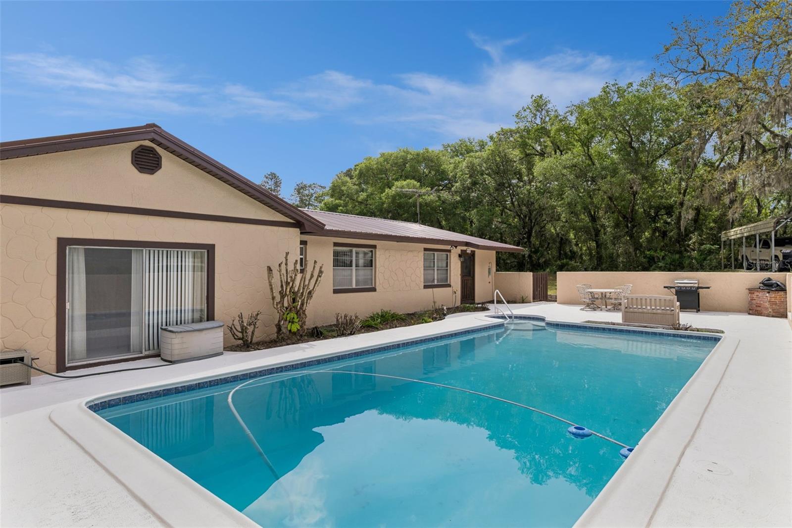 Bem-vindo ao Country Living no seu melhor! Esta espaçosa casa com piscina unifamiliar de 4 quartos e 2 banheiros fica em pouco mais de 3,4 acres na procurada área da bolha de Genebra, oferecendo a combinação perfeita de privacidade, espaço e conveniência.SEM HOA! Entre em uma planta aberta com quartos amplos e flexíveis, ideais para famílias e entretenimento. A acolhedora sala de estar flui para uma área de jantar formal, que se conecta perfeitamente à cozinha e tem vista para a tranquila sala da Flórida. Aproveite seu café da manhã cercado por vistas do quintal arborizado e isolado, onde a vida selvagem e caminhadas tranquilas pela natureza o aguardam. Retire-se para uma ampla suíte principal com banheiro privativo completo com banheira e chuveiro. Três quartos adicionais e um segundo banheiro completo oferecem muito espaço para a família ou convidados. A vida ao ar livre brilha aqui: dê um mergulho refrescante na piscina recém-reformada, relaxe sob a garagem para dois carros ou explore a garagem/celeiro separado de dois andares para dois carros com eletricidade - um espaço de sonho para colecionadores de carros, oficinas ou até mesmo um apartamento no andar de cima ou suíte para sogros. Sem HOA, zoneamento A5 e 227 pés de frente para a estrada, as possibilidades para atividades domésticas, comerciais ou de hobby são infinitas. As atualizações recentes incluem um novo telhado de metal, encanamento reformado, novo AC e um poço com manutenção. Aproveite o acesso rápido às melhores escolas, praias da Costa Leste, UCF, Lake Mary e Sanford - além disso, imagine assistir aos lançamentos do Rocket no seu quintal. Experimente o melhor da vida no campo da Flórida, ao mesmo tempo que fica perto de tudo o que você precisa!