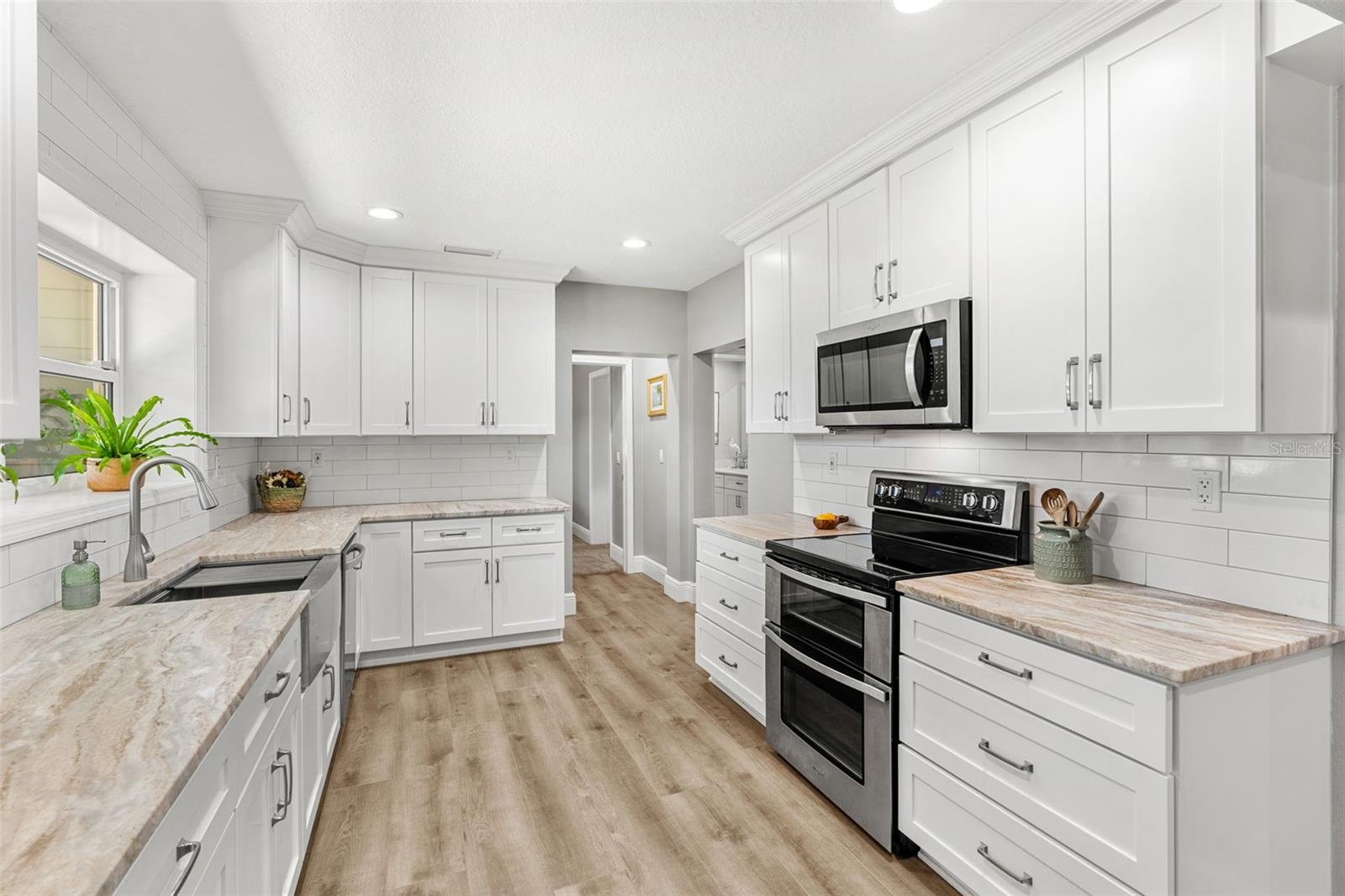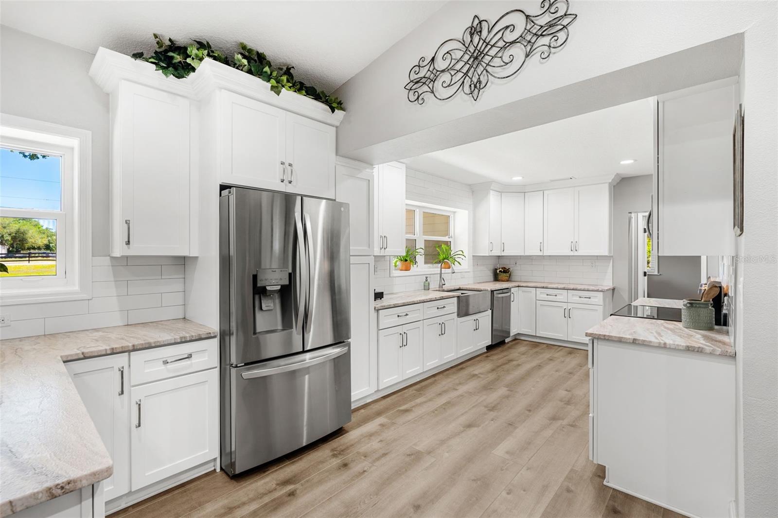 Propriedade totalmente remodelada em estilo rancho que oferece luxo campestre refinado em pouco mais de 10 acres com frente para o lago, combinando pastagens abertas com terreno natural à beira do lago. Com o ano efetivo de 1990 e atualizações significativas concluídas entre 2021–2023, incluindo sistemas importantes em 2021 e acabamentos interiores em 2023, a casa combina estrutura estabelecida com funcionalidade e design modernos. Esta residência de 4 quartos e mais um escritório apresenta uma planta aberta com tetos altos de catedral, uma lareira a lenha com fachada de pedra e portas francesas que se abrem para uma varanda com tetos de madeira macho e fêmea com vista para a piscina e spa aquecido. A cozinha é elevada e altamente funcional com bancadas de granito revestido de couro, armários brancos com armazenamento abundante, 2.021 eletrodomésticos e uma despensa escondida atrás de portas de celeiro personalizadas, com uma lavanderia convenientemente localizada ao lado da cozinha. Uma entrada de porta de celeiro personalizada correspondente leva ao escritório/escritório privado. A suíte principal tem uma localização privada com acesso direto à varanda e inclui um grande closet e um banheiro bem equipado com chuveiro grande e vaso sanitário separado, oferecendo um retiro confortável e isolado. Dois quartos secundários possuem banheiro privativo, enquanto um quarto adicional – atualmente usado como escritório – abre para uma varanda lateral privativa através de portas de vidro deslizantes. Ao ar livre, a propriedade oferece suporte a uma variedade de usos, incluindo equitação, fazenda de hobby ou retiro privado, com fogueira à beira do lago, pasto aberto e um celeiro com duas baias para cavalos e uma sala de arreios com eletricidade atualizada (2026). A garagem para 3 carros possui um espaço de trabalho fechado junto com armazenamento aberto adicional, com madeira externa substituída recentemente (2026). As atualizações recentes incluem telhado metálico, HVAC, dutos, painel elétrico, reequipamento, novo campo de drenagem e eletrodomésticos (2021), juntamente com pisos e armários (2023). Uma oportunidade excepcional para quem procura espaço, privacidade e um imóvel pronto a desfrutar desde o primeiro dia, com flexibilidade para viver, trabalhar e expandir sem compromissos.