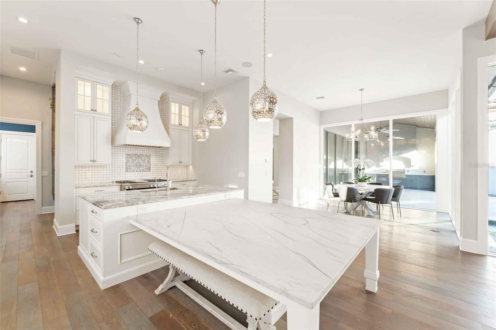 Uma oferta rara e reinventada em Golden Oak no Walt Disney World® Resort! Esta propriedade térrea recém-renovada e ampliada no cobiçado enclave de Kingswell agora possui quase 6.300 pés quadrados de área útil, enquanto faz fronteira com apenas uma outra residência, criando privacidade excepcional em um ambiente tranquilo sem saída. Esta casa personalizada recentemente aprimorada possui cinco suítes e vários espaços recém-criados, ideais para hóspedes, familiares ou para uma vida cotidiana flexível. No momento em que você entra, os controles deslizantes de acordeão que desaparecem emolduram uma vista dramática da deslumbrante piscina em estilo pátio e do lounge externo, estabelecendo uma conexão perfeita entre interior e exterior. Também fazendo uma declaração imediata, um impressionante escritório com paredes de vidro homenageia o escritório original do Walt Disney, Hyperion Studios, e inclui uma porta oculta para um banheiro privativo, um dos vários toques de bom gosto da Disney tecidos em toda a casa. A cozinha gourmet possui eletrodomésticos Sub-Zero e Miele, enquanto uma ilha enorme com assentos generosos se abre perfeitamente para a grande sala para entretenimento sem esforço. As janelas do chão ao teto na copa inundam a cozinha e as áreas de estar com luz natural e proporcionam vistas panorâmicas do pátio privado. Qualidade excepcional e acabamentos meticulosamente selecionados são evidentes em cada esquina, com a impressionante e redesenhada ala principal oferecendo um escritório secundário/sala de estar, vestiários duplos, pias duplas e um chuveiro espaçoso, criando um verdadeiro retiro semelhante a um spa. Além da nova pintura externa e interna, outras melhorias são abundantes, incluindo uma nova sala bônus/flexível ao lado de dois quartos com banheiro privativo. Para aqueles que apreciam as maravilhas da Disney, outra entrada disfarçada o aguarda, levando a uma suíte de hóspedes mágica com tema dos Sete Anões, completa com cenas nas janelas dos personagens, música temática e murais únicos. O pátio em estilo resort é ancorado por uma dramática cortina de água em cascata em frente à lareira externa, com um pátio enorme que oferece diversas áreas para refeições, descanso e entretenimento ao redor da piscina de água salgada, spa e nova cozinha de verão. Localizada dentro do condomínio fechado de Golden Oak, esta propriedade oferece um nível de privacidade, design e moradia térrea raramente disponível no condomínio, ao mesmo tempo que proporciona verdadeiramente a sensação de uma nova casa em construção. Os residentes de Golden Oak desfrutam de acesso ao clube privado, Summerhouse, enquanto são vizinhos do Four Seasons Resort Orlando no Walt Disney World Resort, que oferece seu campo de golfe Tranquilo de 18 buracos de classe mundial, restaurantes renomados, spa de luxo e oportunidades adicionais de associação. 10012 Hyperion Lane é mais do que uma casa. É um estilo de vida repleto de magia e projetado para sua diversão nos próximos anos!