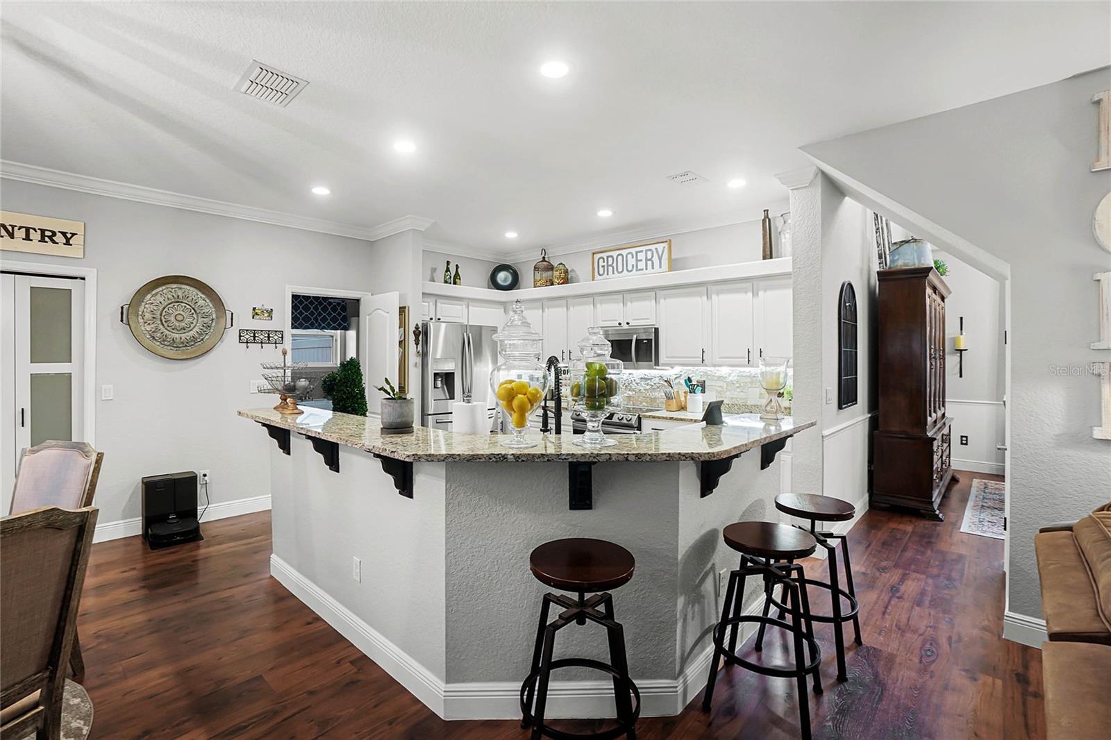 Bem-vindo a esta deslumbrante casa de 4 quartos e 3 banheiros localizada em 1940 Thoroughbred Drive, Gotha, FL. Com espaçosos 2.630 pés quadrados, esta residência está situada em um generoso lote de 1.0231 pés quadrados. Entre no luxo enquanto explora o interior, onde você encontrará piso laminado de luxo em todo o andar de cima - sem carpete em lugar nenhum. A sanca acrescenta um toque elegante, criando um ambiente sofisticado. No andar superior possui 3 quartos e 2 banheiros, incluindo o master, além de uma área de loft, proporcionando amplo espaço para relaxamento e privacidade. O banheiro principal é um retiro por si só, apresentando box amplo, banheira de hidromassagem, pia dupla e bancadas de granito. No andar de baixo, a cozinha possui bancadas de granito, um elegante backsplash de pedra, piso laminado de luxo e uma despensa grande para todas as suas necessidades culinárias. A cozinha é atualizada, oferecendo funcionalidade e estilo modernos. O armazenamento sob as escadas oferece comodidade prática. Saia para descobrir a convidativa área da piscina, completa com pavimentação recém-vedada dentro da tela. A piscina proporciona um oásis refrescante para relaxamento e entretenimento, embora não seja aquecida. A piscina foi concluída em 2022, garantindo um aspecto moderno e bem conservado. O quintal é totalmente vedado, oferecendo privacidade e segurança. Esta casa oferece ainda lavanderia, pátio privativo, quintal privativo, iluminação embutida, closet e garagem anexa, proporcionando conforto e comodidade em cada esquina. Não perca a oportunidade de fazer deste requintado imóvel a sua nova casa. Agende uma exibição hoje e experimente o luxo e o conforto da 1940 Thoroughbred Drive.