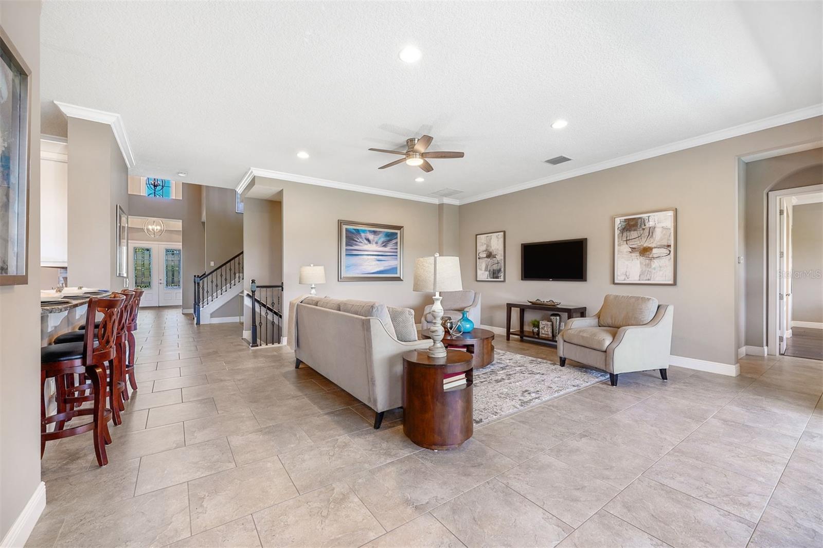 Magnífica e luxuosa casa localizada convenientemente a oeste da Flórida Central. Esta propriedade de 3 andares e 6.700 pés quadrados tem um layout impressionante, com cinco quartos, seis banheiros, uma piscina de água salgada com banheira de hidromassagem imitando a vida na Flórida. Ao entrar na casa você encontrará uma aconchegante e espaçosa sala de estar e jantar formal, perfeita para entretenimento. O escritório possui armários embutidos personalizados e mesas funcionais personalizadas para 2 pessoas com bancadas de granito. A cozinha é o sonho de qualquer chef, com uma ilha central e eletrodomésticos de última geração e uma ampla área para café da manhã. A suíte master no térreo tem piso de madeira com banheiro master deslumbrante e closet espaçoso. O segundo andar apresenta uma abundância de espaço central e também 3 quartos, cada um com casa de banho completa. A vista panorâmica na parte traseira da casa pode ser apreciada durante os meses de verão usando as telas motorizadas do pátio de alta qualidade. A apenas 1,6 km do loteamento fica o Hospital Central de Saúde. Esta localização privilegiada oferece o equilíbrio perfeito entre conveniência e acessibilidade e está próxima da estrada com portagem 408. Um carregador EV está presente na garagem onde o seu carro EV pode ser recarregado convenientemente enquanto você relaxa. A propriedade tem tudo para entreter a família e amigos enquanto aproveita ao máximo o estilo de vida da Flórida.