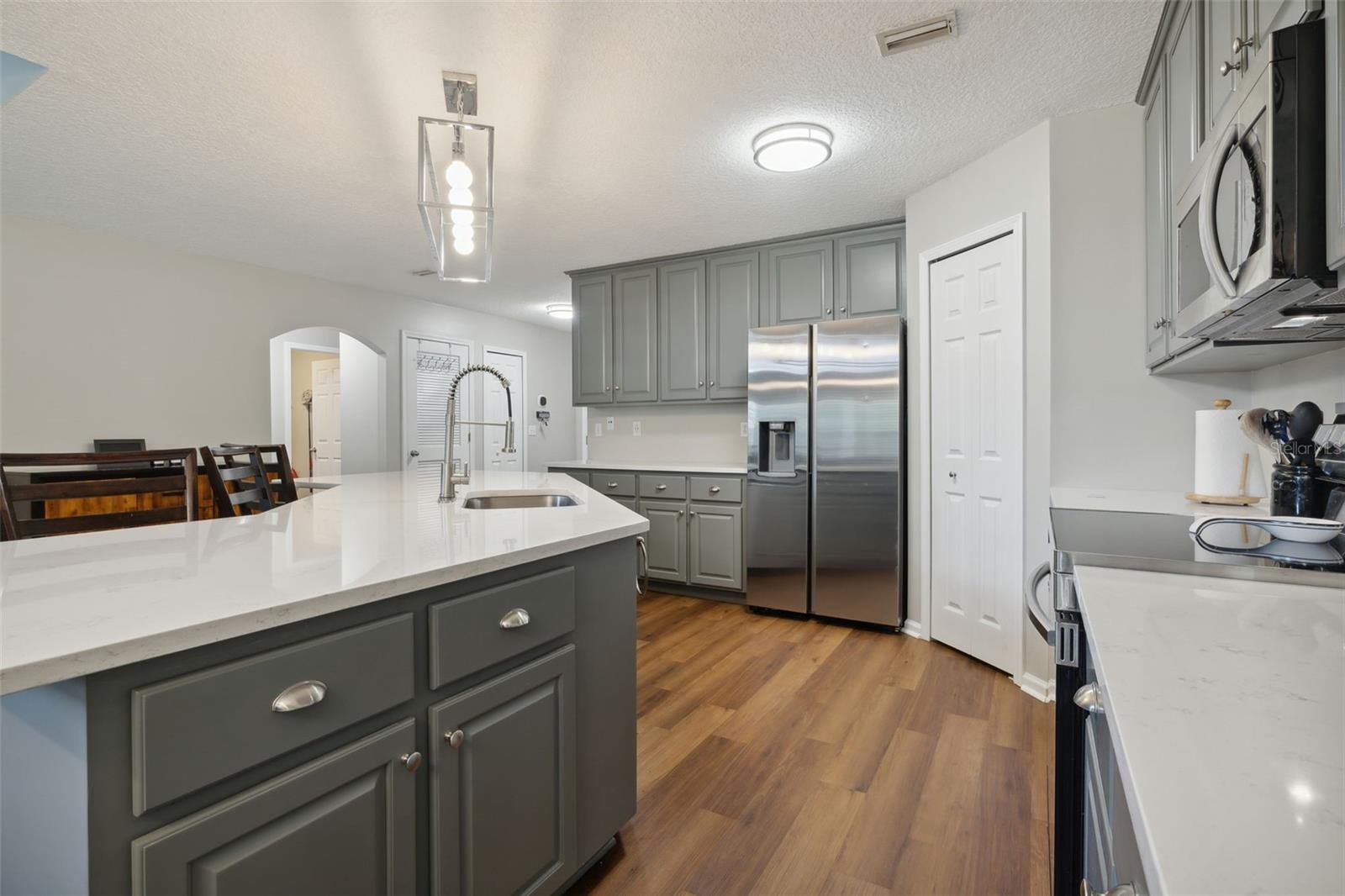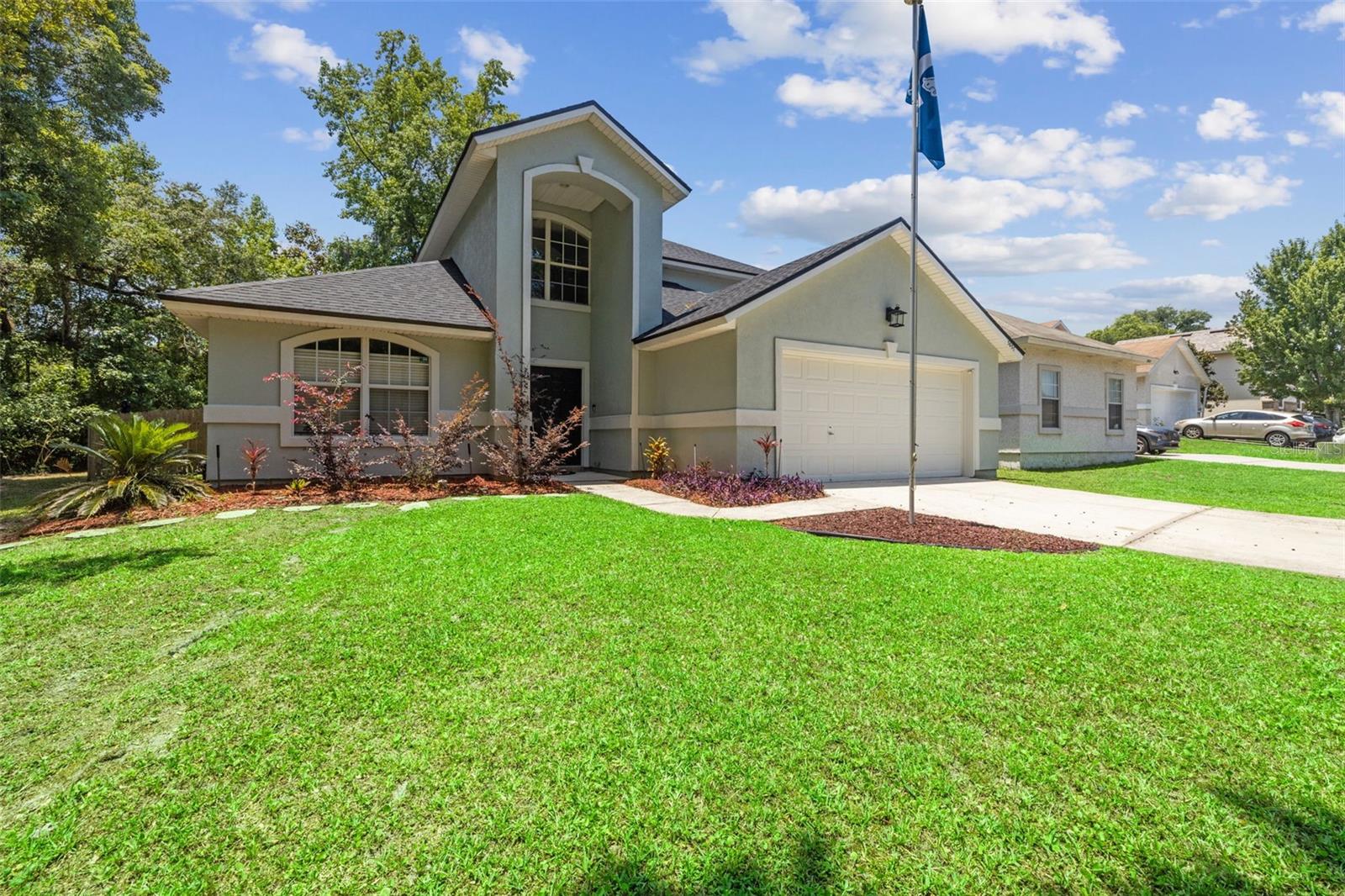 Bem-vindo a esta deslumbrante casa unifamiliar de 4 quartos e 2,5 banheiros situada no desejável bairro de Hickory Knolls Estates. Esta casa recebe você com uma charmosa porta dupla e possui uma espaçosa garagem para 2 carros. O quarto principal está convenientemente localizado no térreo, oferecendo privacidade e facilidade. A sala possui tetos altos e grandes janelas, inundando o espaço com luz natural e criando uma sensação arejada e aberta. A cozinha inclui um balcão para café da manhã e um armário de despensa, fluindo perfeitamente para a área de estar, onde uma lareira aconchegante o aguarda. Saia para um pátio coberto nos fundos, perfeito para entretenimento, completo com uma porta para cães que aceita animais de estimação e um quintal cercado com fogueira. Um mastro no jardim da frente adiciona um toque de charme patriótico. Situada em Green Cove Springs, Clay County, esta casa fica perto do Clay Theatre, do cais público, da piscina e muito mais, proporcionando muito entretenimento.