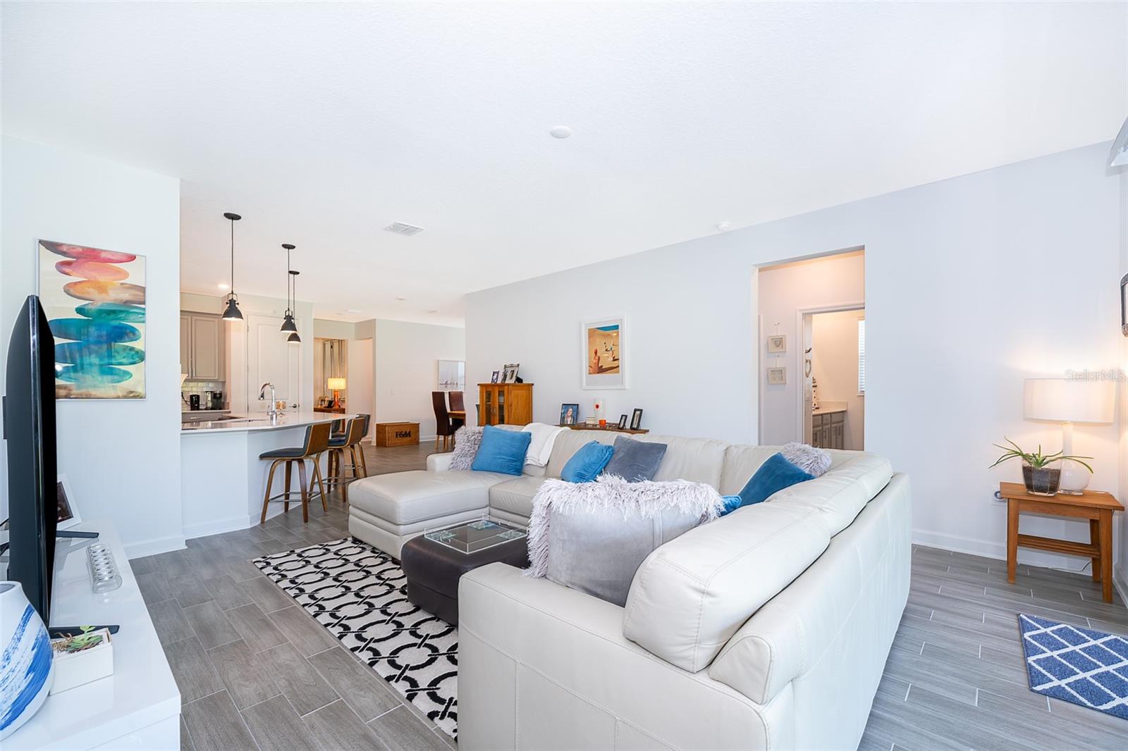 Avalie o incentivo de compra disponível. Bem -vindo à sua casa de sonho! Construído em 2022, esta espaçosa casa de banheiro de 4 quartos e 4 quartos oferece um design atencioso com uma planta baixa dividida. A elegante acabamento de pedra na elevação frontal é uma atualização, assim como a garagem de 3 carros com abridores de portas elétricas para as baías duplas e únicas. Os ladrilhos de cerâmica com tema de madeira fluem em todas as áreas de estar, combinadas com carpete aconchegante nos quartos. O coração da casa é uma cozinha gourmet com utensílios de aço inoxidável, armários cinzentos elegantes com um backsplash de ladrilhos e bancadas de Silestone primitivas. Desfrute de muitos assentos no topo da barra com a grande barra de café da manhã, além da ilha. A iluminação nesta área é fornecida por pingentes elegantes pendentes e luzes recuadas. A suíte principal do quarto é um verdadeiro retiro com um espaçoso closet e um banho luxuoso com vaidades duplas com topo de pedra, uma banheira de jardim, chuveiro separado e piso de azulejos de cerâmica. Tetos altos acima de 9 'se estendem por toda a casa, aumentando sua sensação aberta e arejada. Os painéis solares com eficiência energética mantêm os custos de serviços públicos baixos. A vida ao ar livre brilha com uma varanda da frente coberta e uma varanda coberta traseira que é integrada à linha do telhado. Um Swale Greenspace na parte traseira do lote acrescenta privacidade extra e é mantida pela Associação de Proprietários. Aninhado na comunidade Trinity Lakes, você desfrutará de comodidades no estilo resort, incluindo uma piscina de grandes dimensões, splash pad, fitness center, píer de pesca, parque de cães, trilhas para caminhada e vários playgrounds. Convenientemente localizado perto da rodovia, esta casa fica a apenas 35 minutos dos parques temáticos mundialmente famosos de Orlando e fica a uma curta distância de carro do encantador centro de Groveland e Clermont, que oferece acesso fácil a compras, restaurantes e escolas com melhor classificação-tudo em 10 minutos. Esteja você relaxando no conforto desta casa pronta para se mover ou explorar o ambiente vibrante, esta bela casa oferece a mistura perfeita de luxo, conveniência e estilo de vida. Não perca a chance de chamar essa propriedade excepcional de casa!
