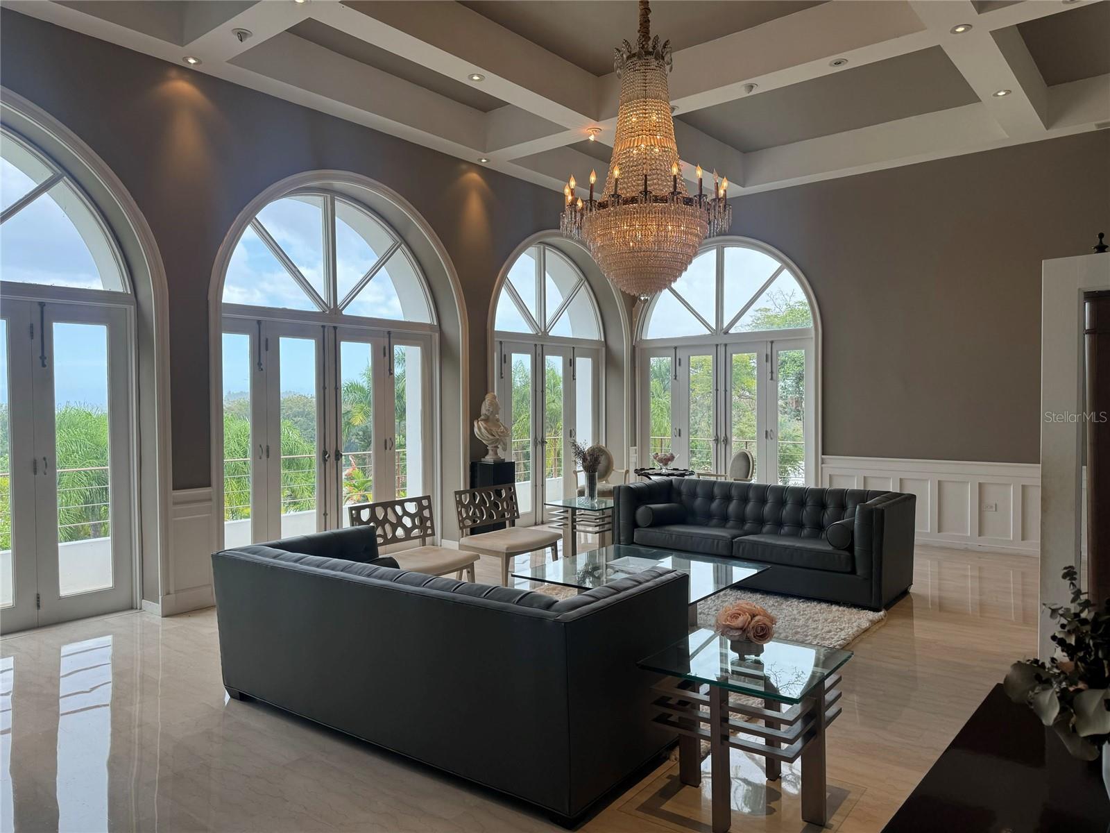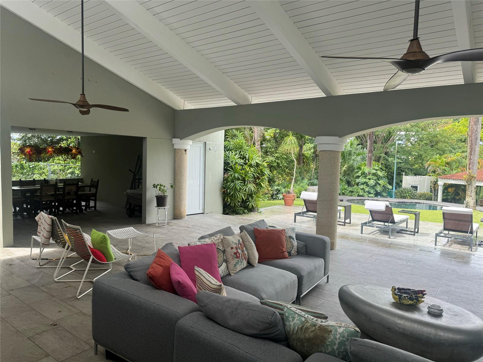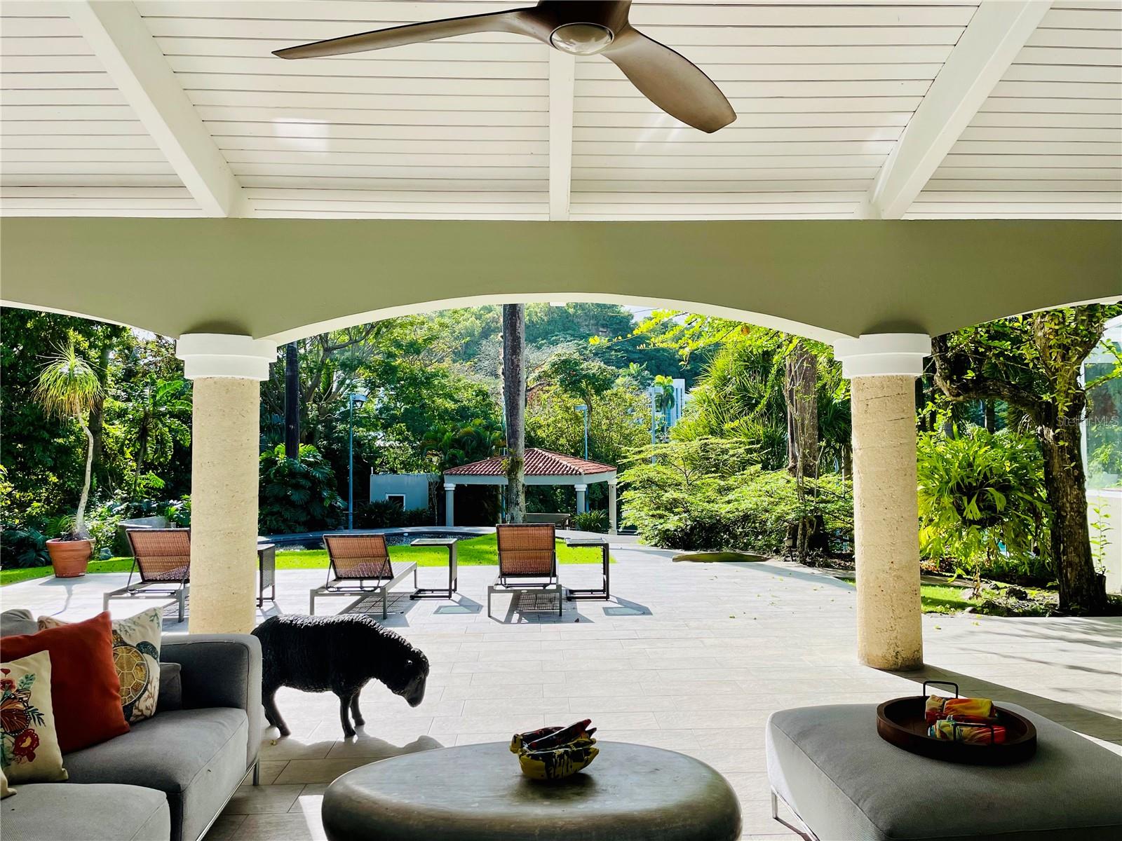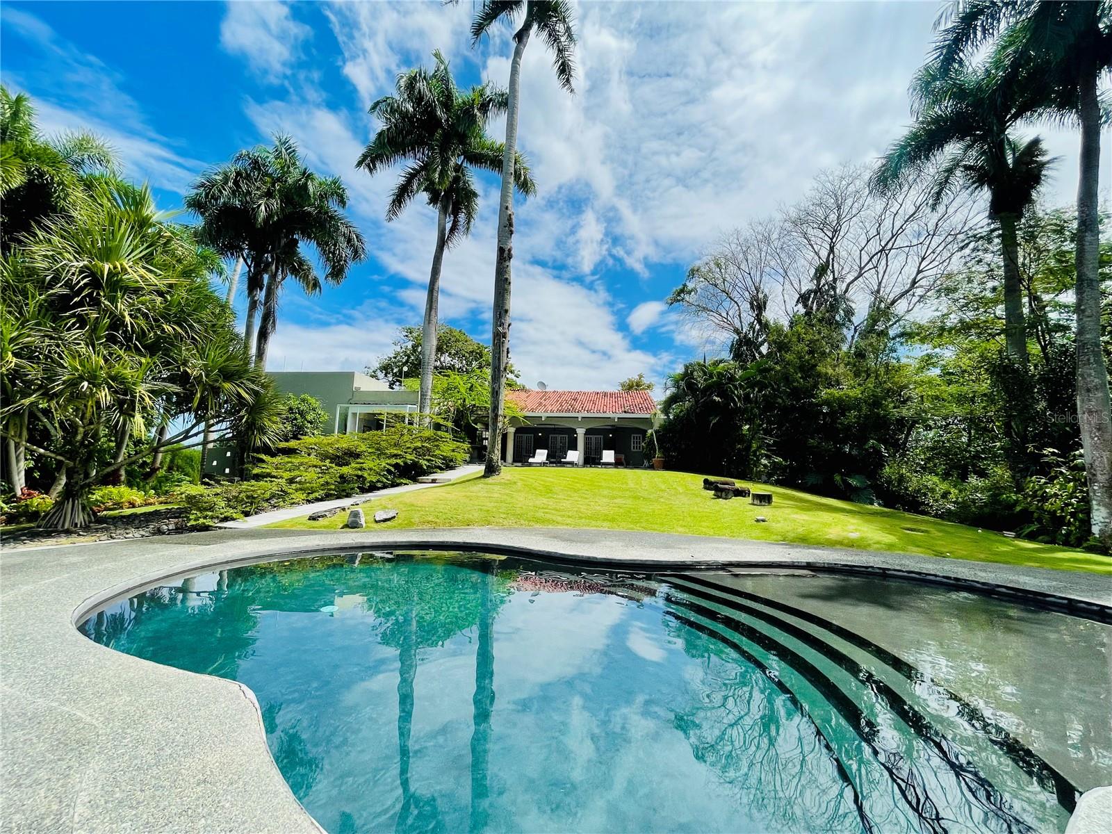 Aproveite a vida neste paraíso tropical, em seu próprio resort privado no topo de uma colina com vista para San Juan e para o oceano ao longe, mas a apenas 9,6 km de San Juan. Esta impressionante propriedade luxuosa de 7.538 S/M é um verdadeiro oásis cercado por jardins exuberantes e árvores centenárias. A residência possui magníficos pisos de mármore, majestosos tetos de catedral no imponente Great Room, uma cozinha de chef com eletrodomésticos de última geração que se abrem para uma moderna sala de jantar e um enorme terraço coberto, ótimo para entretenimento, e tudo com vista para a piscina, quadra de tênis (em reforma), fogueira, mirante, bar e sala de vinhos. A casa dispõe ainda de um escritório ou biblioteca, uma ampla sala familiar totalmente equipada, também com vista para o terraço, piscina e campo. A casa possui sete quartos com banheiros privativos, incluindo um apartamento completo separado ou quartos de hóspedes com entrada própria. Uma ampla lavandaria, um quarto de caseiro (agora ginásio) com casa de banho privativa, três garagens separadas, um grande gerador completo e uma cisterna completam esta magnífica propriedade suburbana única. Tintillo Hills é um enclave exclusivo e um dos condomínios de portões duplos mais seguros de Guaynabo. Esta propriedade única se beneficia da proximidade com as melhores escolas, restaurantes e vida cosmopolita de Condado e Guaynabo, enquanto você desfruta da vida em um oásis isolado, um paraíso tropical, seu próprio resort privado. Para compradores qualificados somente com hora marcada.