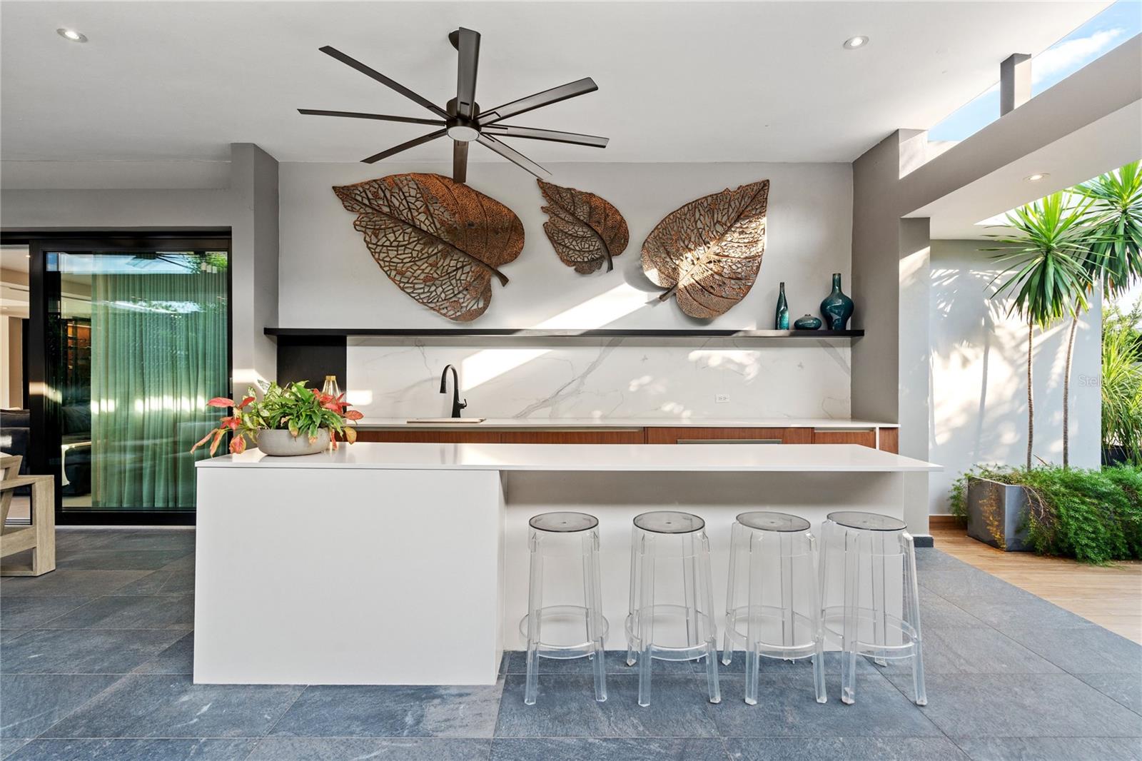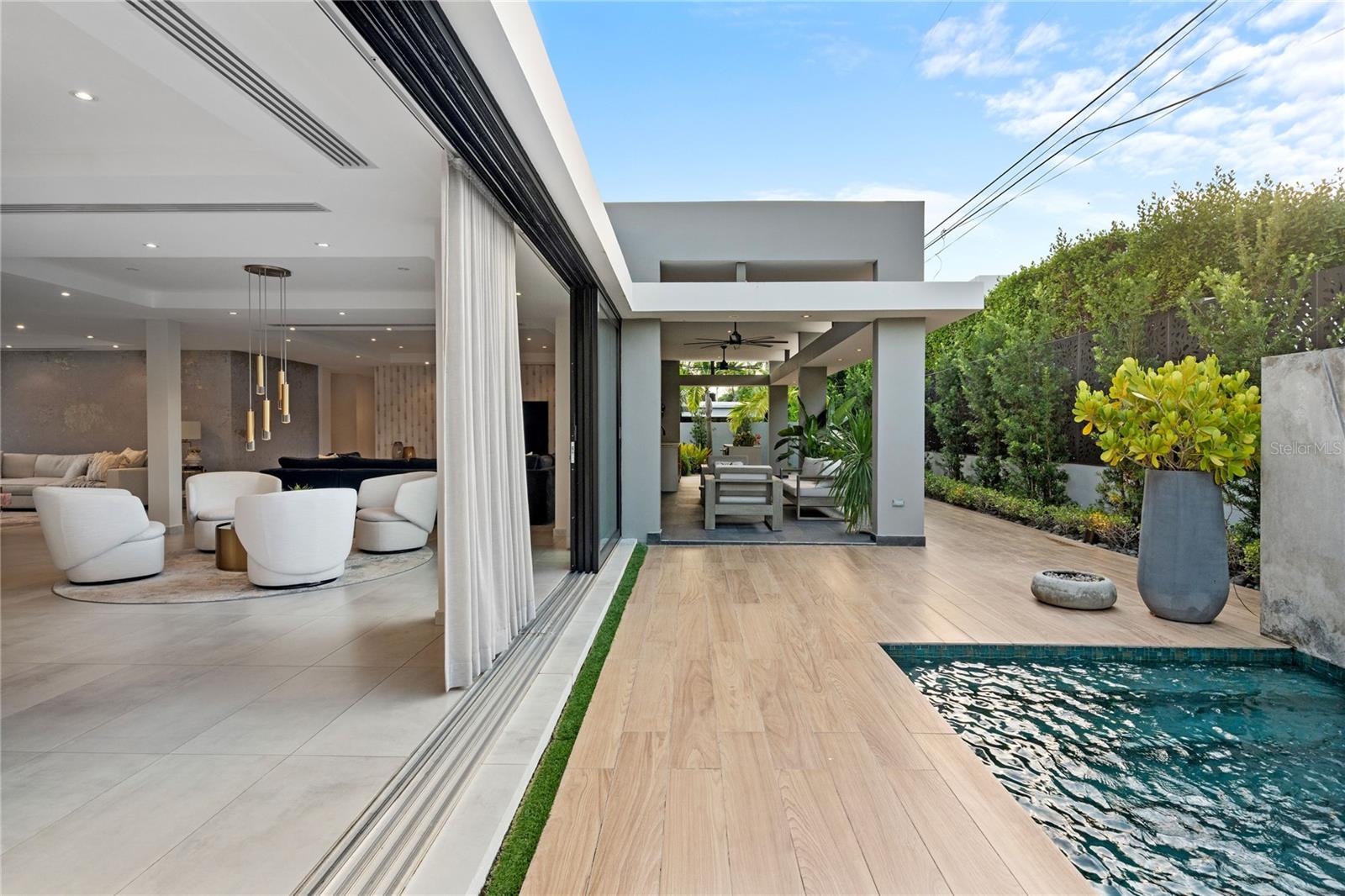 Bem-vindo a uma residência única, uma mostra de luxo, tecnologia e design impecável, que oferece uma experiência de estilo de vida incomparável! Totalmente mobiliado e equipado, 4 quartos, 4 banheiros completos e 2 lavabos projetados pelo renomado arquiteto JOTA, Pachi Garcia, é uma obra-prima situada em Garden Hills Sur, um condomínio fechado exclusivo. Esta extraordinária residência de 4.489 pés quadrados oferece uma mistura harmoniosa de elegância e inovação moderna. Com um terraço privado de 387 pés quadrados perfeito para um relaxamento sereno e uma garagem de 484 pés quadrados, esta propriedade incorpora o que há de melhor na vida luxuosa. A propriedade cativa você, desde a grande entrada sobre a ponte do lago de carpas, passando pelo hall de entrada de dois andares e a deslumbrante área de estar em espaço aberto repleta de luz natural do chão ao teto até a área de entretenimento ao ar livre, esta casa conecta perfeitamente o interior e espaços ao ar livre. Suíte Primária - A suíte principal é o retiro definitivo. Possui uma espaçosa área de estar, dois amplos closets, cortinas eletrônicas e um sótão. Sua experiência semelhante a um spa é aprimorada por um sistema de chuveiro digital Kohler com múltiplas saídas de água e iluminação de teto integrada. Alto-falantes ocultos no teto, som controlado por Bluetooth e banheira suntuosa proporcionam uma atmosfera completa de relaxamento e imersão. Suítes de hóspedes - as duas suítes são igualmente luxuosas, cada uma com 55 Smart TVs Samsung, banheiros privativos com acessórios Kohler e alto-falantes de teto elegantemente escondidos controlados via Bluetooth. Ambas as suítes têm acesso direto ao espaço individual do terraço lateral, oferecendo privacidade e comodidade. Suíte de Serviços - A área de serviço foi cuidadosamente projetada para proporcionar conforto e privacidade, contando com um ambiente aconchegante com TV Samsung 32 e banheiro totalmente equipado, garantindo um espaço discreto e confortável para funcionários ou familiares. Cozinha Aberta - A residência possui uma cozinha Cesar luxuosa e meticulosamente trabalhada, importada da Itália pelo AD Studio e complementada com móveis, eletrodomésticos e equipamentos premium. Este sonho culinário de uma cozinha apresenta armários e gavetas com fechamento suave, sofisticação soberba, enquanto a espaçosa despensa agrega estilo e praticidade. Adega - Os entusiastas do vinho ficarão cativados pela requintada adega de 150 garrafas da casa, com tecnologia avançada de controle climático. Este espaço excepcional não apenas preserva as melhores safras, mas também serve como peça central para entretenimento elegante. Área de entretenimento ao ar livre - O quintal paisagístico se estende até um elegante terraço ao ar livre com uma área de cozinha embutida, ideal para entretenimento. A piscina de água salgada é um destaque, completa com cascatas, iluminação LED e sistema de aquecimento para diversão o ano todo. Equipamento - Entre alguns dos recursos tecnológicos de destaque, está o sistema de iluminação Leviton controlado por Wi-Fi da casa, que permite um ambiente personalizado por toda parte. Cinco compressores de ar condicionado alimentam 11 zonas de resfriamento independentes, garantindo conforto ideal em todos os ambientes. Uma cisterna com sistema de pressurização e gerador a diesel de 15 quilowatts garante pressão consistente da água em toda a casa e energia ininterrupta, enquanto as portas e janelas Green Windows resistentes a furacões aumentam a segurança e o isolamento acústico superior. Móveis, eletrodomésticos e equipamentos de alta qualidade completam este extraordinário imóvel.