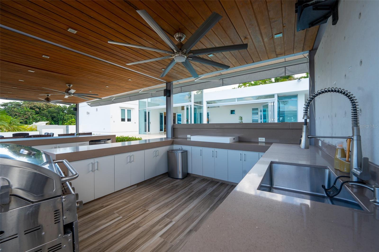 Aninhado no bairro exclusivo em Estencias de Torimar em Guaynabo, Porto Rico, esta impressionante residência de luxo de 4 quartos e 6 banheiros oferece 3.971 pés quadrados de elegância incomparável e sofisticação moderna. Desde o momento em que você chega, o exterior meticulosamente projetado o cumprimenta com uma mistura de arquitetura contemporânea e beleza natural, com vidros amplos de vidro que fornecem vistas panorâmicas da paisagem da ilha exuberante. A casa fica em um lote generoso, oferecendo privacidade e serenidade enquanto ainda está convenientemente localizado perto de escolas de primeira linha, compras, restaurantes e marcos culturais. Entre para descobrir um grande espaço de vida de conceito aberto que combina perfeitamente a funcionalidade com o estilo. A expansiva sala de estar apresenta tetos altos, pisos finos de mármore e iluminação personalizada, criando um ambiente perfeito para relaxamento e divertido. A cozinha gourmet é o sonho de um chef, equipado com aparelhos de ponta, armários elegantes e bancadas em granito, tornando-o ideal para preparar refeições requintadas. Cada um dos quatro quartos é um retiro privado, com banheiros luxuosos e armários embutidos. O quarto principal tem acesso direto ao terraço da piscina fechada que convida você a desfrutar do ambiente tropical em paz. Os espaços de estar ao ar livre da casa são tão impressionantes quanto seu interior, oferecendo vários terraços, uma piscina refrescante e uma cozinha externa totalmente equipada, perfeita para hospedar reuniões ou simplesmente desenrolar enquanto desfruta das vistas deslumbrantes da paisagem do Caribe. Recursos adicionais incluem um home theater de última geração, um elevador, uma incrível adega com um molhado Bar, um terraço fechado com A/C e um terraço de telhado de madeira externo adicional com cozinha e bar, um gerador completo e uma cisterna de 600 galões. Esta residência representa o auge do luxo que vive em Guaynabo, combinando confortos modernos com a beleza e tranquilidade dos melhores imóveis de Porto Rico 3.971 pés quadrados | 953 m² | HOA $ 400/MO. | Crim $ 3.426
