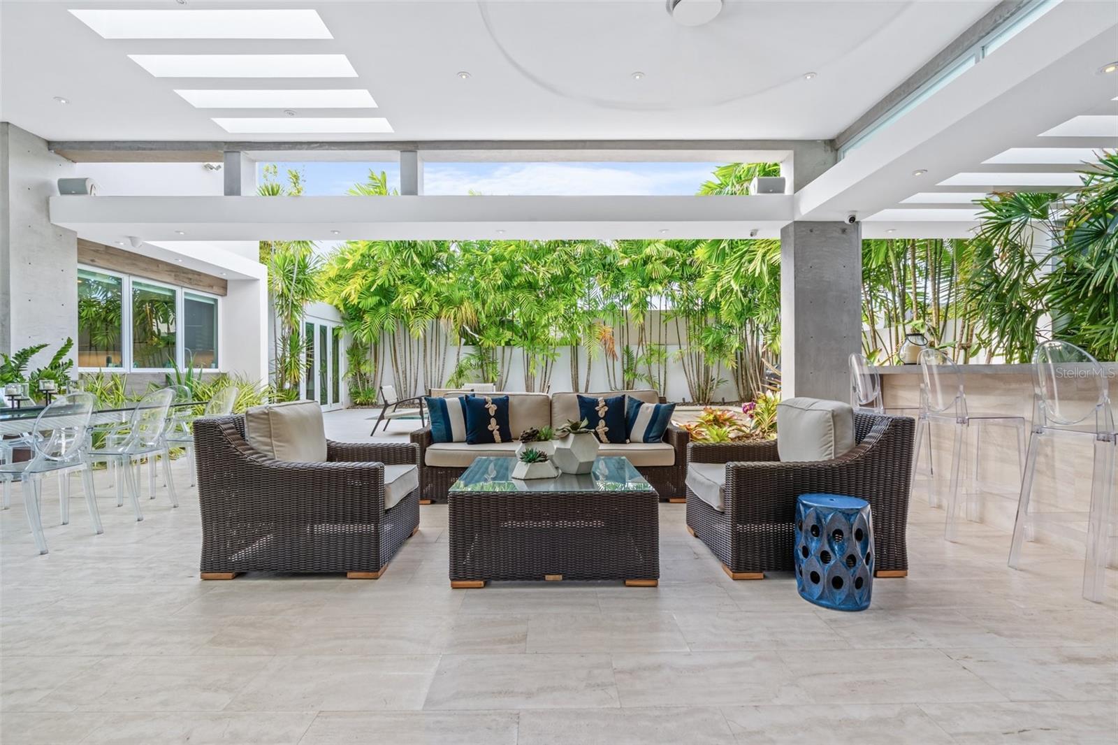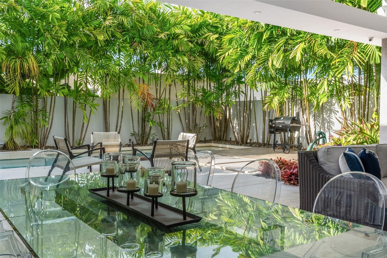 Pátio, jardim, churrasqueira ao ar livre, calçada, portas deslizantes, armazenamento