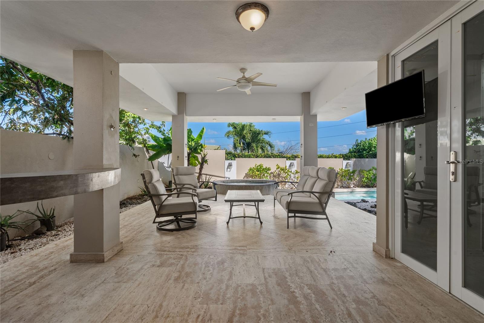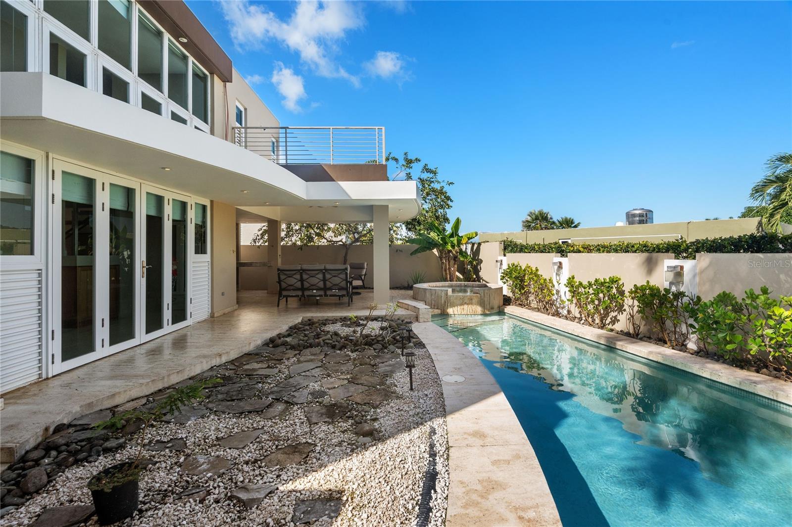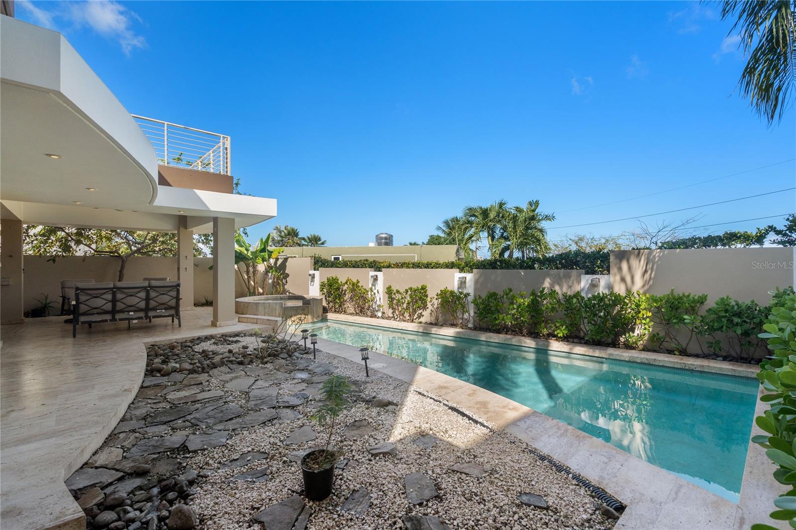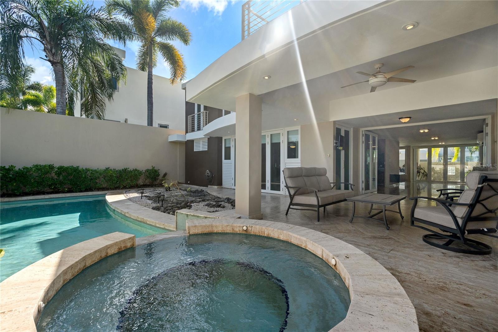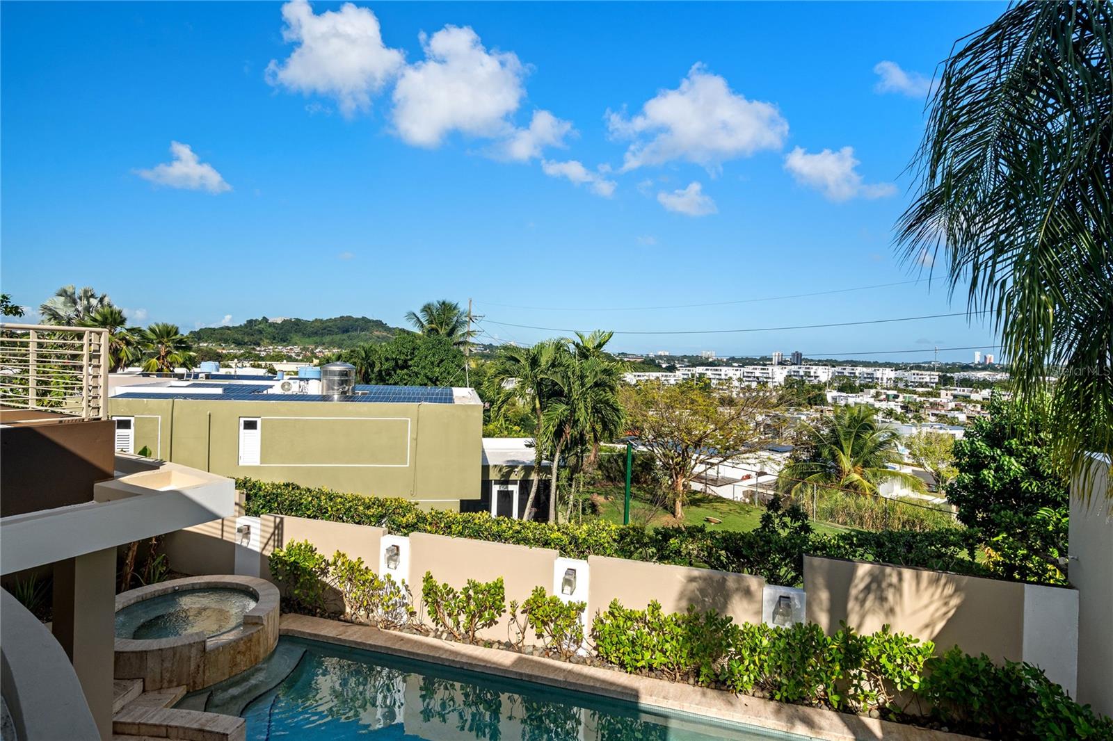 Bem vindo a Quintas Reales, Guaynabo, Porto Rico Descubra esta impressionante residência ampliada que oferece 3.569 pés quadrados, 4 quartos espaçosos e 4,5 banheiros, cuidadosamente projetada para quem busca elegância, conforto e exclusividade. Tetos altos e janelas amplas enchem a casa com luz natural abundante, realçando o seu design interior sofisticado e requintado. A cozinha totalmente remodelada apresenta elegantes bancadas de mármore, iluminação cuidadosamente planejada e espaço generoso, perfeito para a vida cotidiana e para entretenimento. A área de estar exterior foi pensada para o relaxamento e a diversão, apresentando um terraço coberto com piso em travertino, uma deslumbrante piscina com jacuzzi e uma casa de banho exterior completa, criando um verdadeiro ambiente de resort em casa. Situada num terreno elevado e imponente, a residência fica acima das propriedades vizinhas, proporcionando privacidade excepcional nas áreas do terraço e piscina. Paredes sólidas de concreto e vistas abertas para Guaynabo aumentam ainda mais a sensação de isolamento e exclusividade. A suíte principal oferece um layout amplo com tetos altos, um amplo closet e um banheiro luxuoso com box amplo e jacuzzi, um retiro privado ideal.